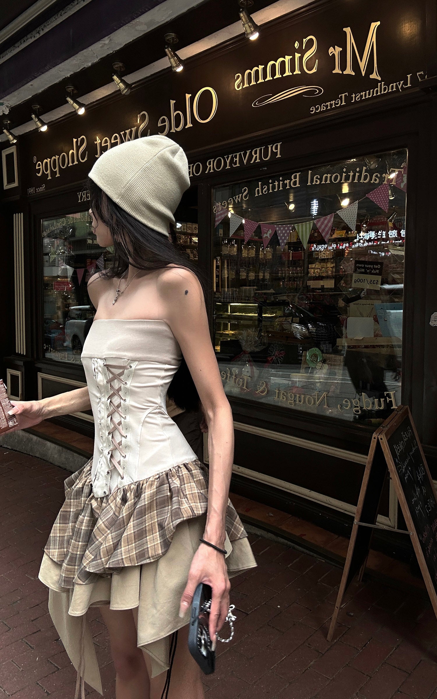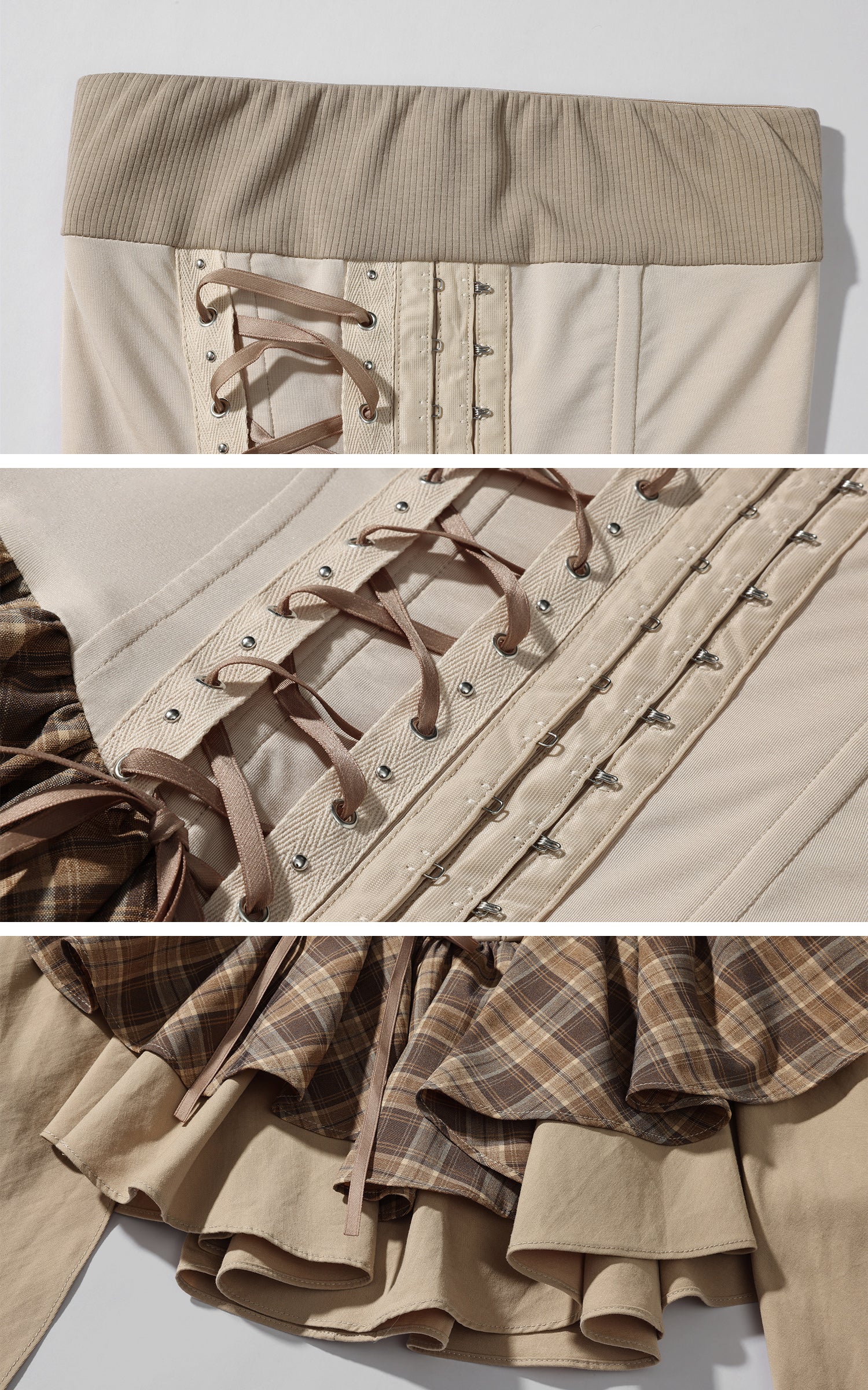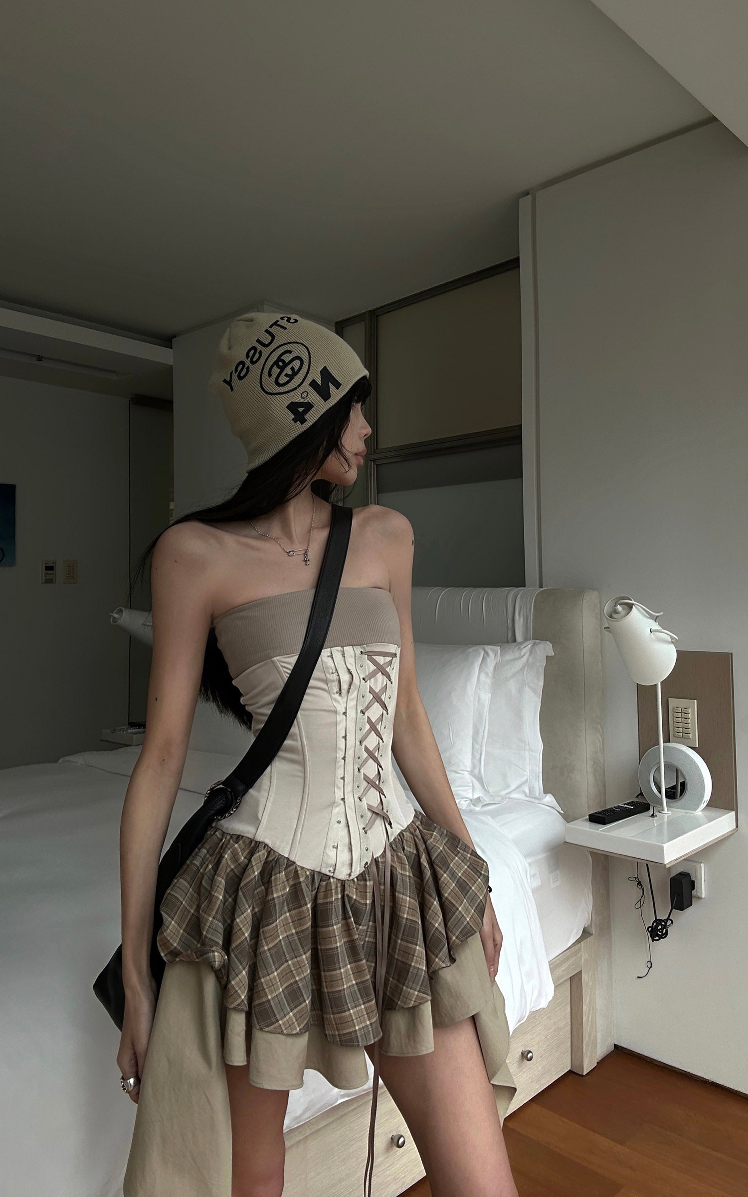 WARDEN EDGE Corset Mini Dress with Plaid Layers