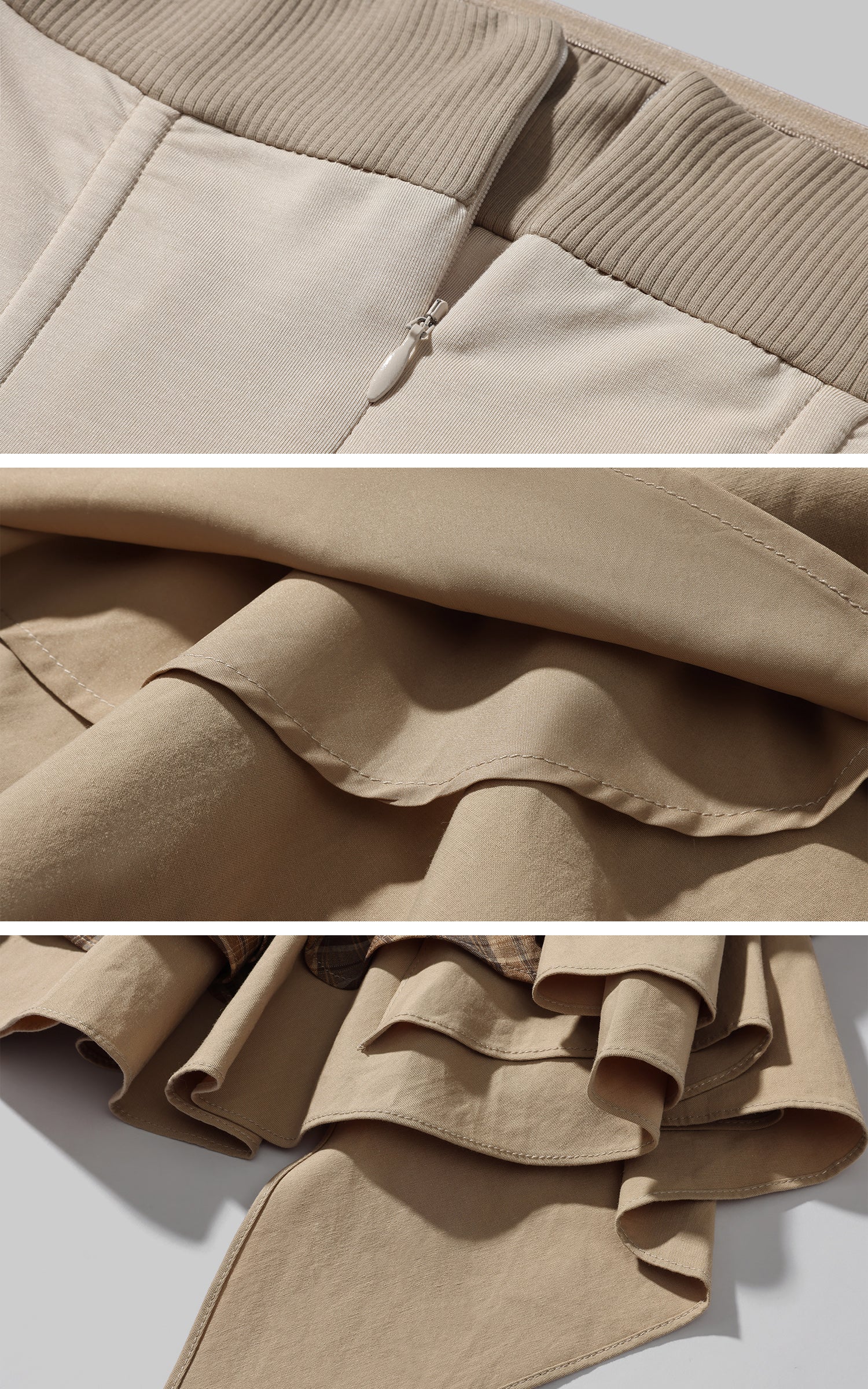 A subversive remix of classic femininity, this dress contrasts structure and spontaneity in one silhouette. The ribbed tube top holds the body with subtle elasticity, while corset lacing cinches the waist with adjustable hardware and tonal stitching. Below, layered plaid ruffles crash into asymmetrical drapes, creating volume and imbalance in deliberate harmony. Comes with an integrated safety shorts layer for mobility without compromise. Streetproof and statement-ready.