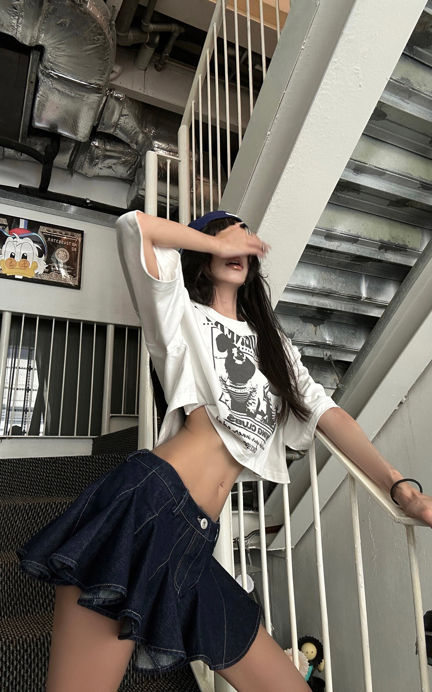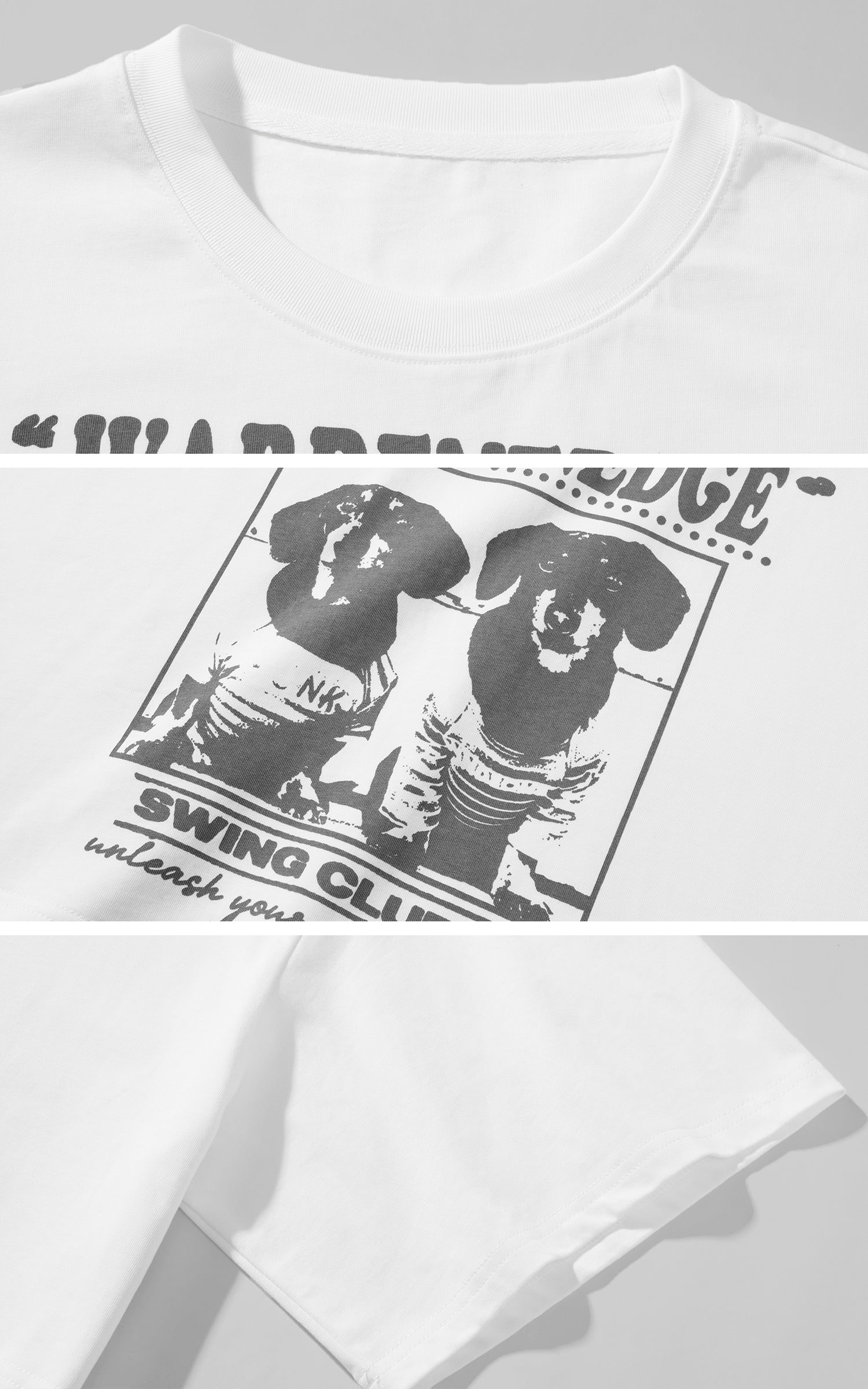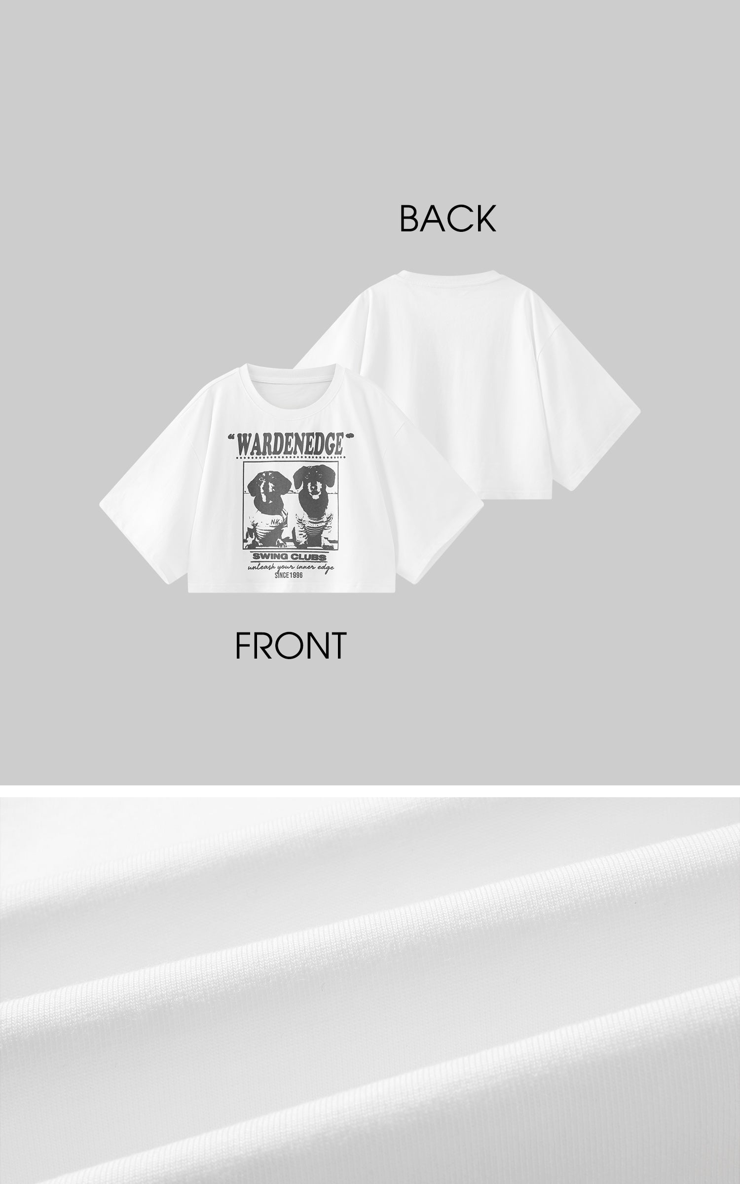 售罄 2025-10-19 WARDEN EDGE Cropped Dog Graphic Tee with Vintage Street Edge