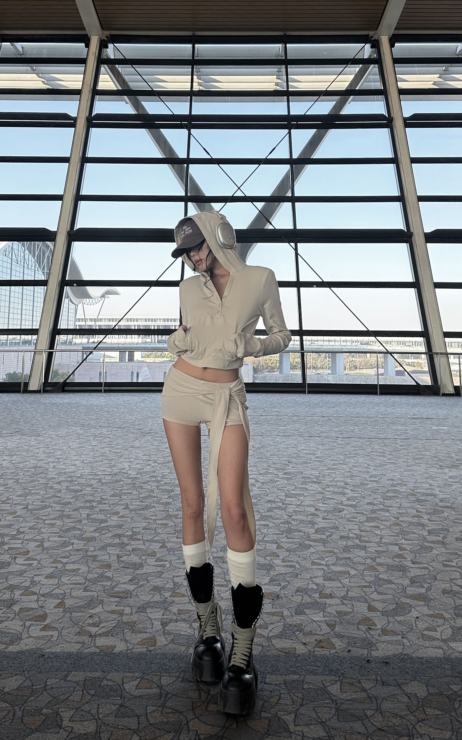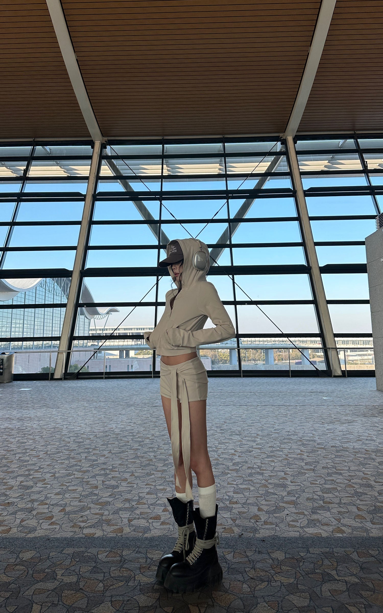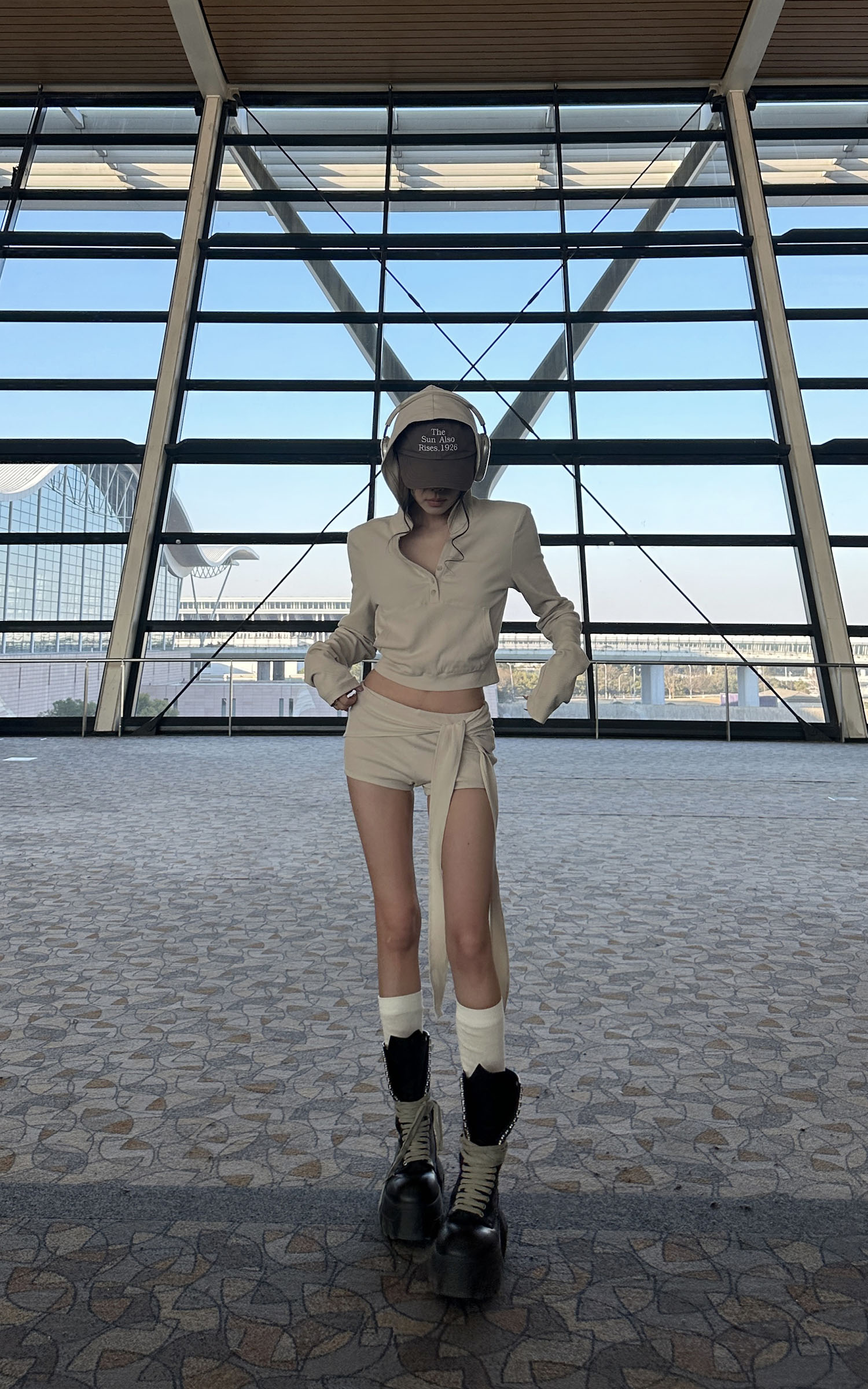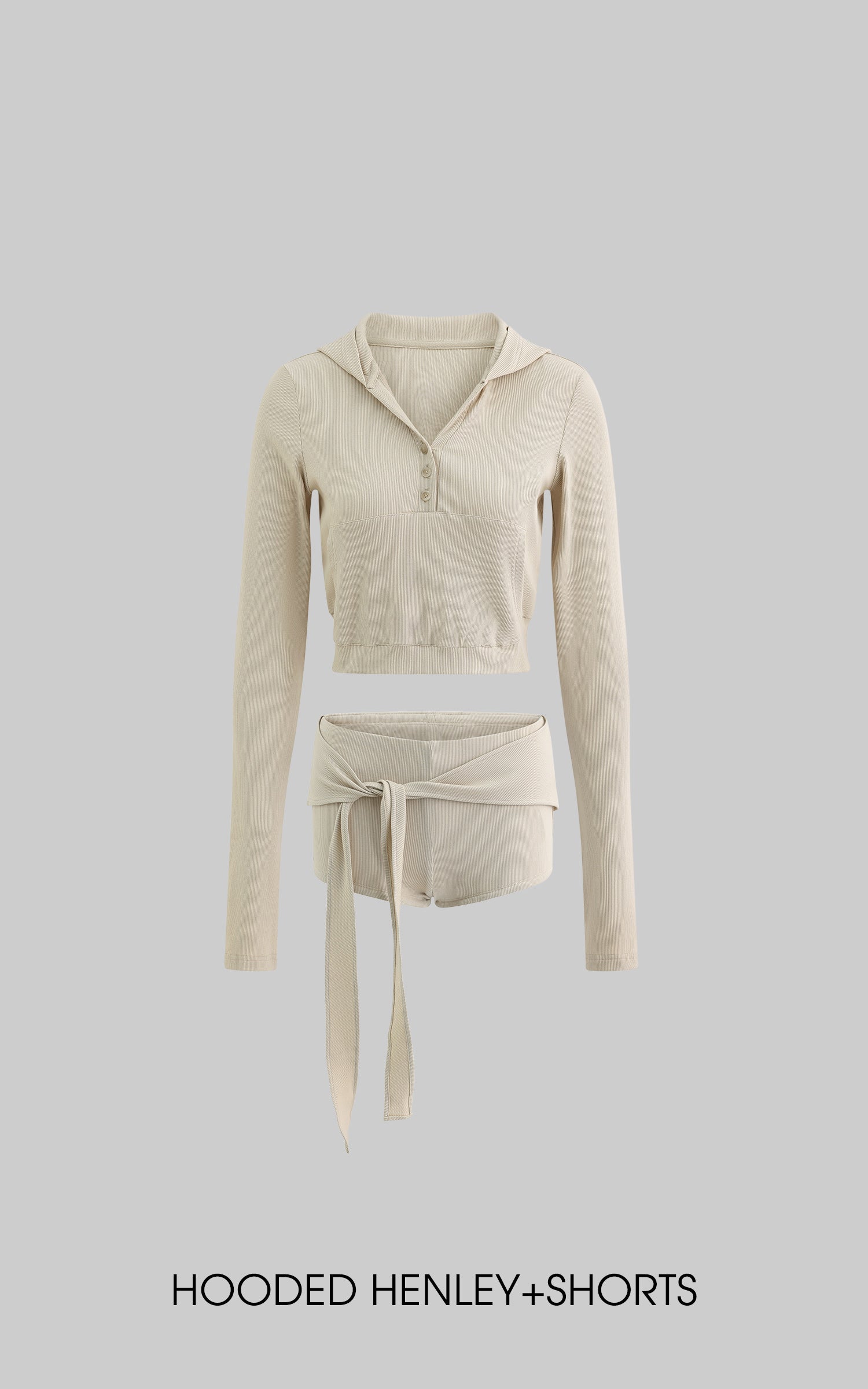2025-8-25 售罄 WARDEN EDGE Cropped Hooded Henley & Wrap Shorts Set