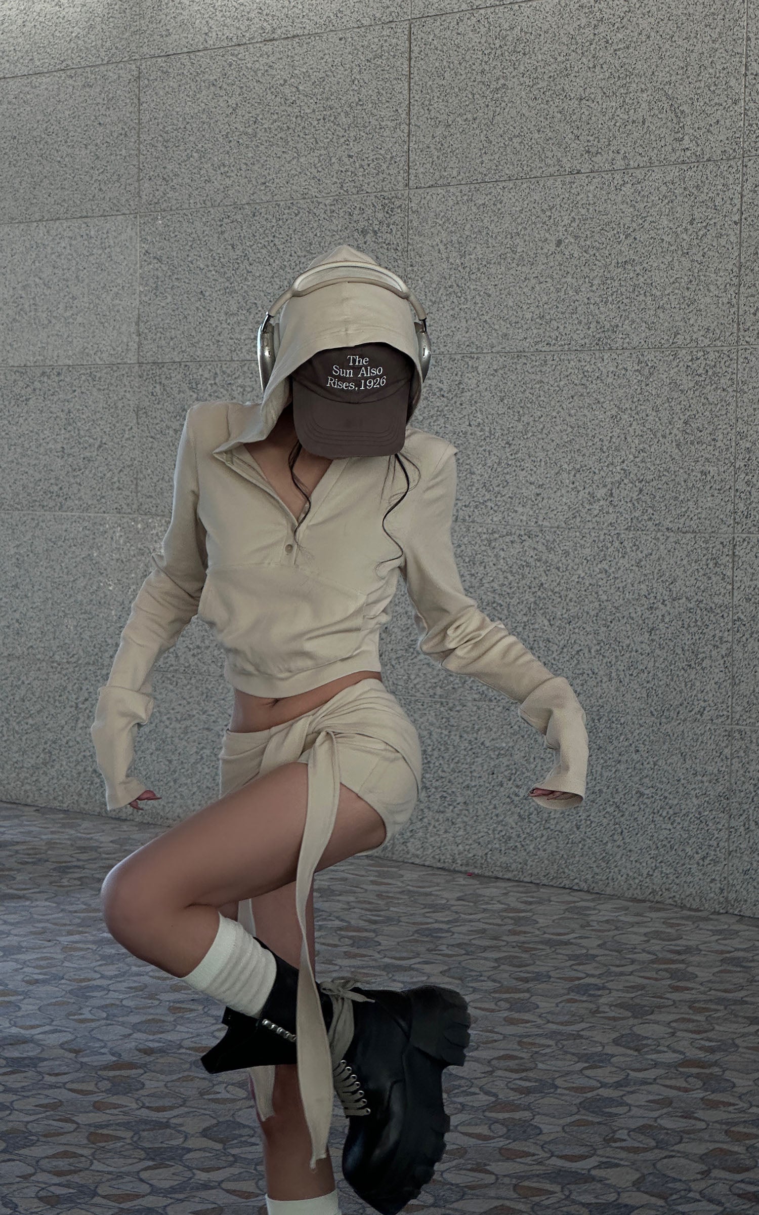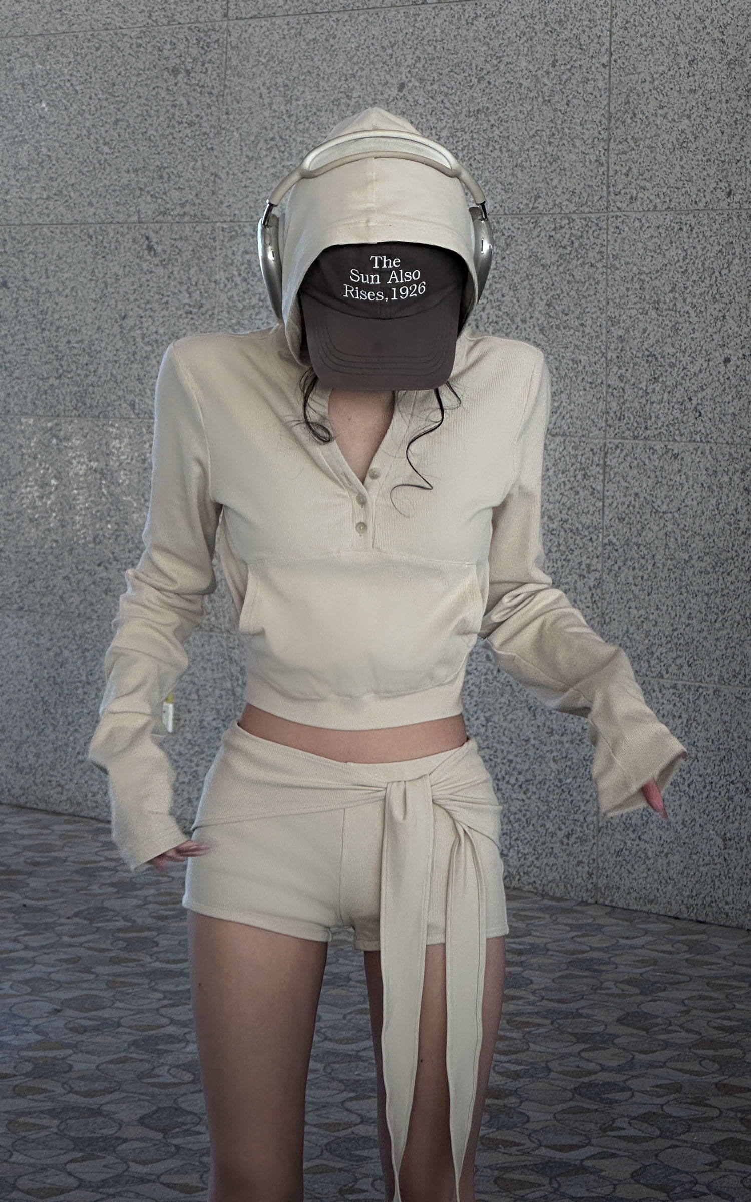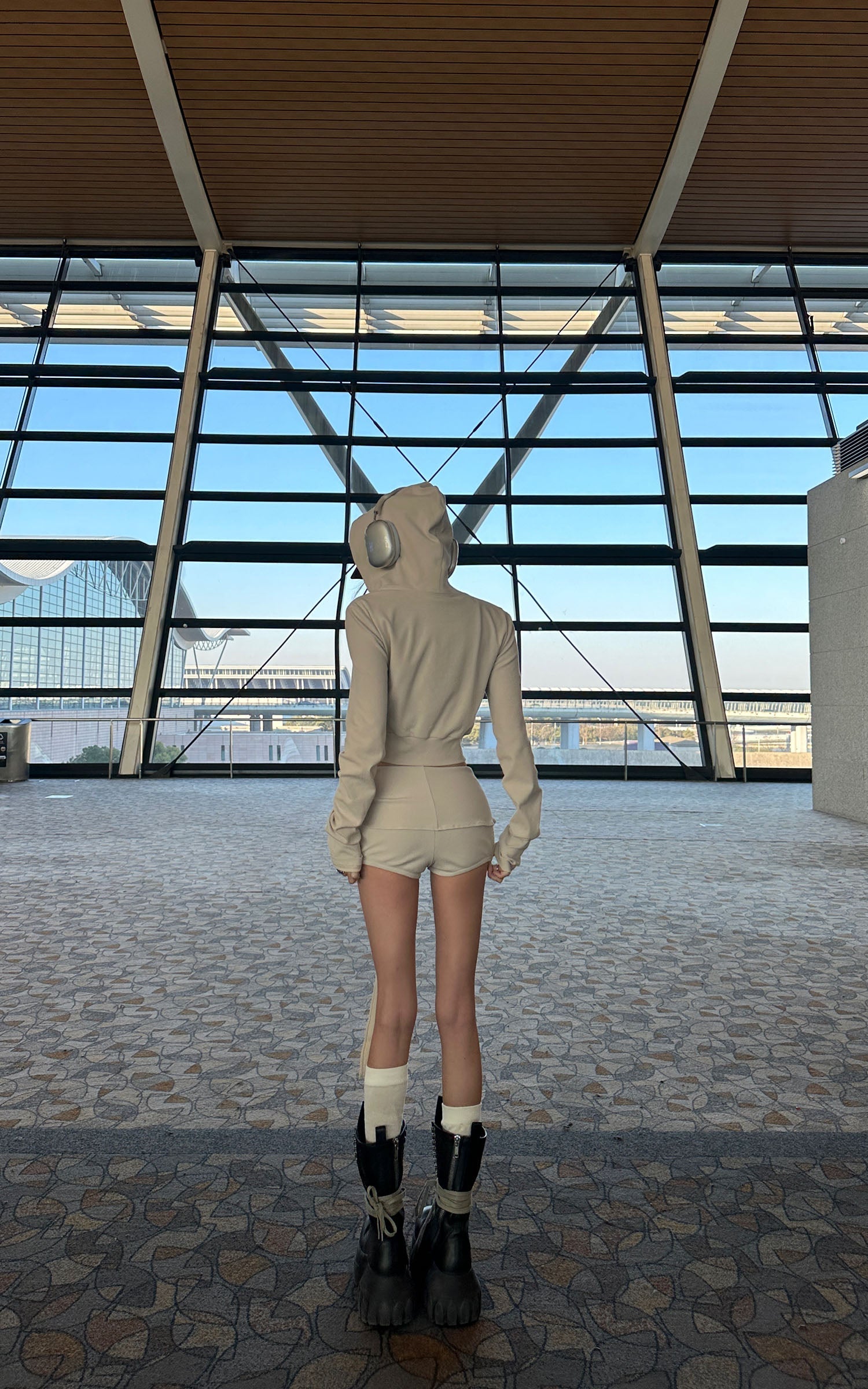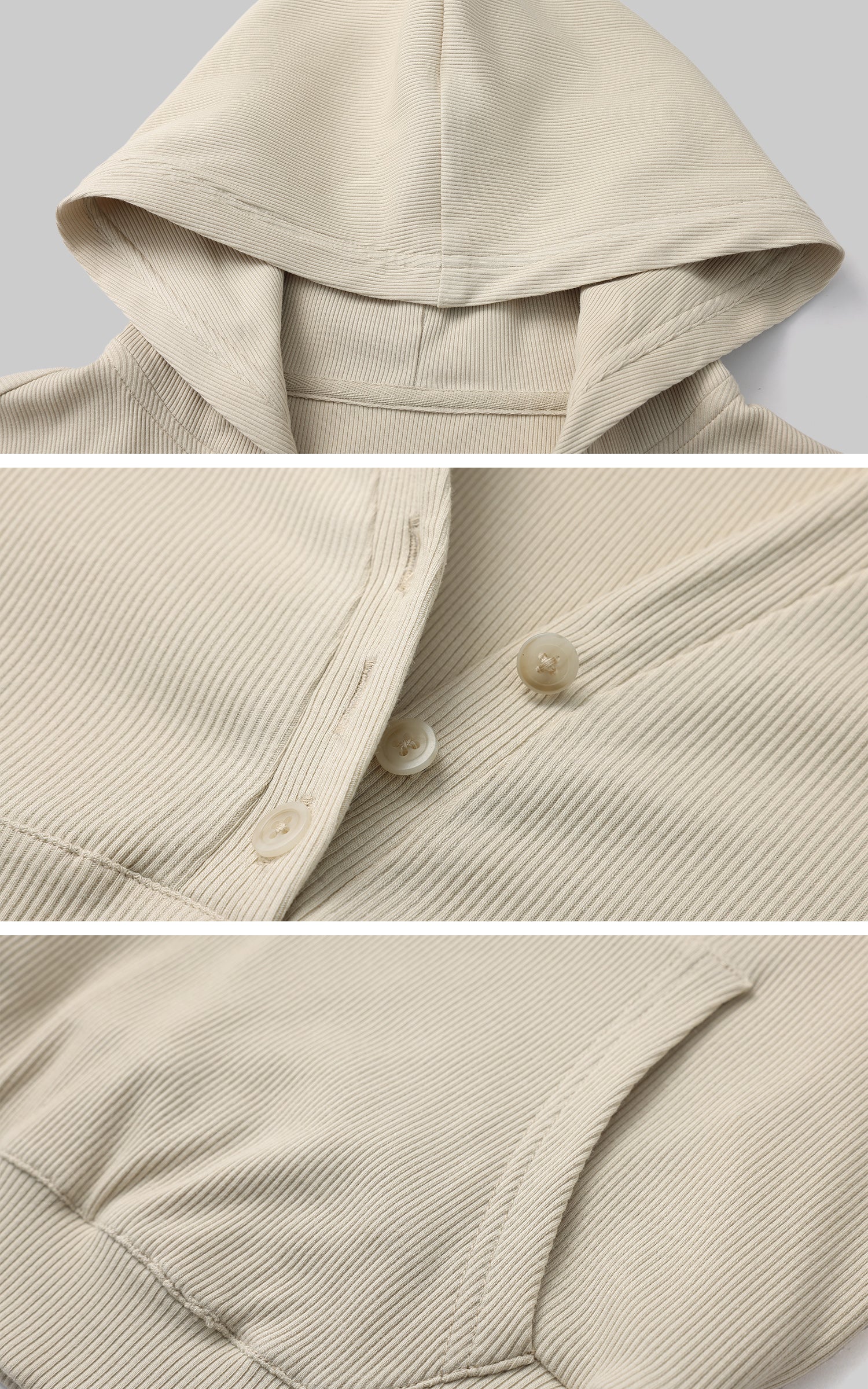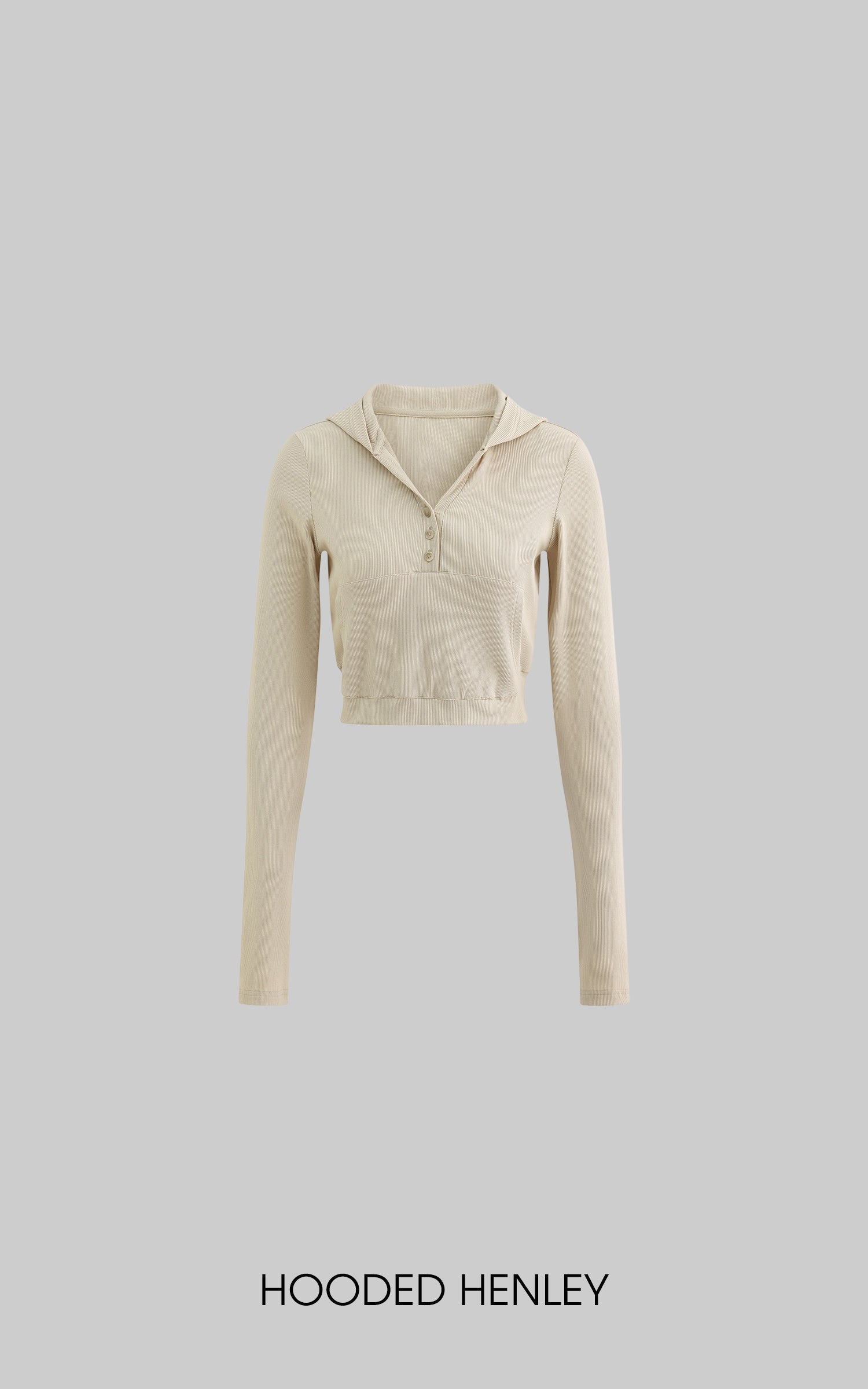 2025-8-25 售罄 WARDEN EDGE Cropped Hooded Henley & Wrap Shorts Set
