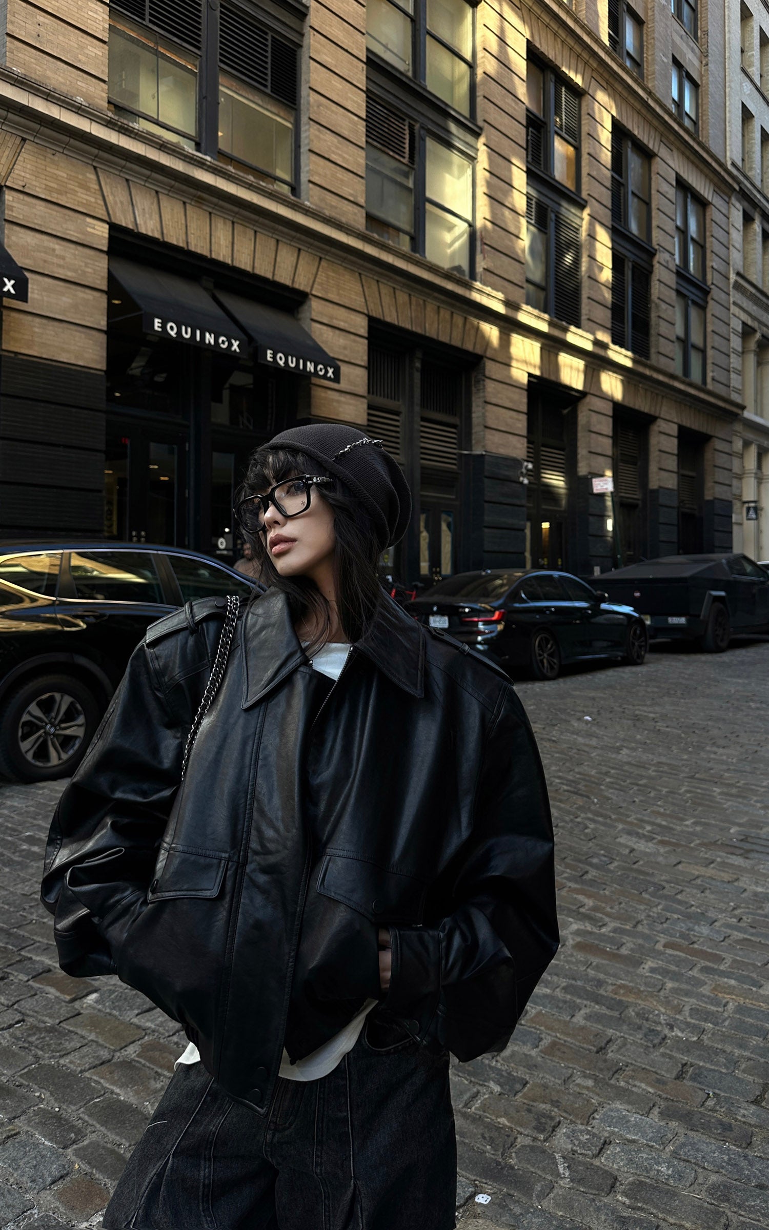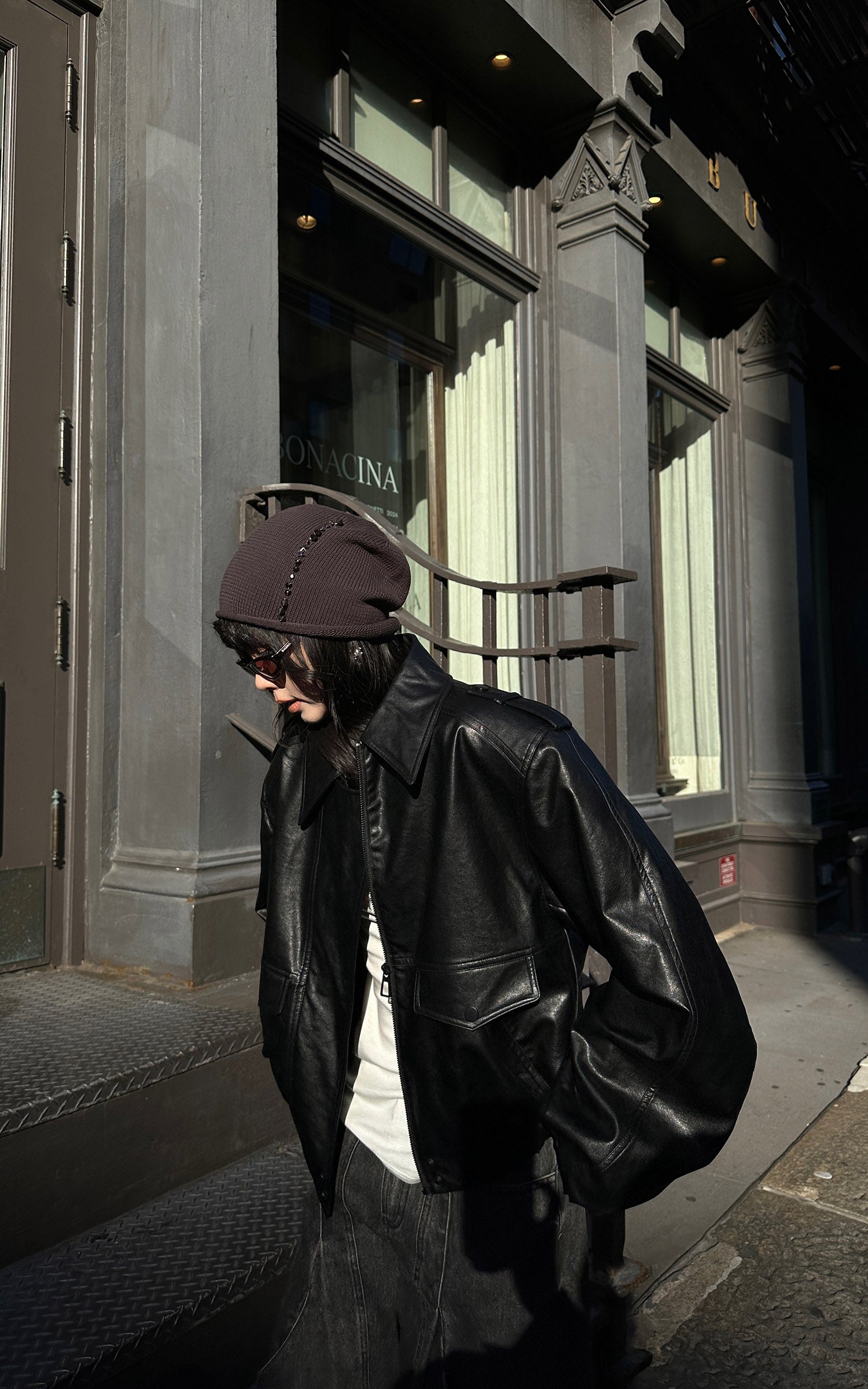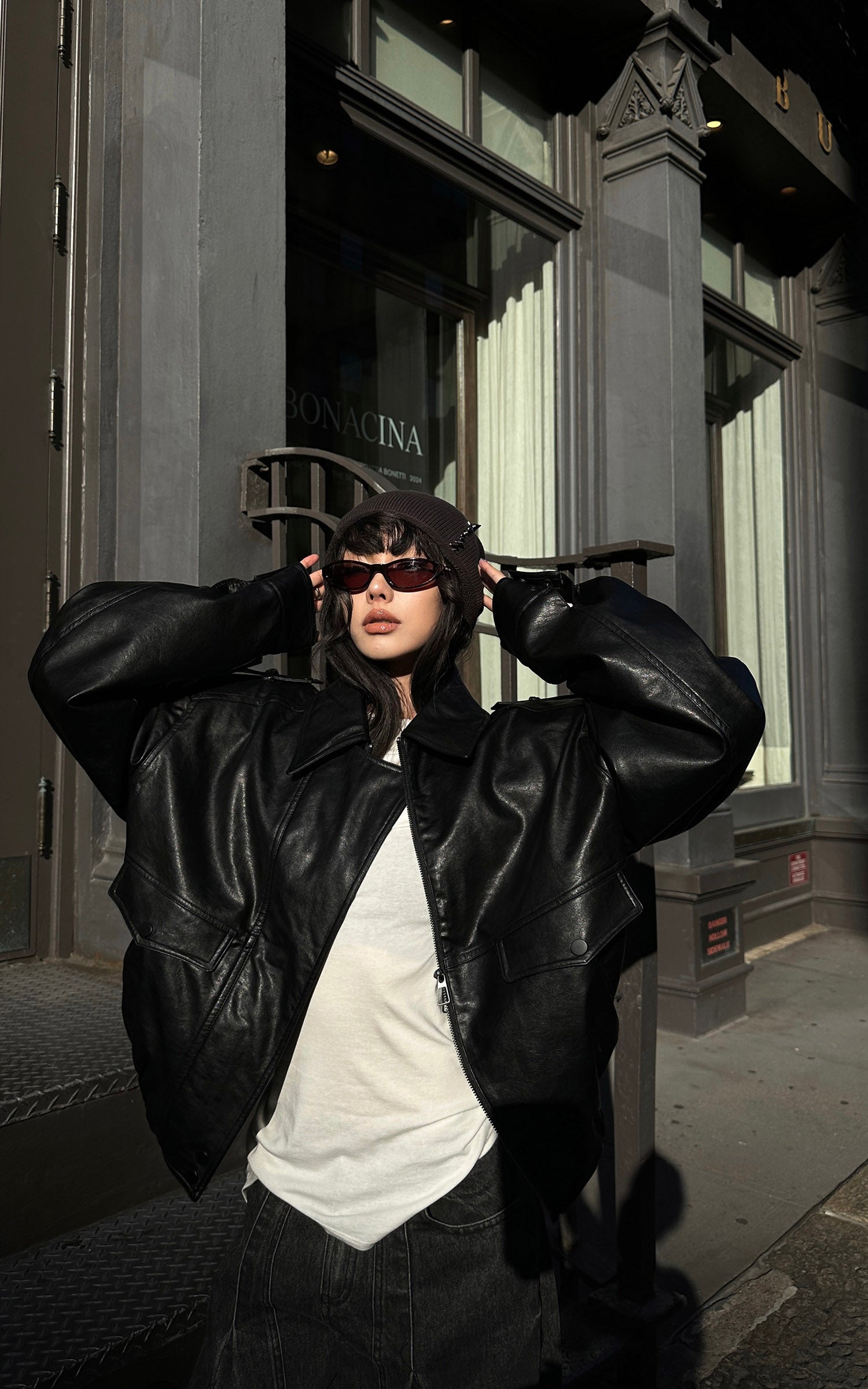 WARDEN EDGE Cropped Leather Jacket with Epaulettes and Utility Pockets