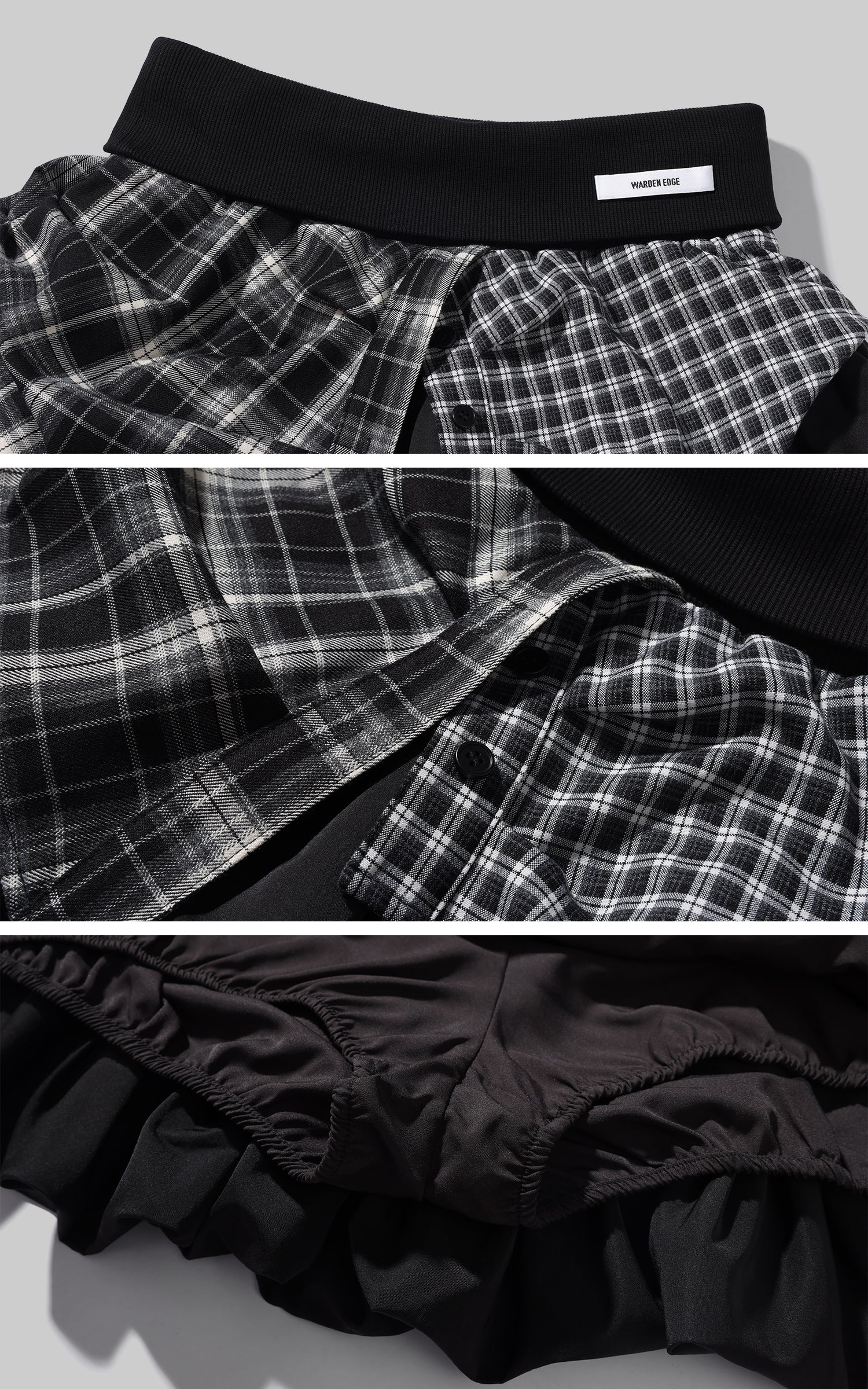 WARDEN EDGE Deconstructed Plaid Layered Pleated Mini Skirt