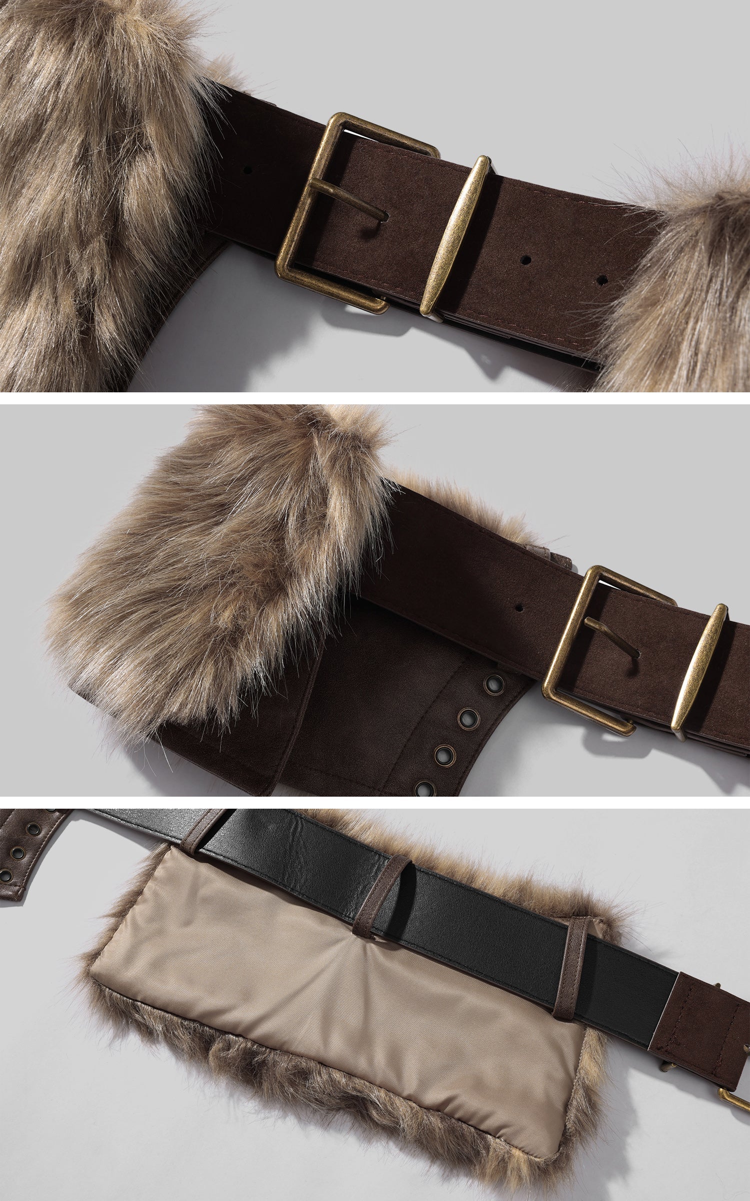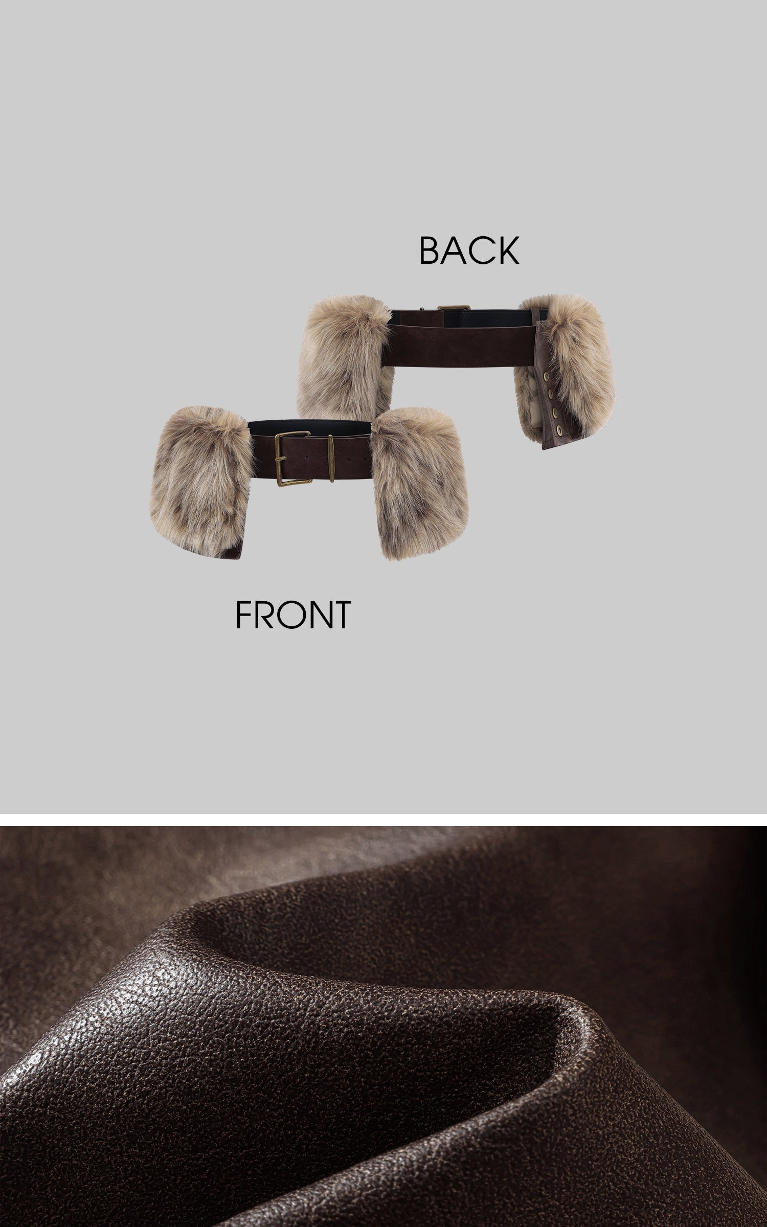 WARDEN EDGE Denim Mini Skirt with Faux-Fur Belt Detail