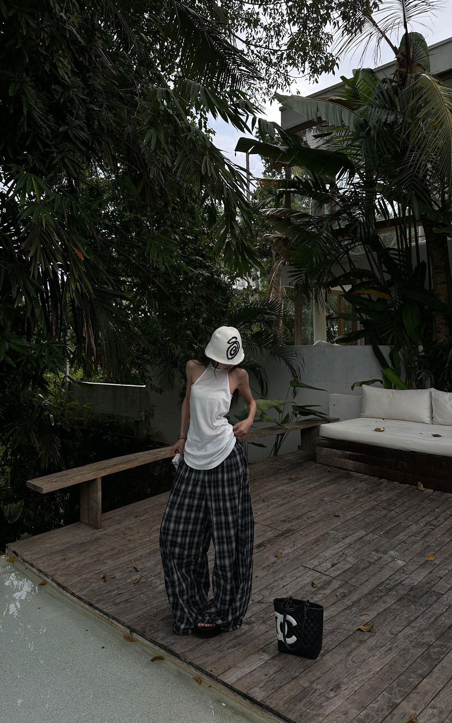 A hybrid of minimalism and subversion. This two-piece set merges a clean halter silhouette with an inner bandeau layer—engineered for contrast, not concealment. Soft stretch cotton wraps the body with intention, draping loose but controlled. Wear it as a uniform for late summer rebellion, a blank canvas to build on or break down. Designed for off-center days and eyes that notice detail.