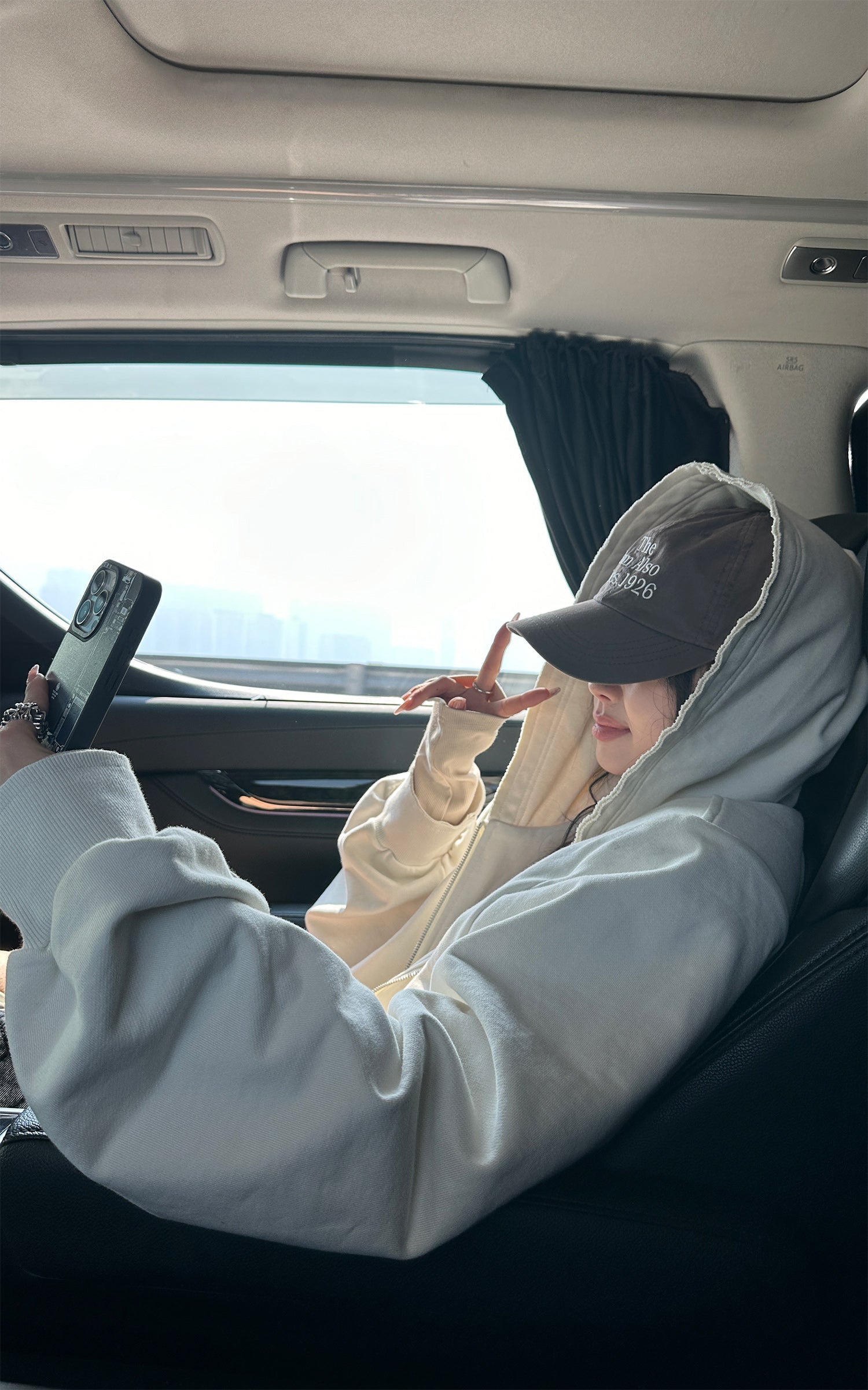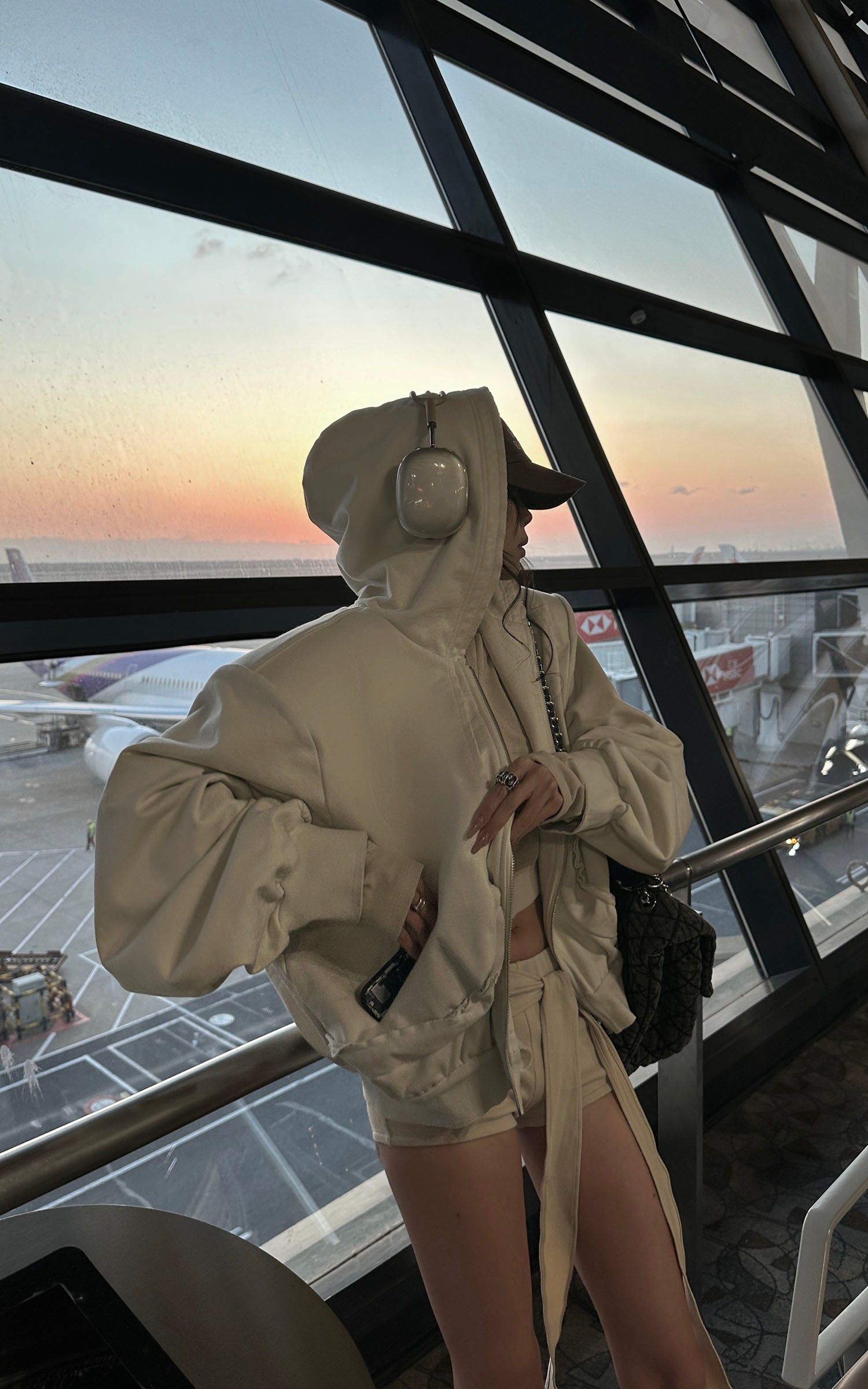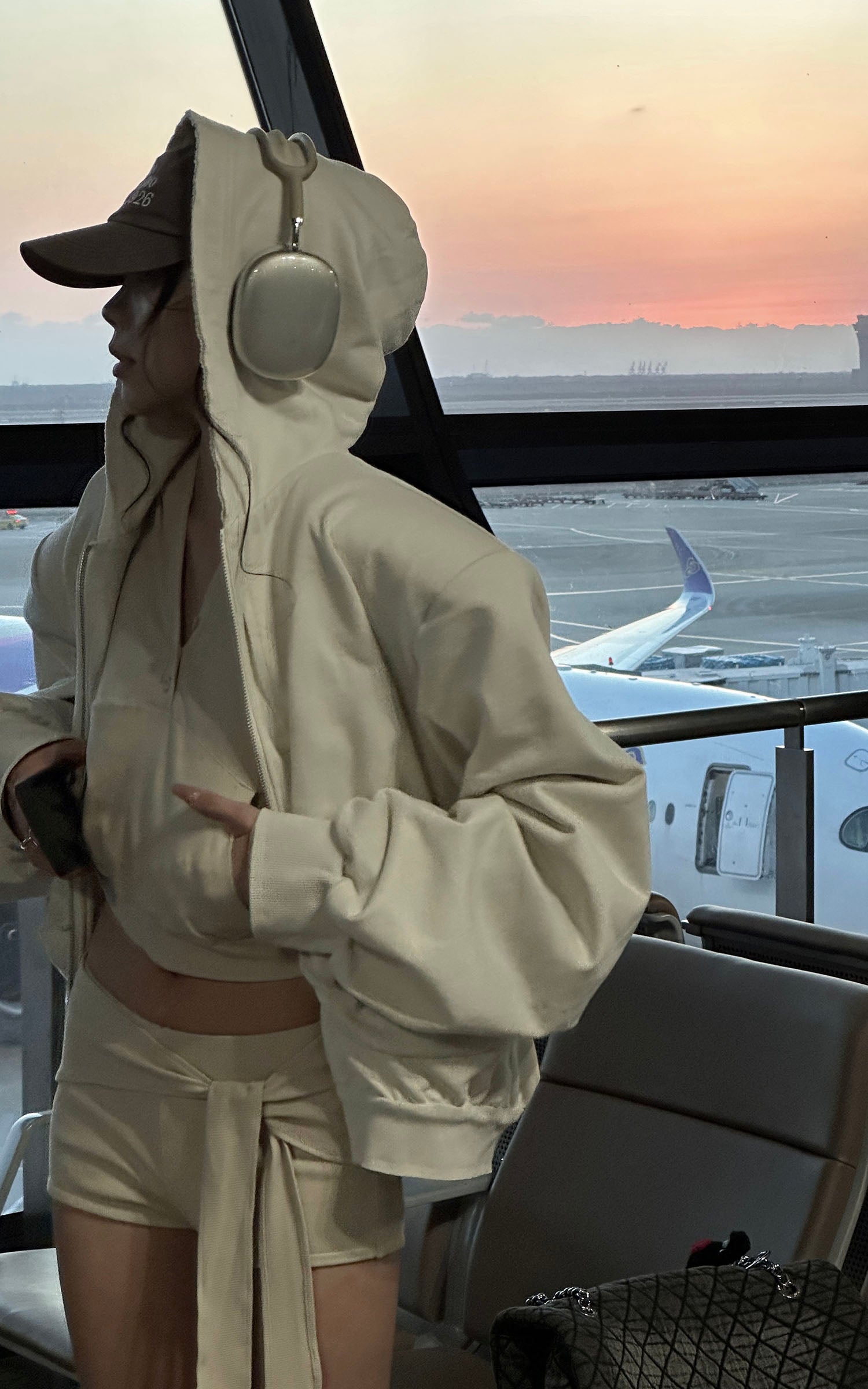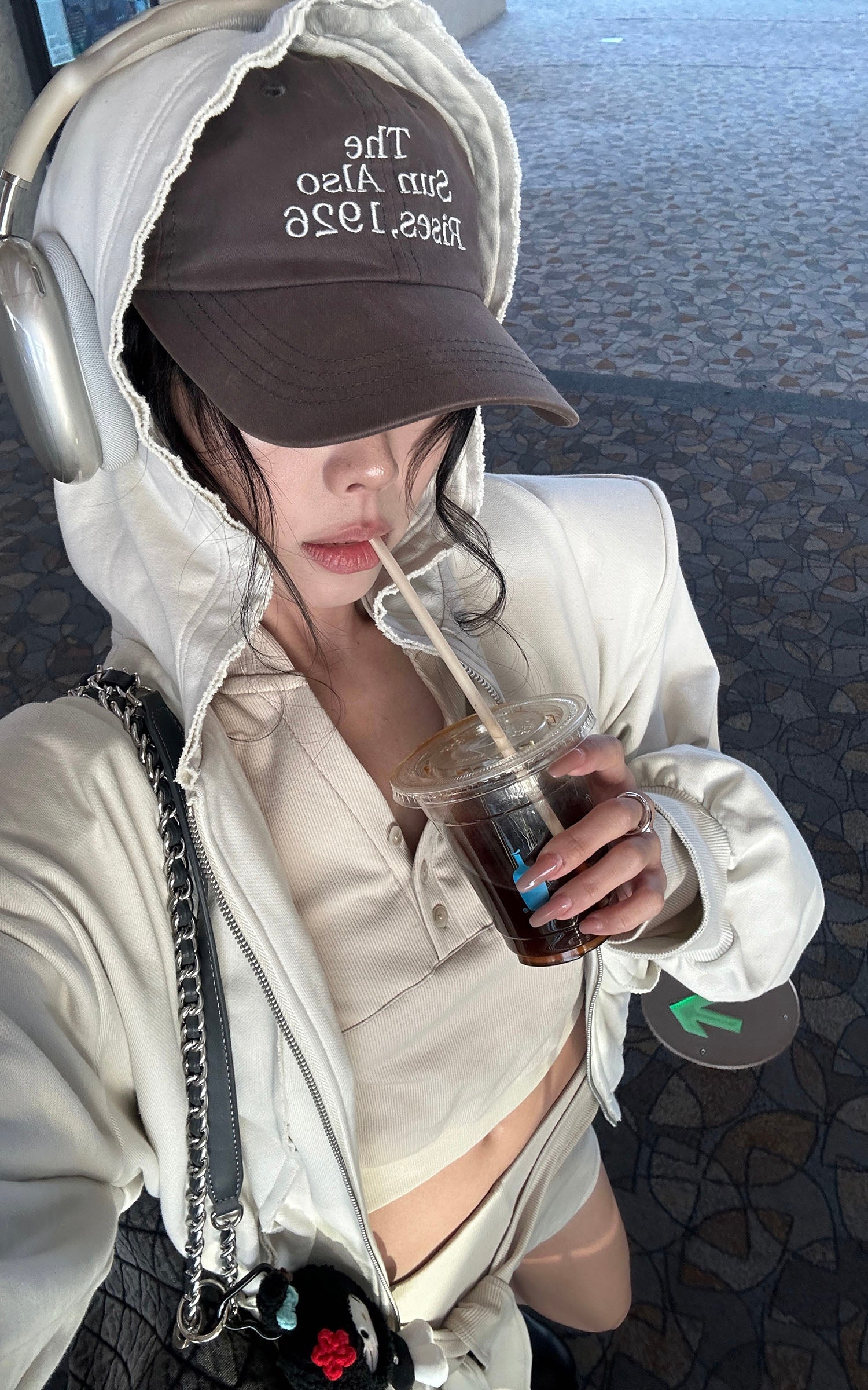 A blend of comfort and contemporary design. This hooded zip-up sweatshirt features an effortless silhouette with a slightly cropped cut. The soft, brushed fabric embraces the body, while the oversized sleeves add a laid-back, street-style edge. The raw edges and oversized fit convey a relaxed aesthetic, perfect for layering or wearing solo. Pair it with high-waisted pants or a mini skirt for a bold, street-inspired look.