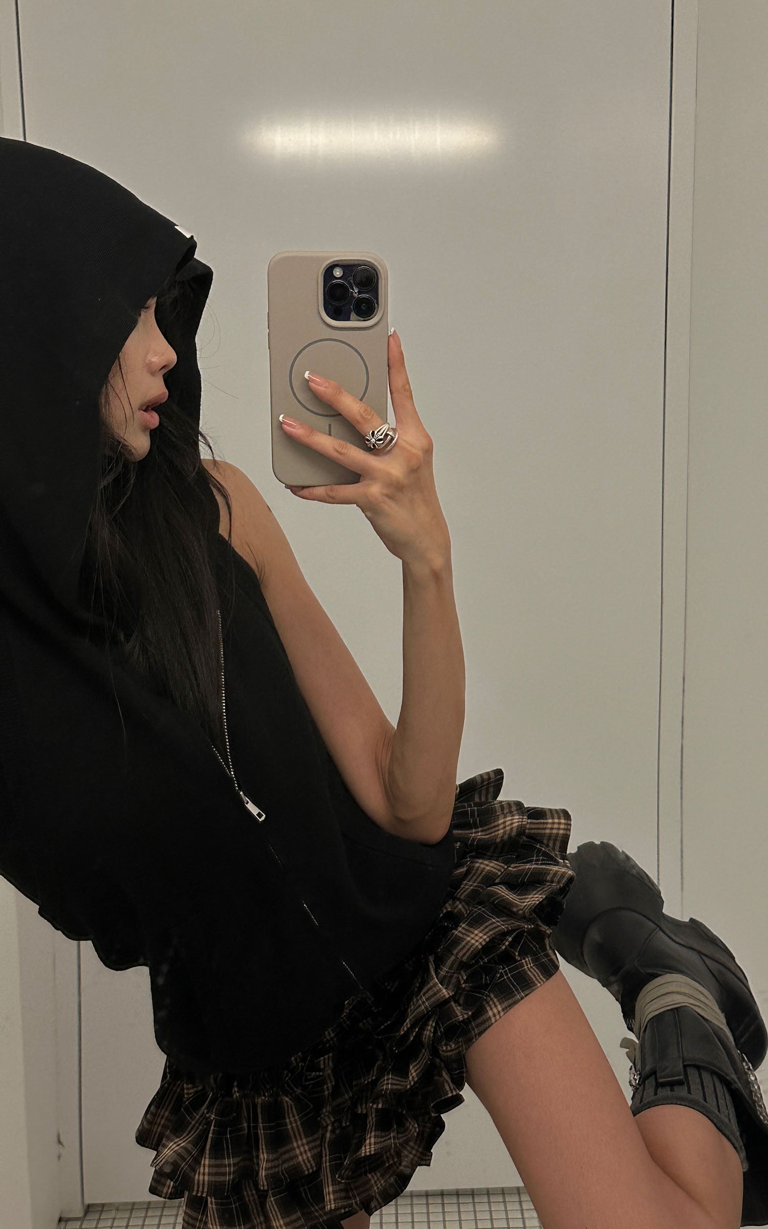 WARDEN EDGE Layered Mini Skirt with Drawstring Detail