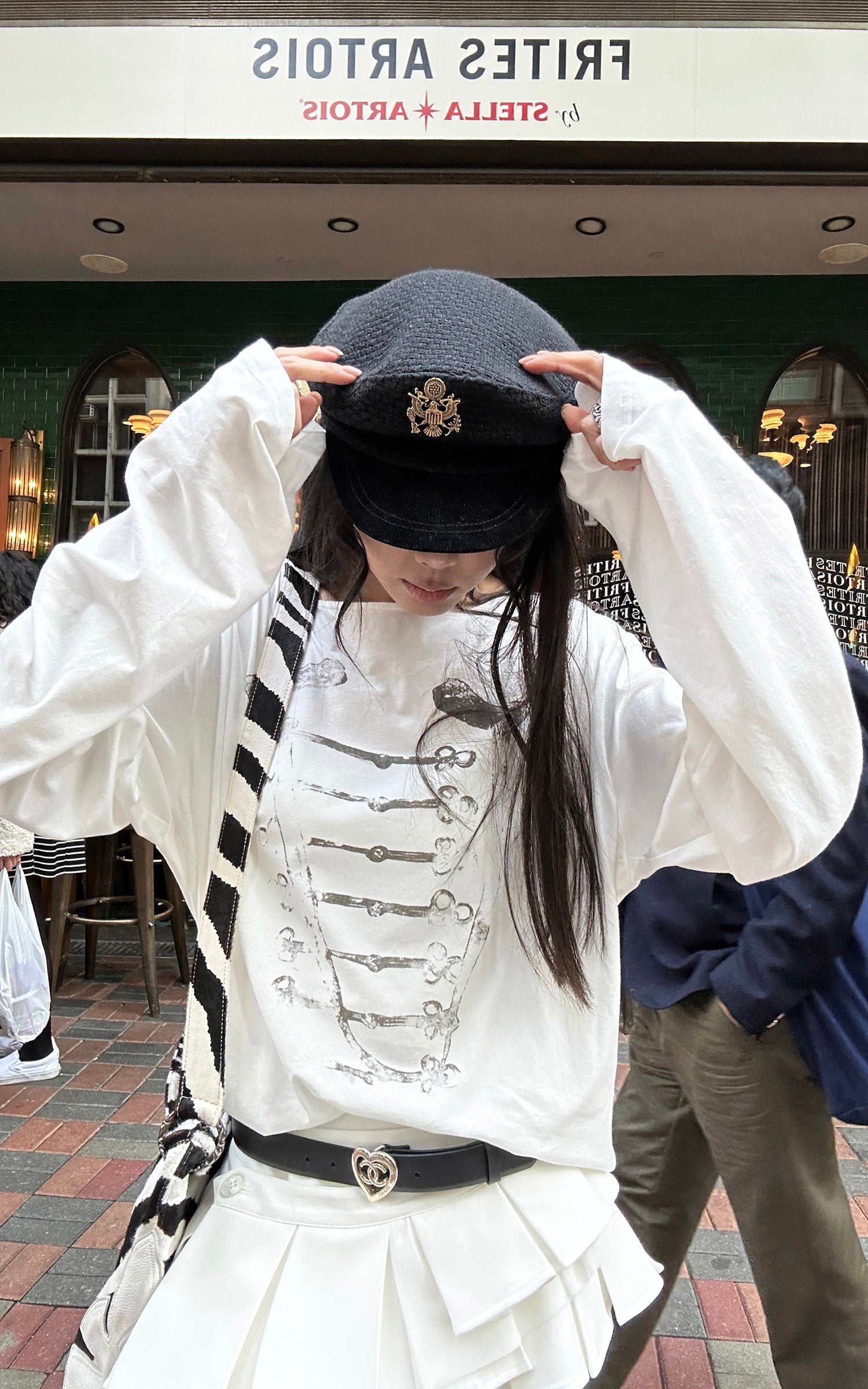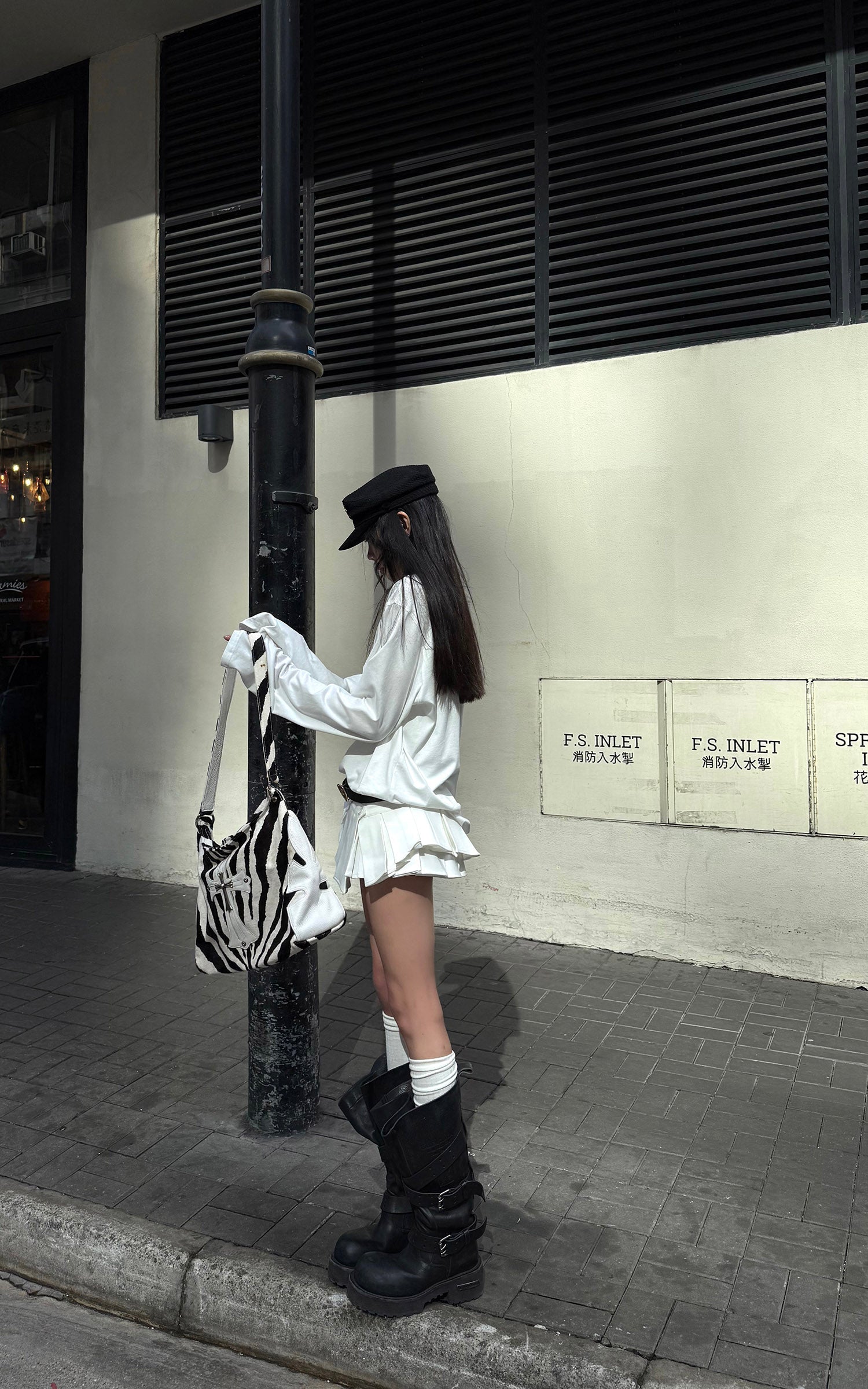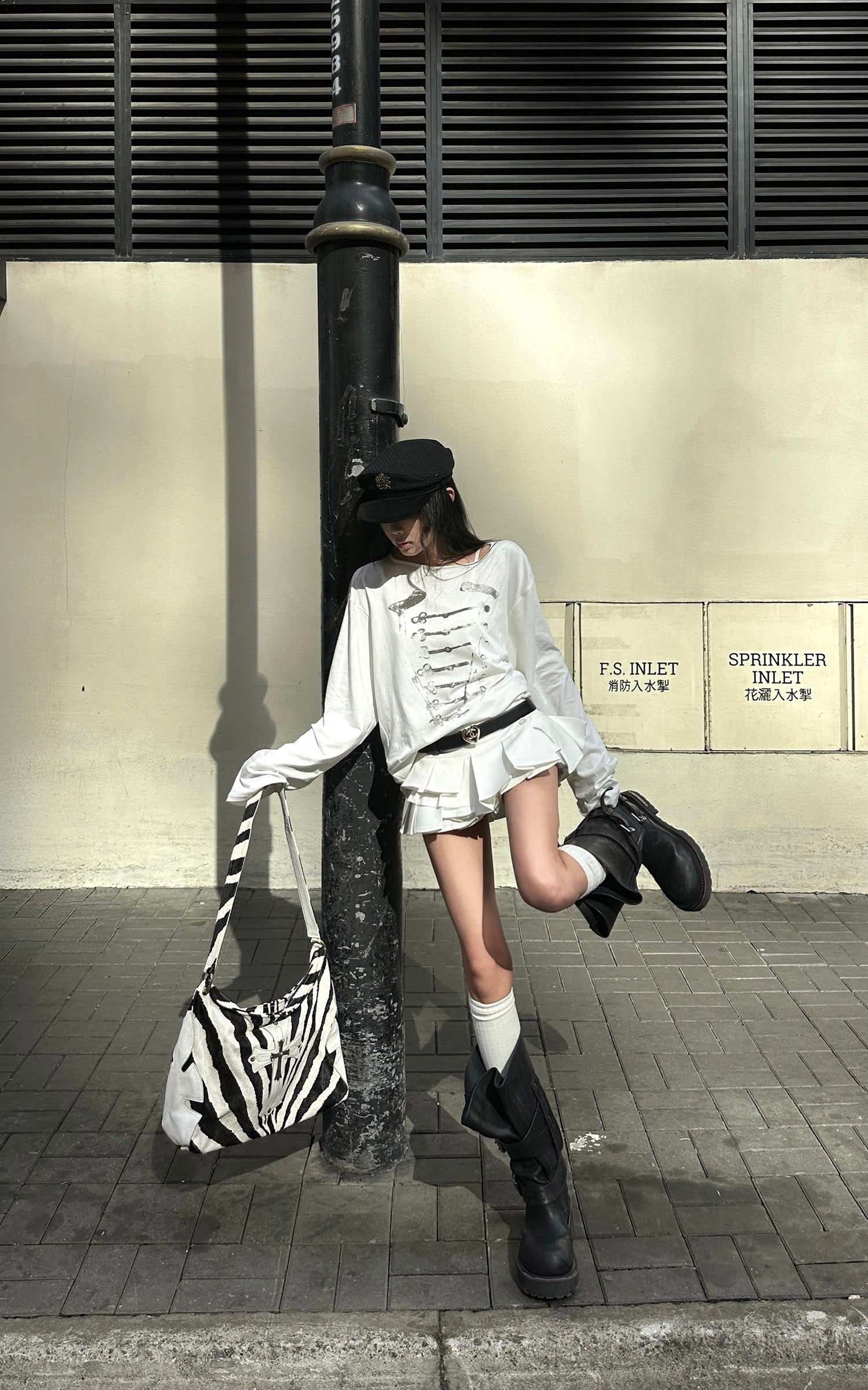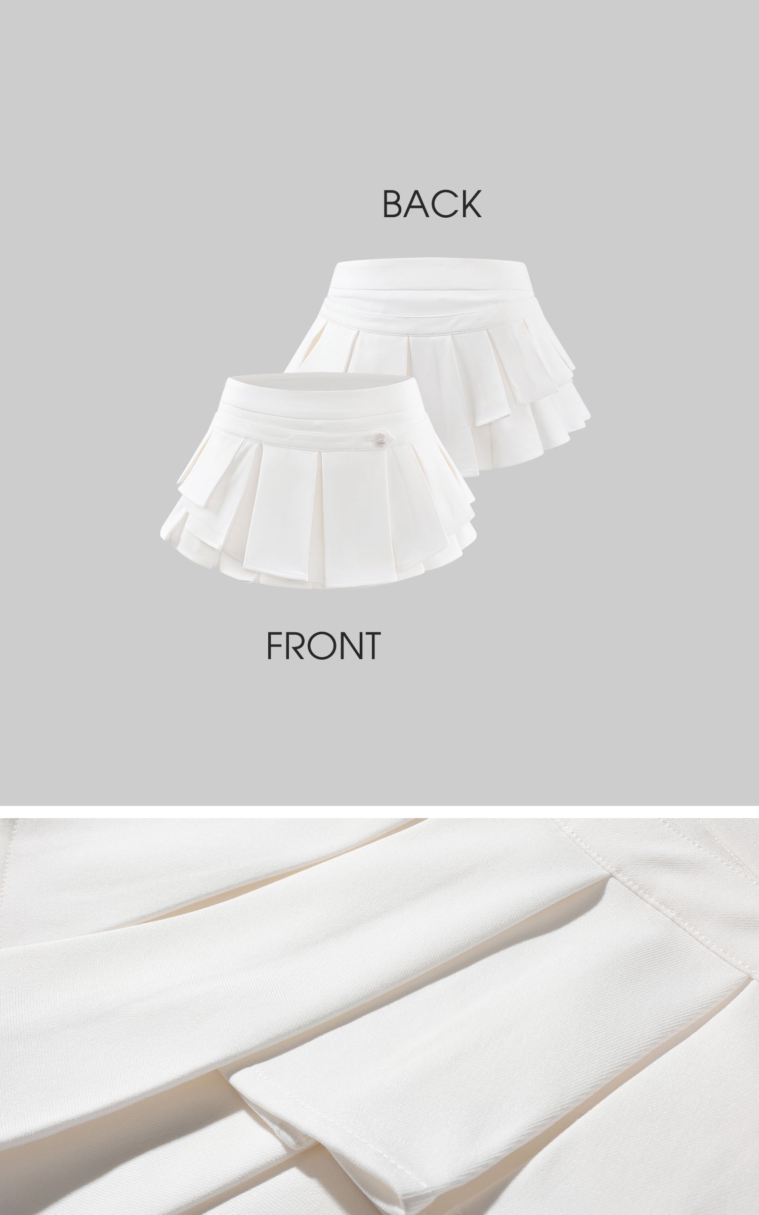 Layered pleats sculpt a dynamic, flared silhouette while the low-rise cut elongates the proportions with bold Y2K attitude. Structured fabric holds its shape for a crisp finish, elevated by a subtle side button detail. Built-in shorts add confidence and ease, balancing playful movement with sharp, statement energy.