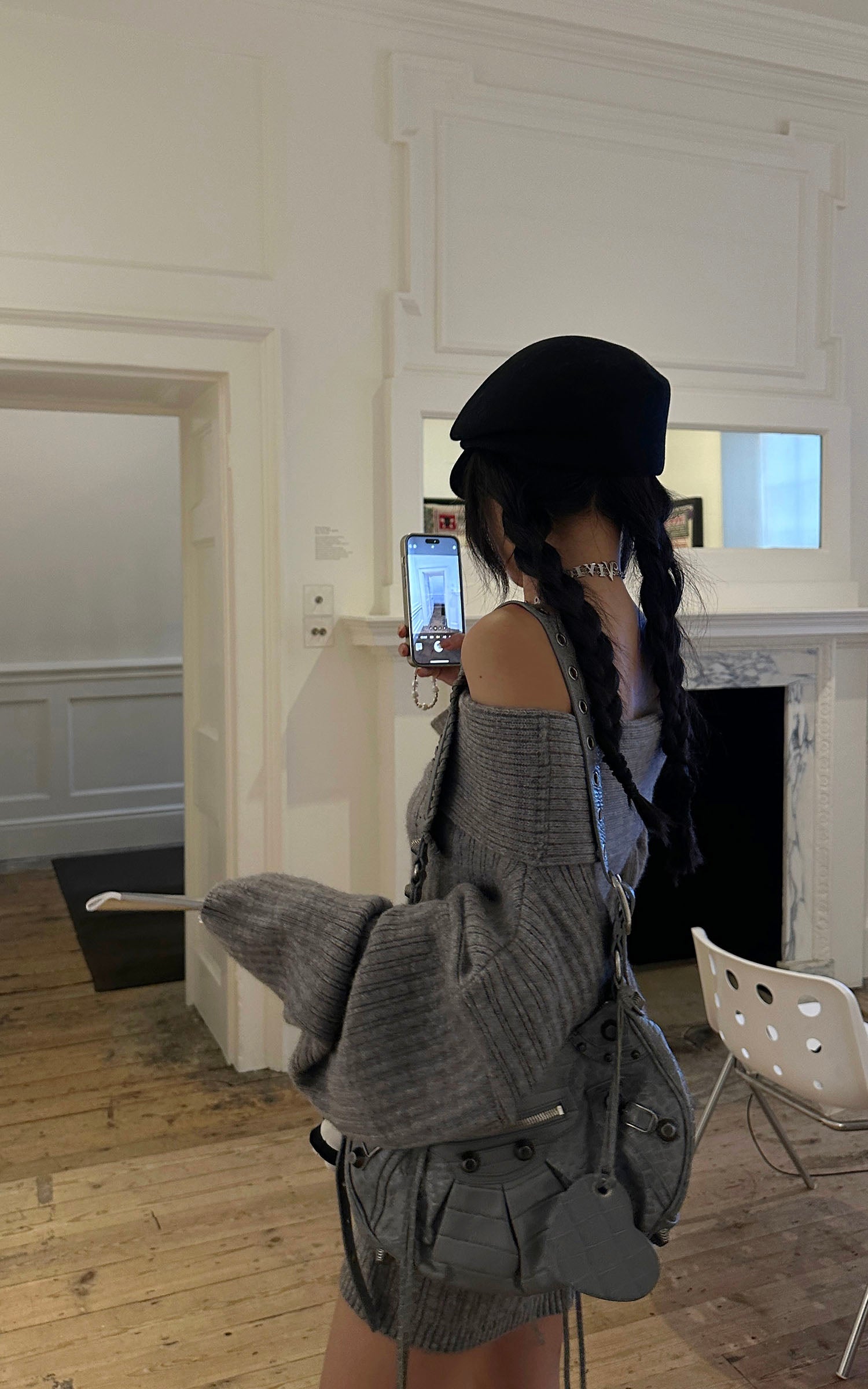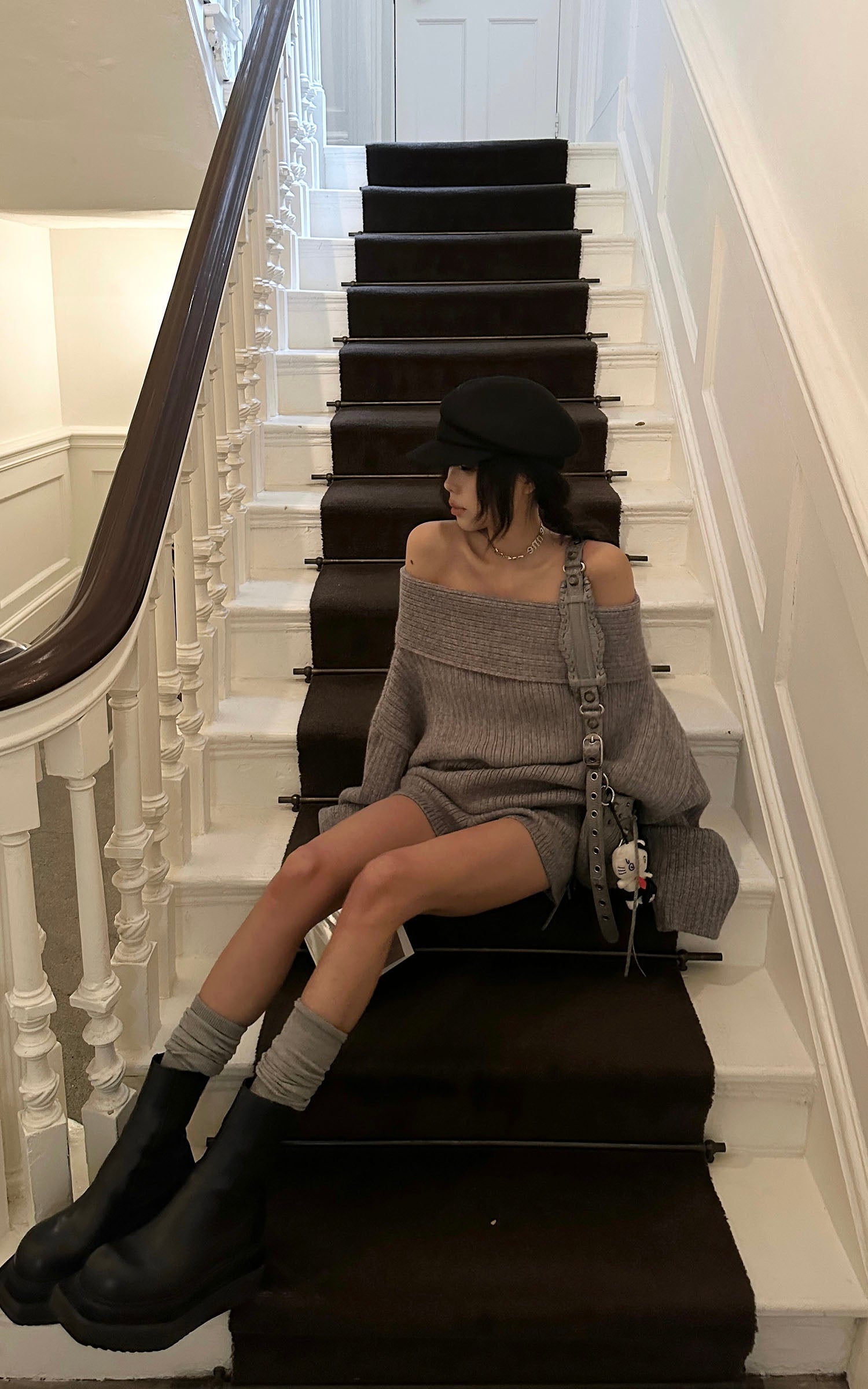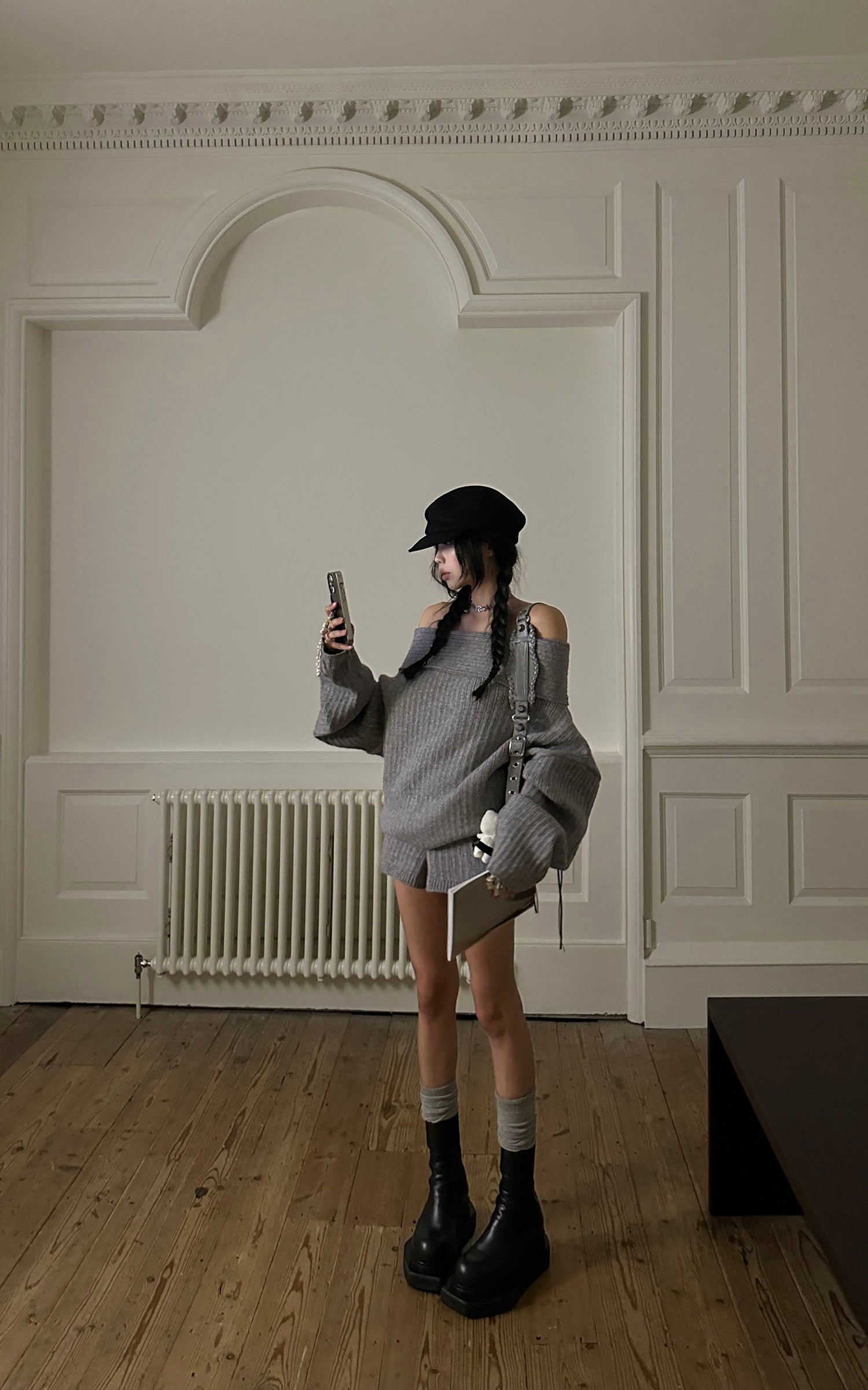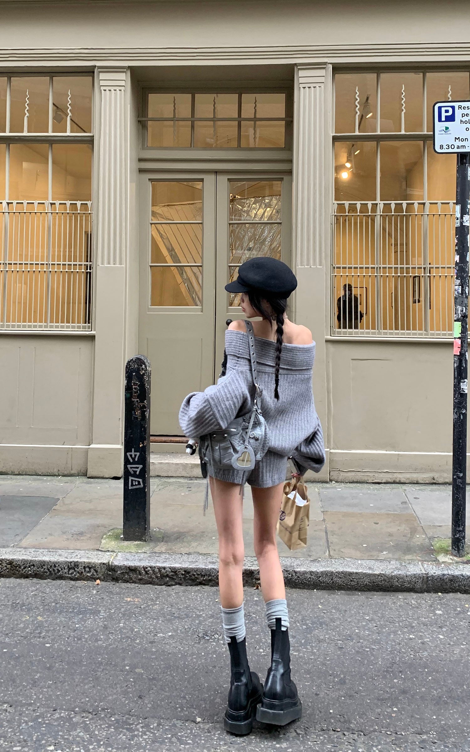 Effortlessly chic and cozy, this off-shoulder knit set redefines loungewear with its minimalist elegance. The oversized sweater drapes softly over the shoulders, creating a relaxed yet sophisticated silhouette. Paired with high-waisted ribbed shorts, the set offers a perfect blend of comfort and style. Designed for layering or lounging, this versatile piece transitions seamlessly from casual homewear to a street-ready statement.