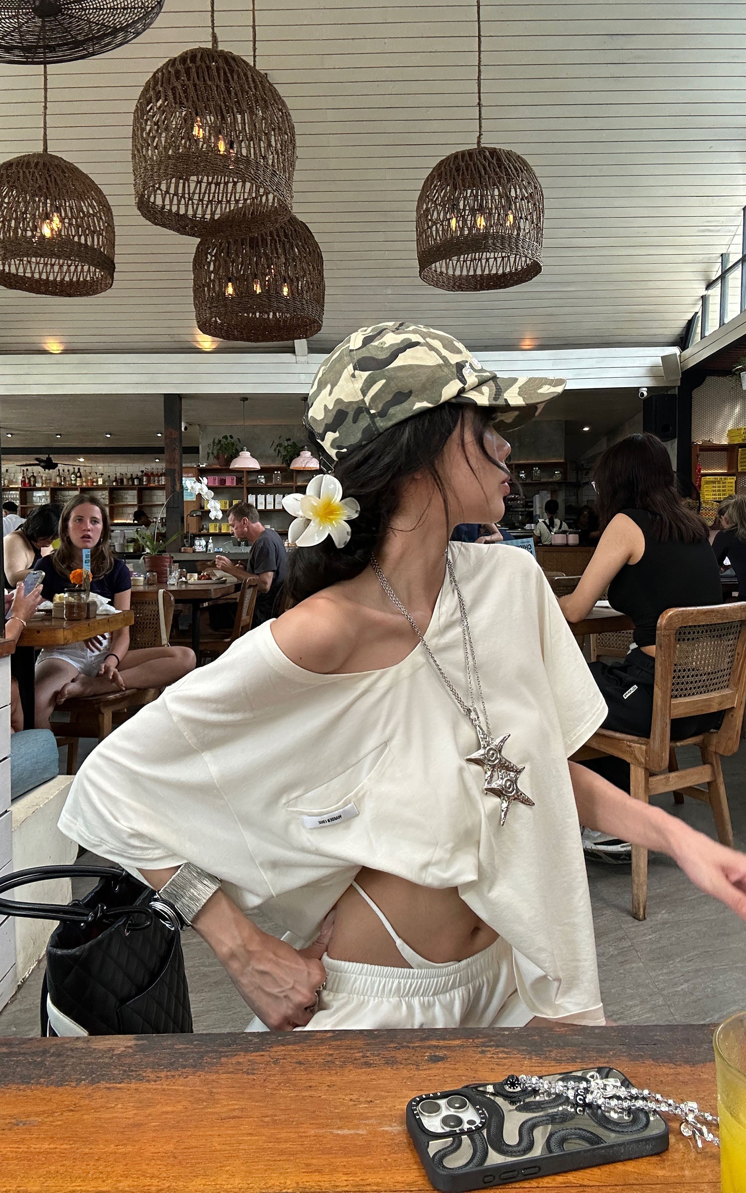 2025-8-25 售罄 WARDEN EDGE Off-Shoulder Relaxed Fit Pocket Tee