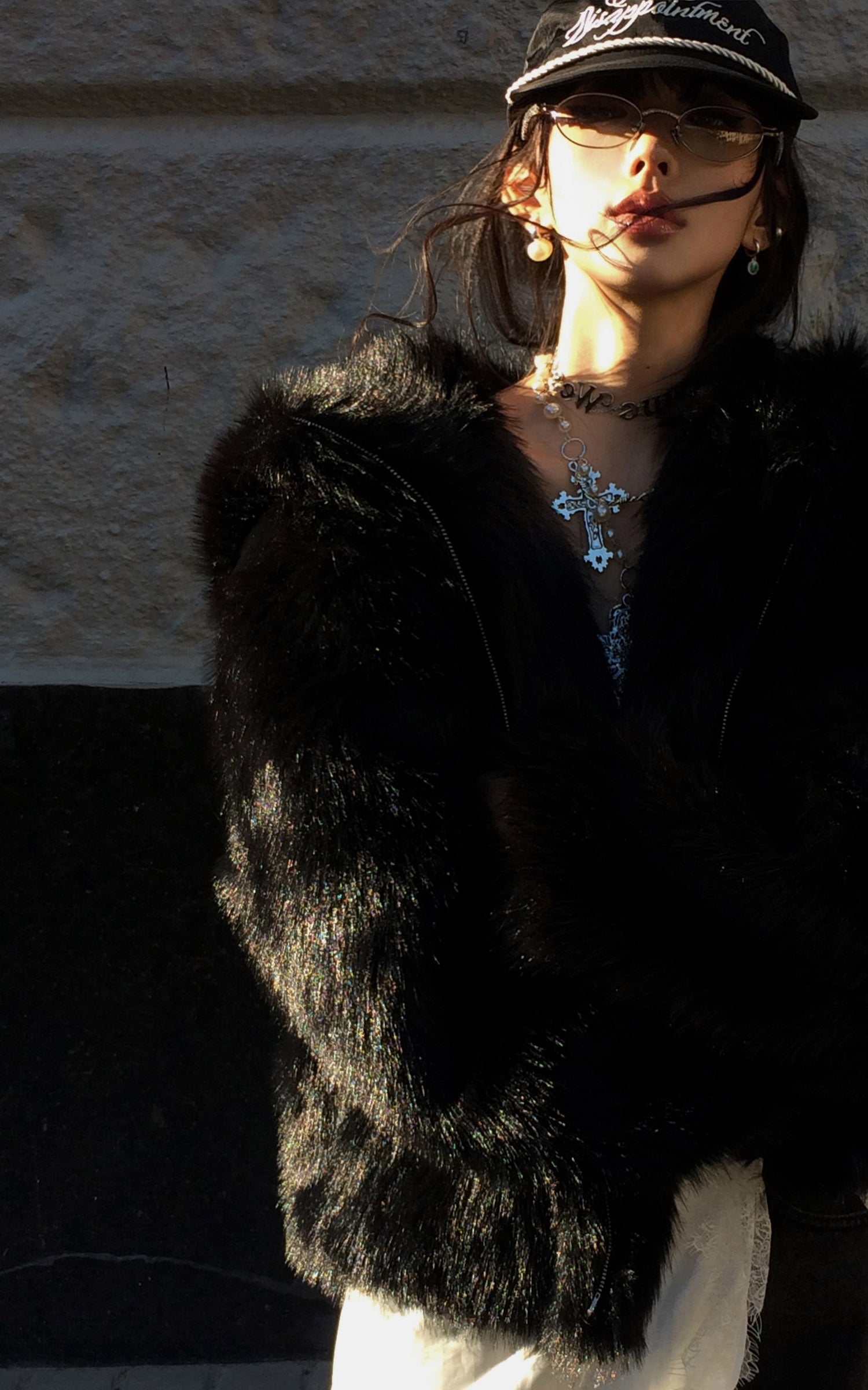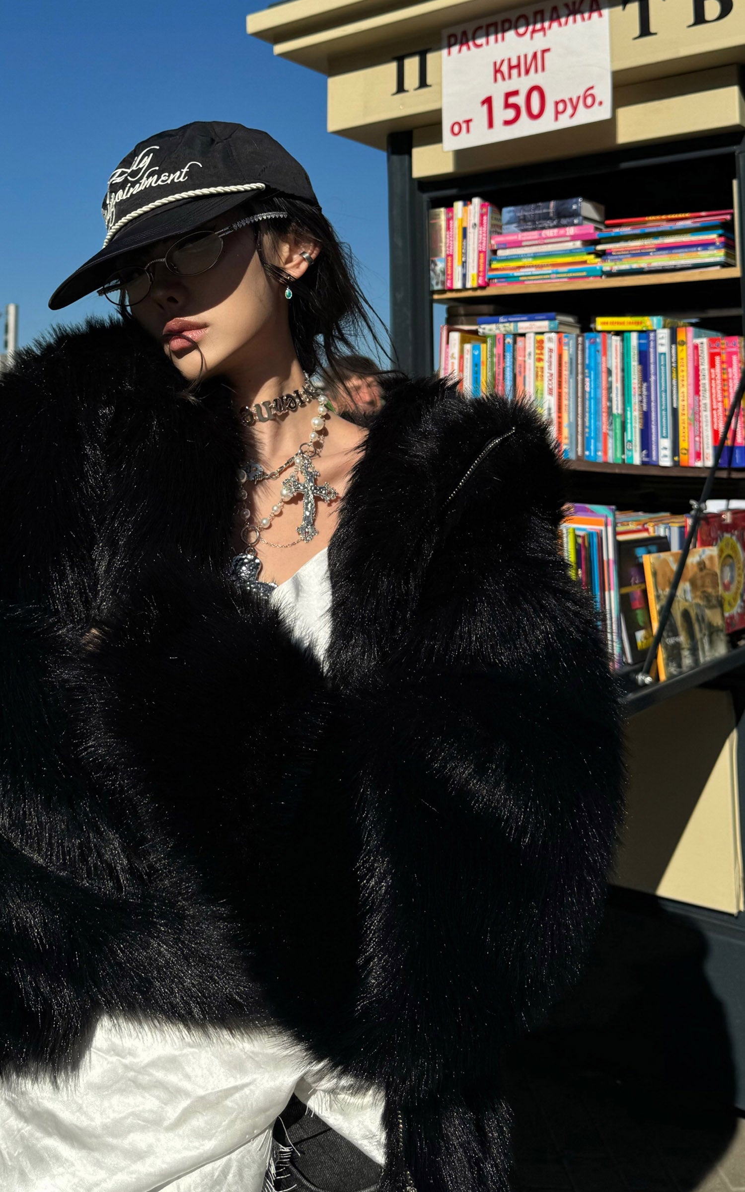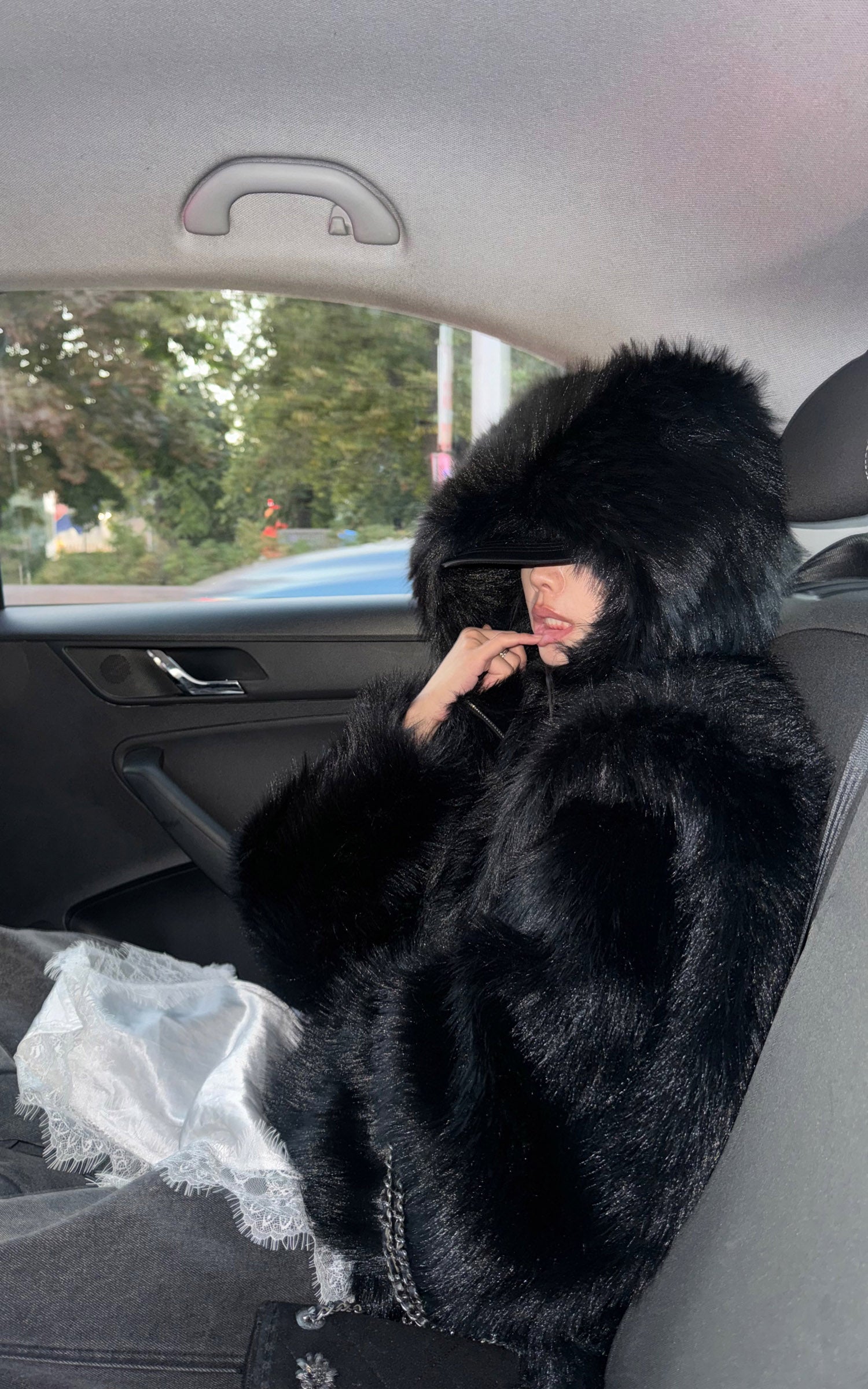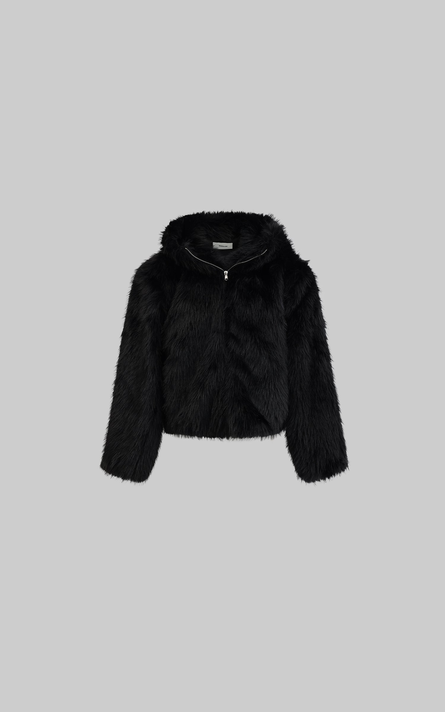 This oversized faux fur coat is a striking blend of luxury and streetwear. With its voluminous silhouette and plush texture, it commands attention while keeping you warm. The hooded design adds an extra layer of coziness, perfect for cold days. Whether styled for day or night, the bold, structured shape elevates any look, providing an effortlessly cool vibe. Pair with sleek layers or flowing skirts to make a statement.