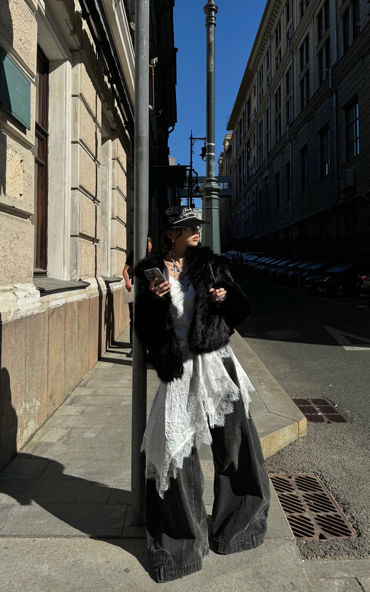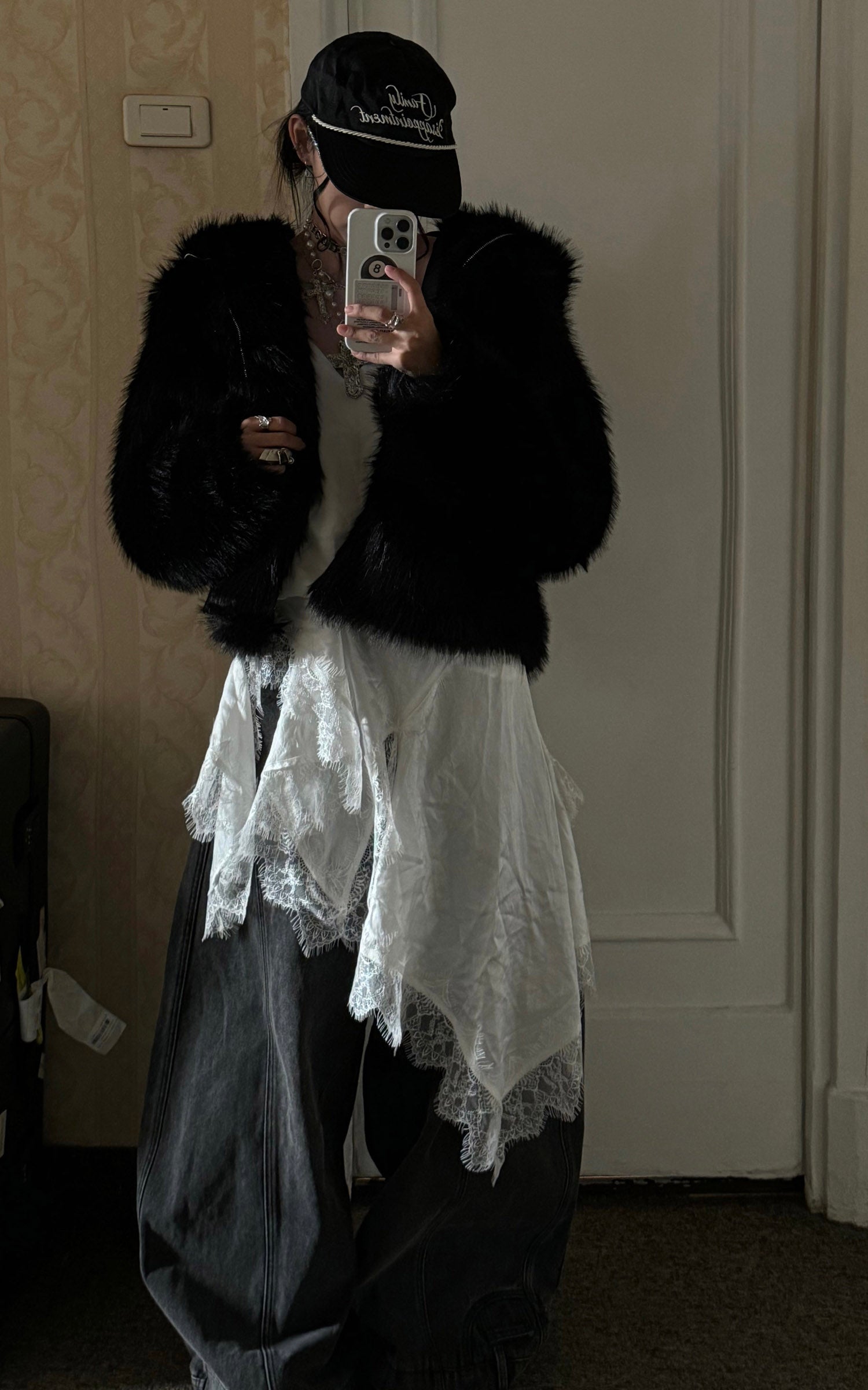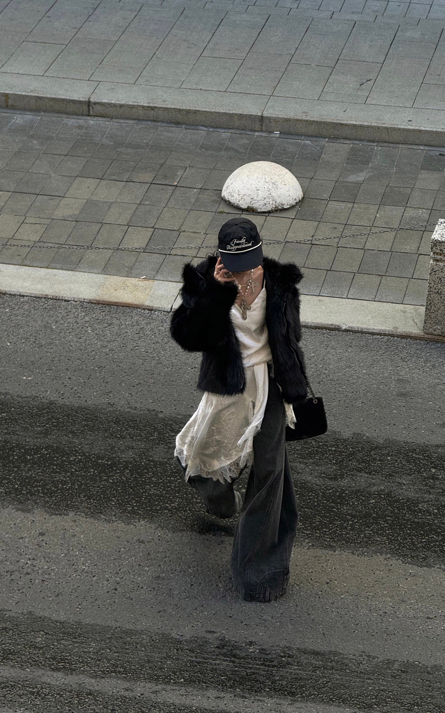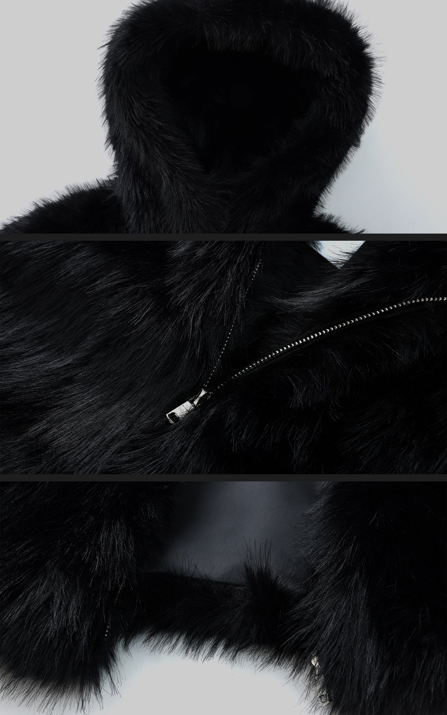 This oversized faux fur coat is a striking blend of luxury and streetwear. With its voluminous silhouette and plush texture, it commands attention while keeping you warm. The hooded design adds an extra layer of coziness, perfect for cold days. Whether styled for day or night, the bold, structured shape elevates any look, providing an effortlessly cool vibe. Pair with sleek layers or flowing skirts to make a statement.