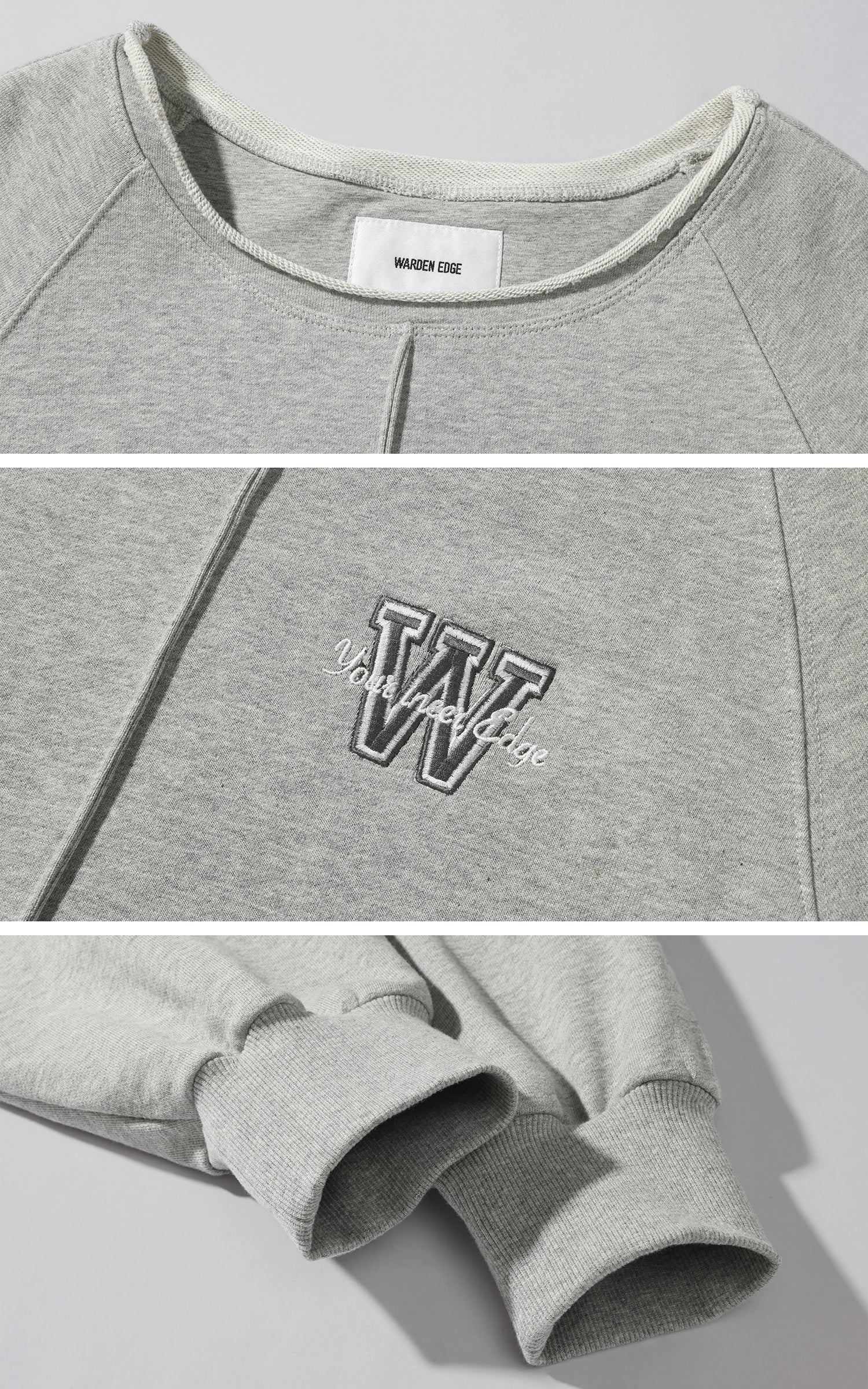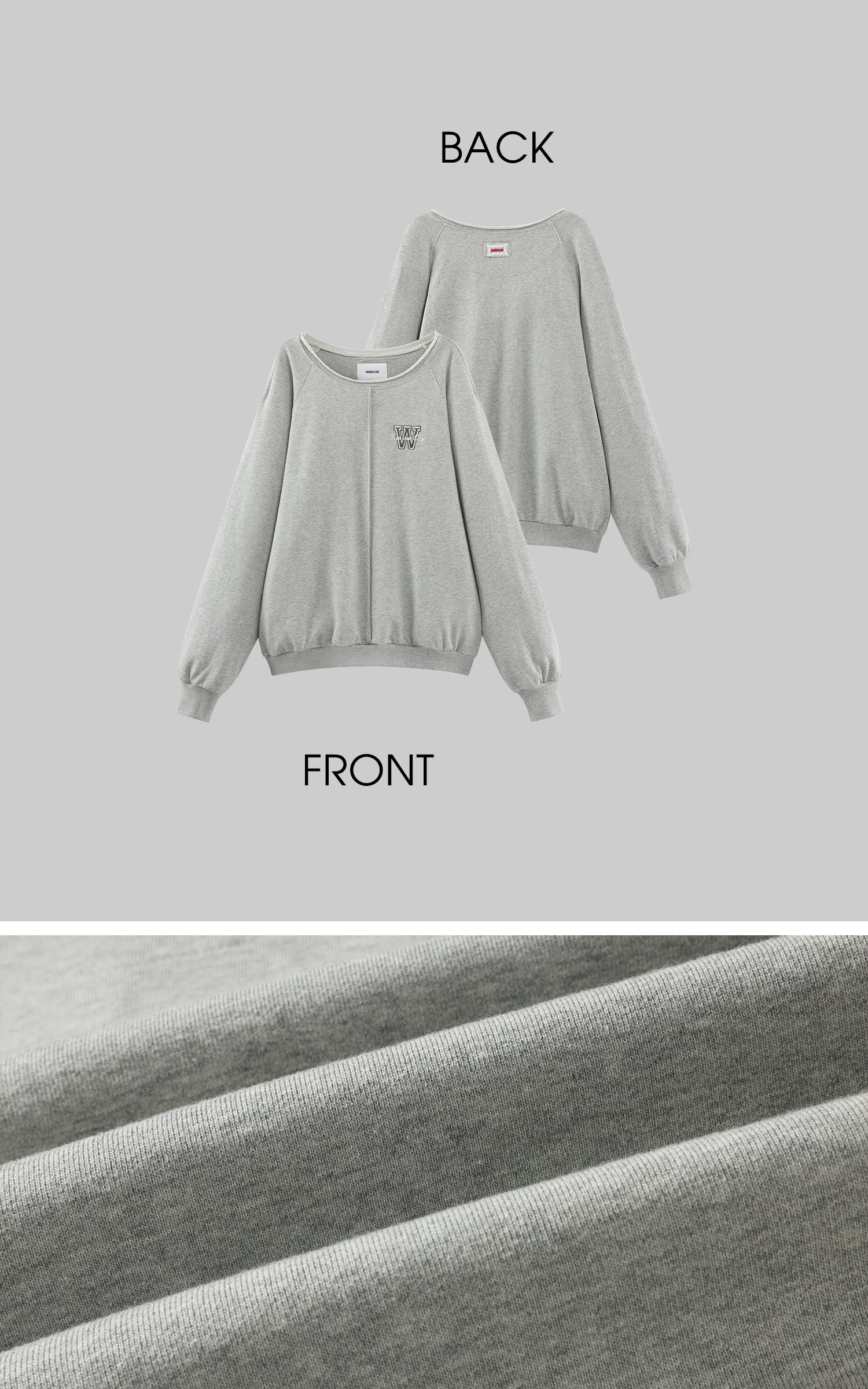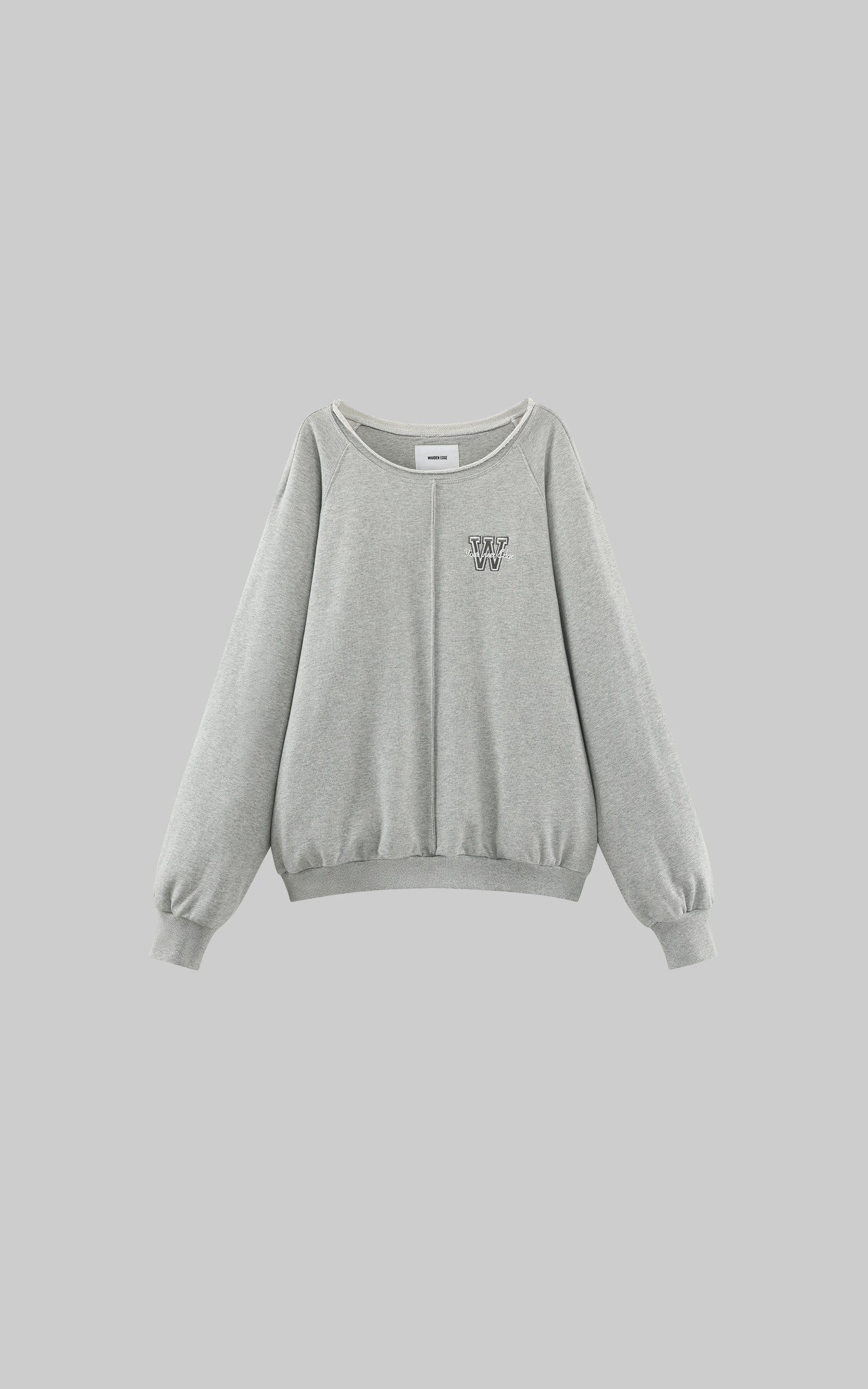 A laid-back oversized sweatshirt built with structure and attitude. Cut from soft grey cotton jersey, it features a central seam detail and a tonal ribbed hem. The embroidered "W" logo on the chest adds a collegiate edge, while the slouchy drop-shoulder fit gives it a relaxed, street-driven silhouette. Designed for layering or wearing solo, it shifts easily between casual minimalism and urban statement.