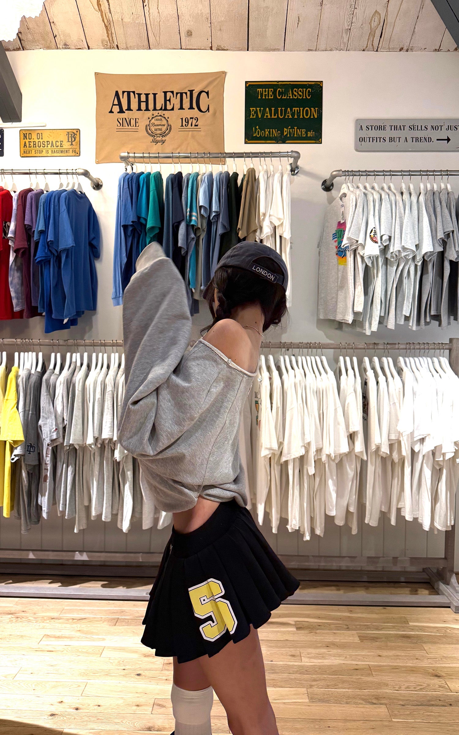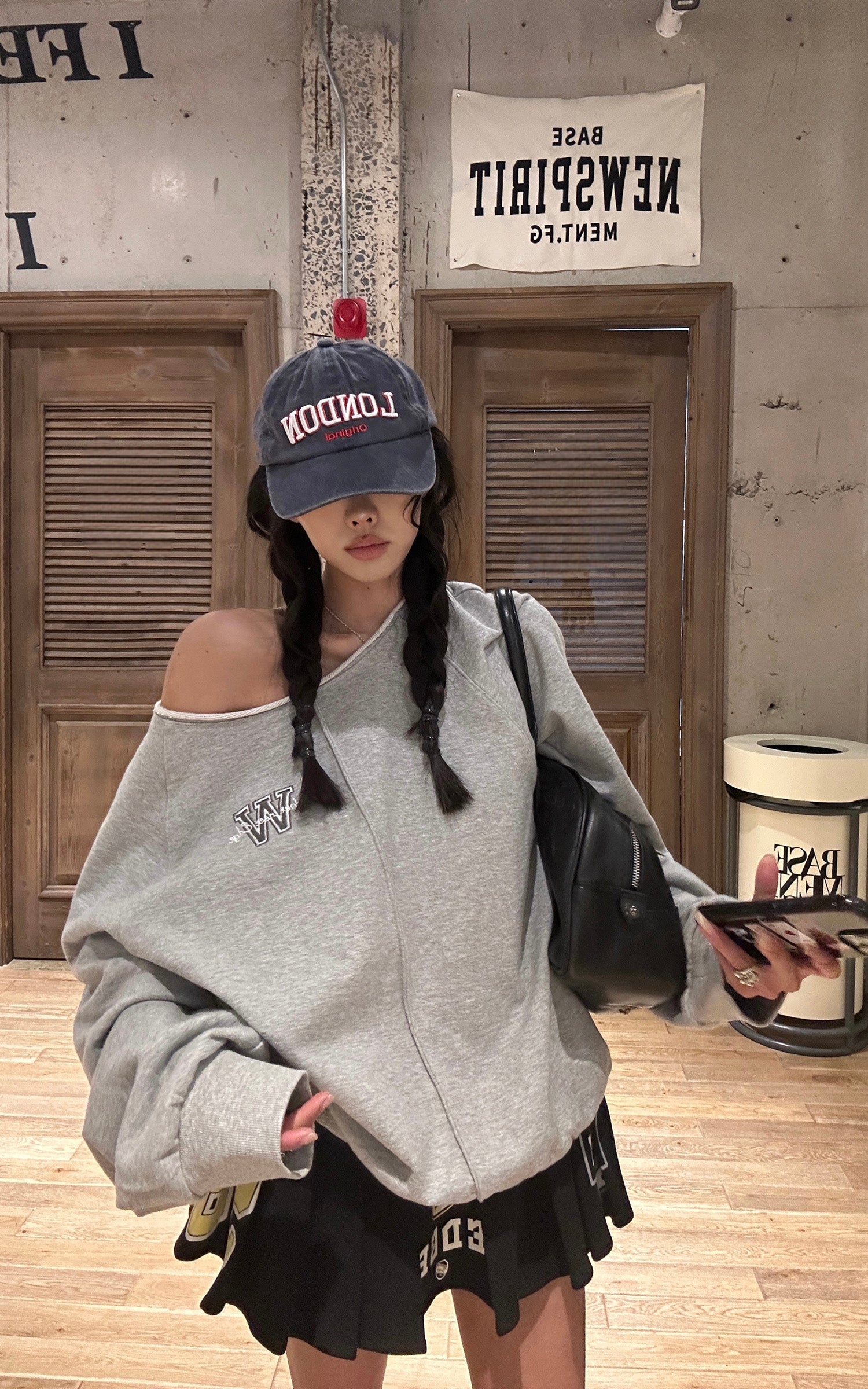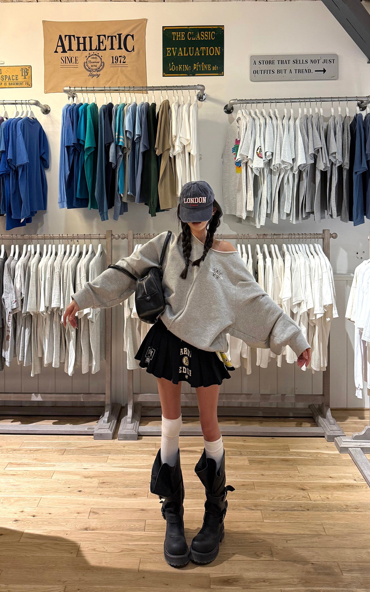 A laid-back oversized sweatshirt built with structure and attitude. Cut from soft grey cotton jersey, it features a central seam detail and a tonal ribbed hem. The embroidered "W" logo on the chest adds a collegiate edge, while the slouchy drop-shoulder fit gives it a relaxed, street-driven silhouette. Designed for layering or wearing solo, it shifts easily between casual minimalism and urban statement.
