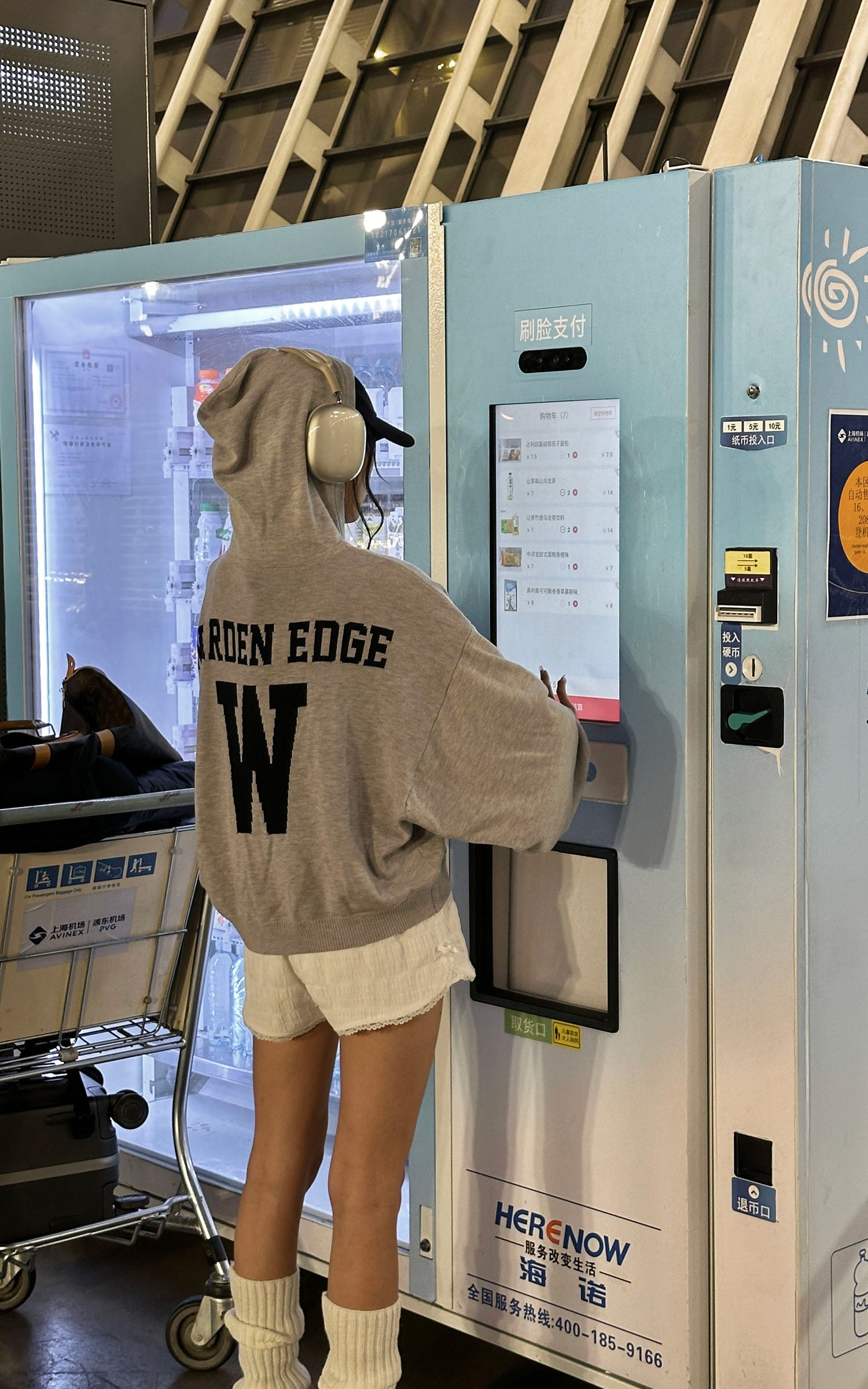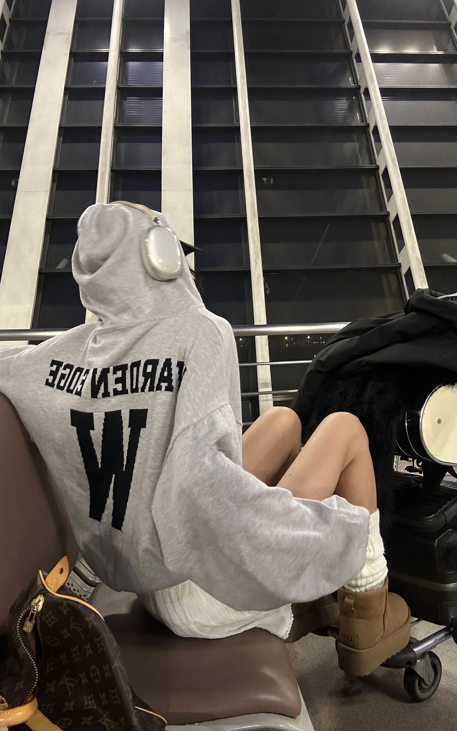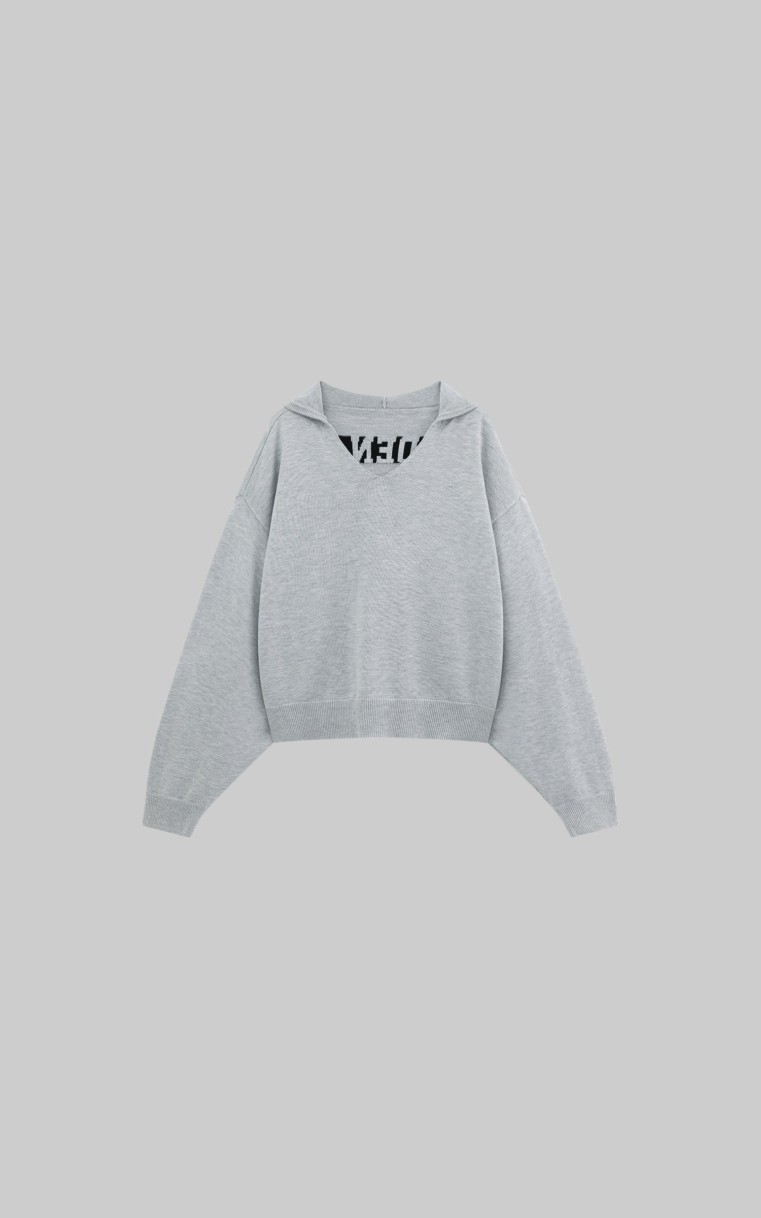 An oversized silhouette that merges vintage American street aesthetics with a minimalist sportswear vibe. Made from high-density knit fabric, it offers a soft, stretchy texture that is lightweight and breathable while maintaining excellent structure for a relaxed yet defined look. The bold "W" embroidery and stitched lettering on the back create a raw, tactile contrast, enhancing its collegiate-inspired appeal with a subtle yet striking edge. The V-neck cut adds dimension, making it an easy layering piece or a statement on its own. Dropped shoulders and ribbed cuffs complete the design, balancing a laid-back and refined streetwear aesthetic.