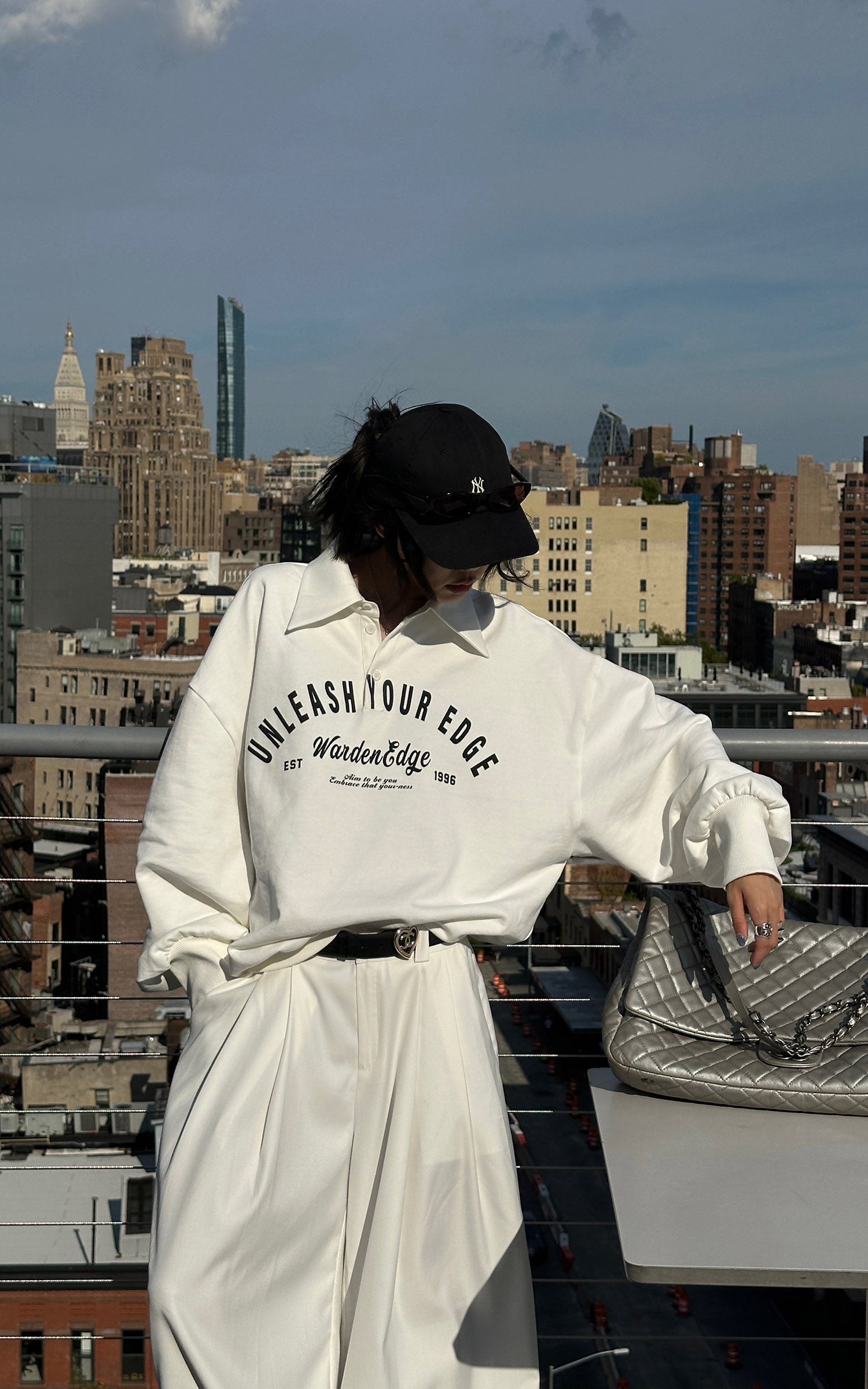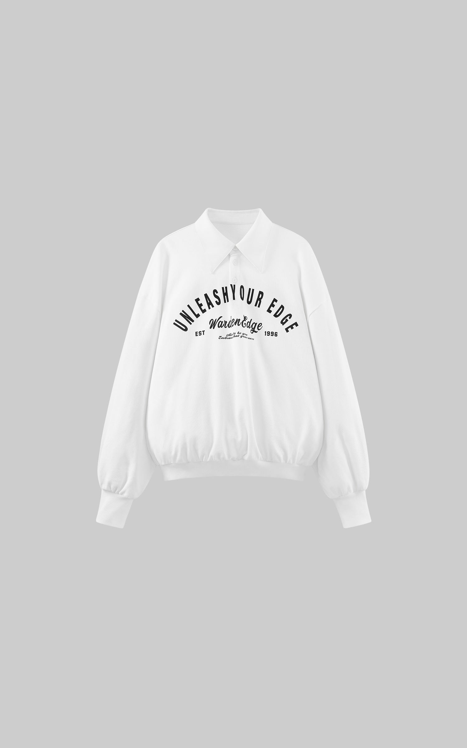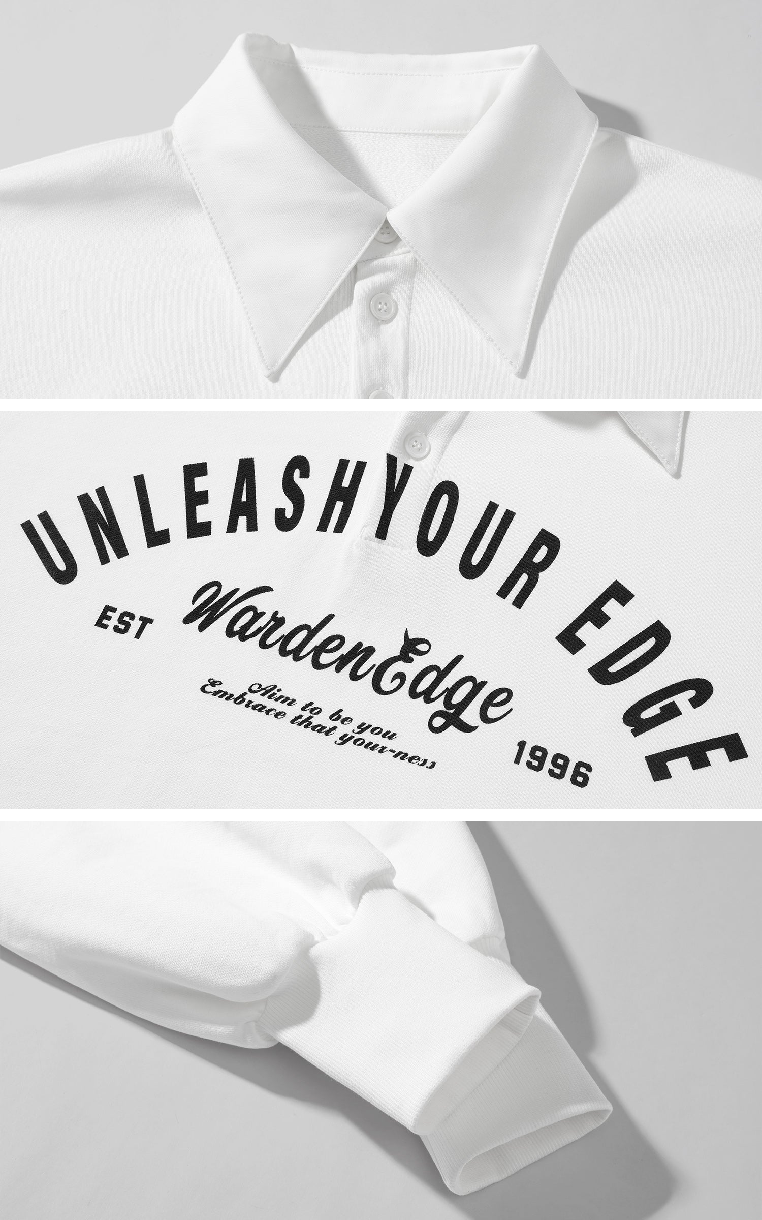 WARDEN EDGE Oversized Polo Sweatshirt with Bold Graphic Print and Streetwear Edge