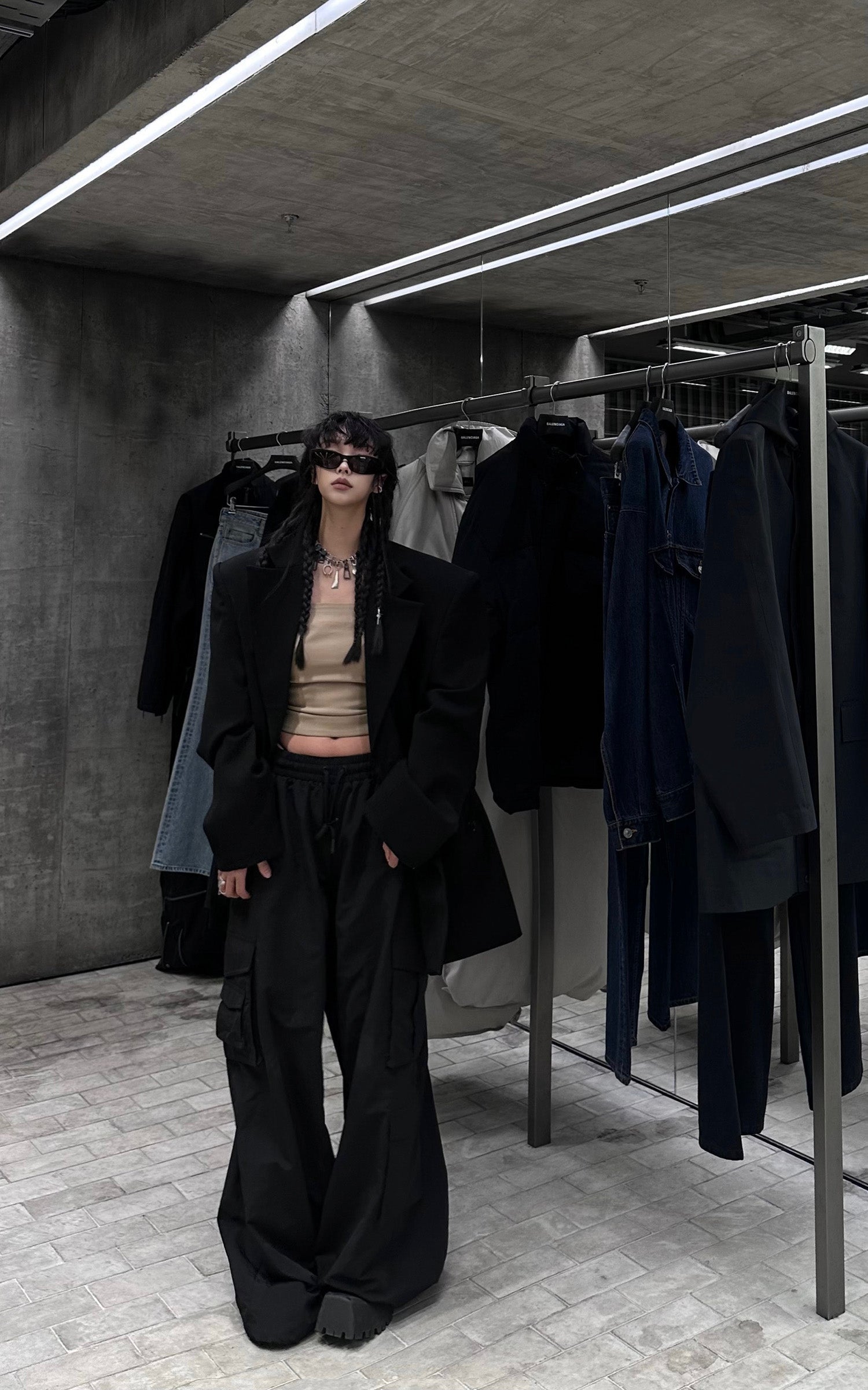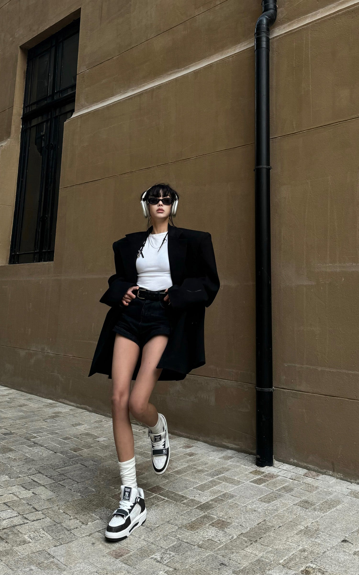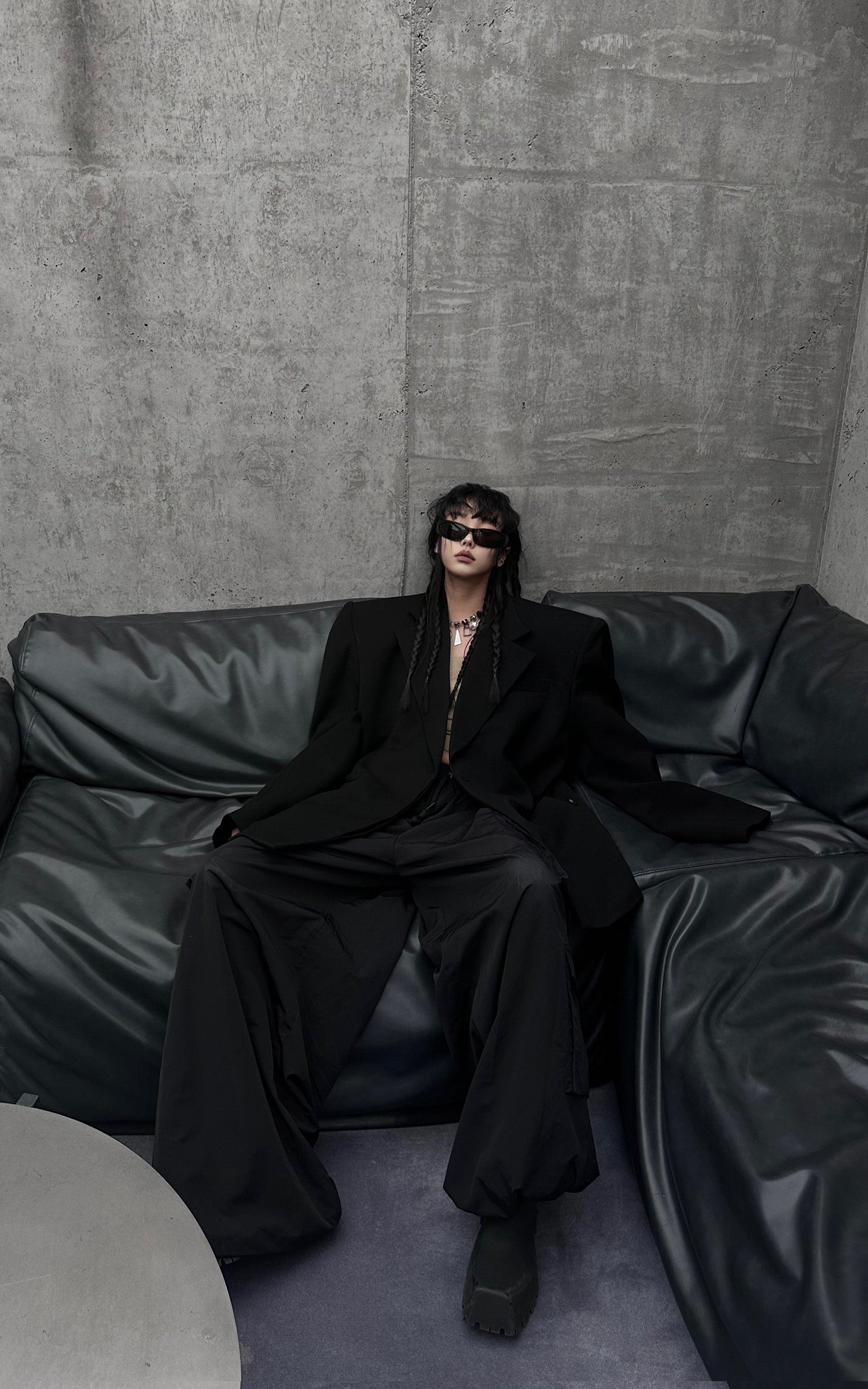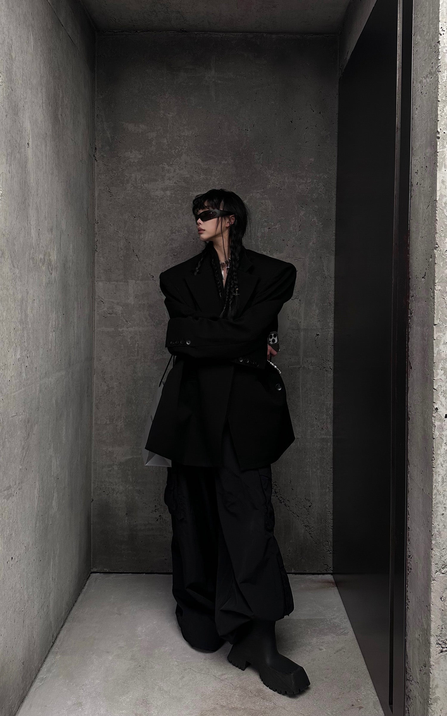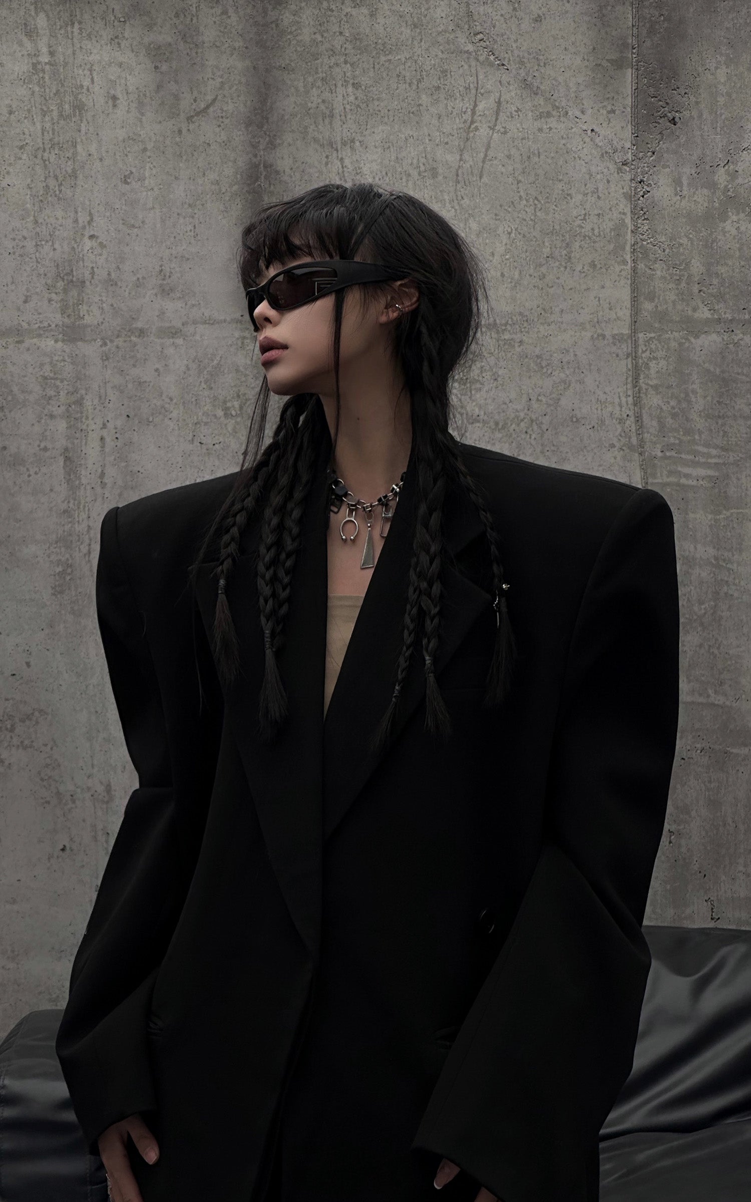 This oversized blazer makes a strong statement with its H-shaped silhouette and sharp, structured shoulders. The design adds a bold, architectural edge to any outfit, balancing classic tailoring with modern streetwear aesthetics. Ideal for layering over casual or formal pieces, this blazer elevates your look with a refined, contemporary twist.