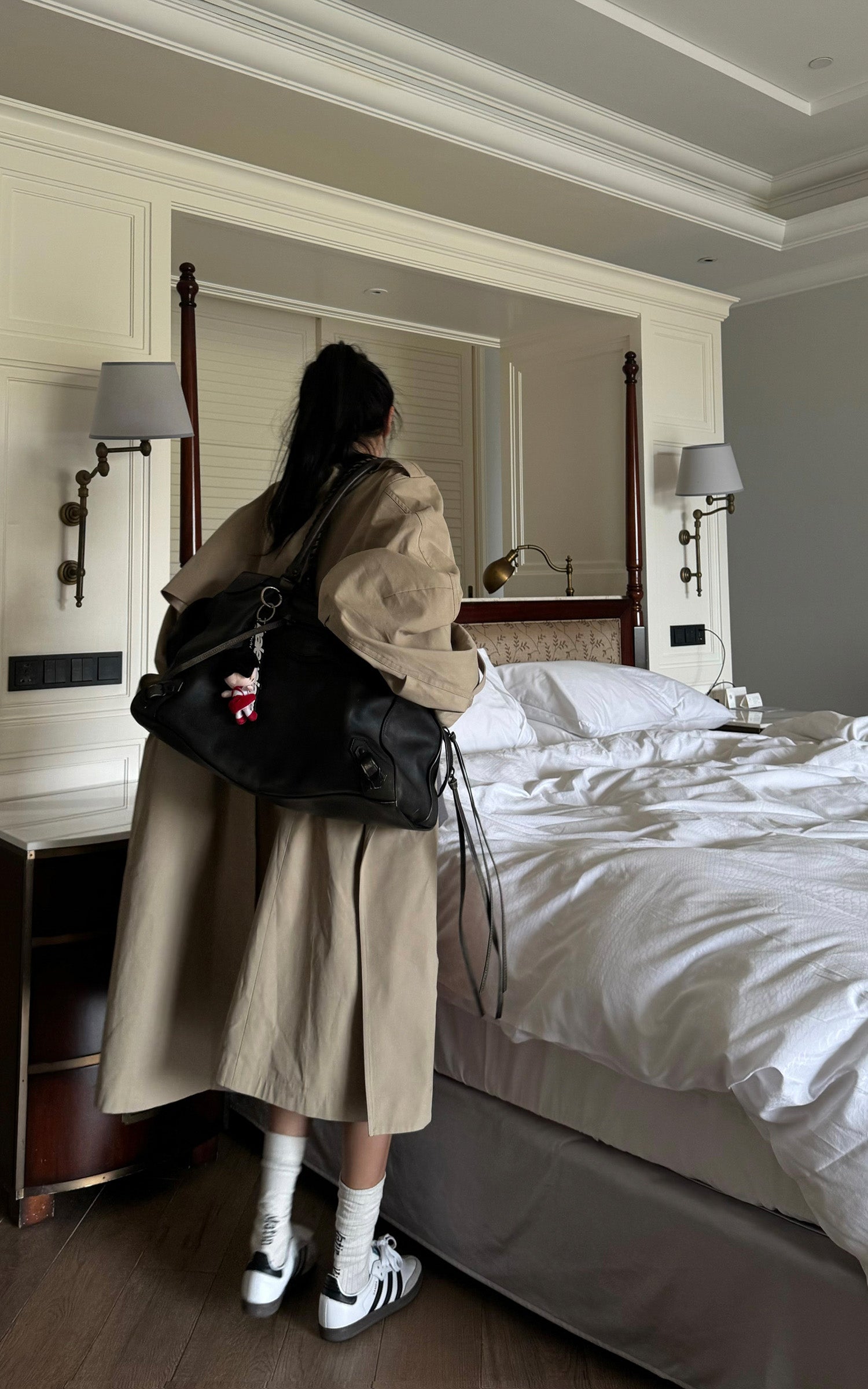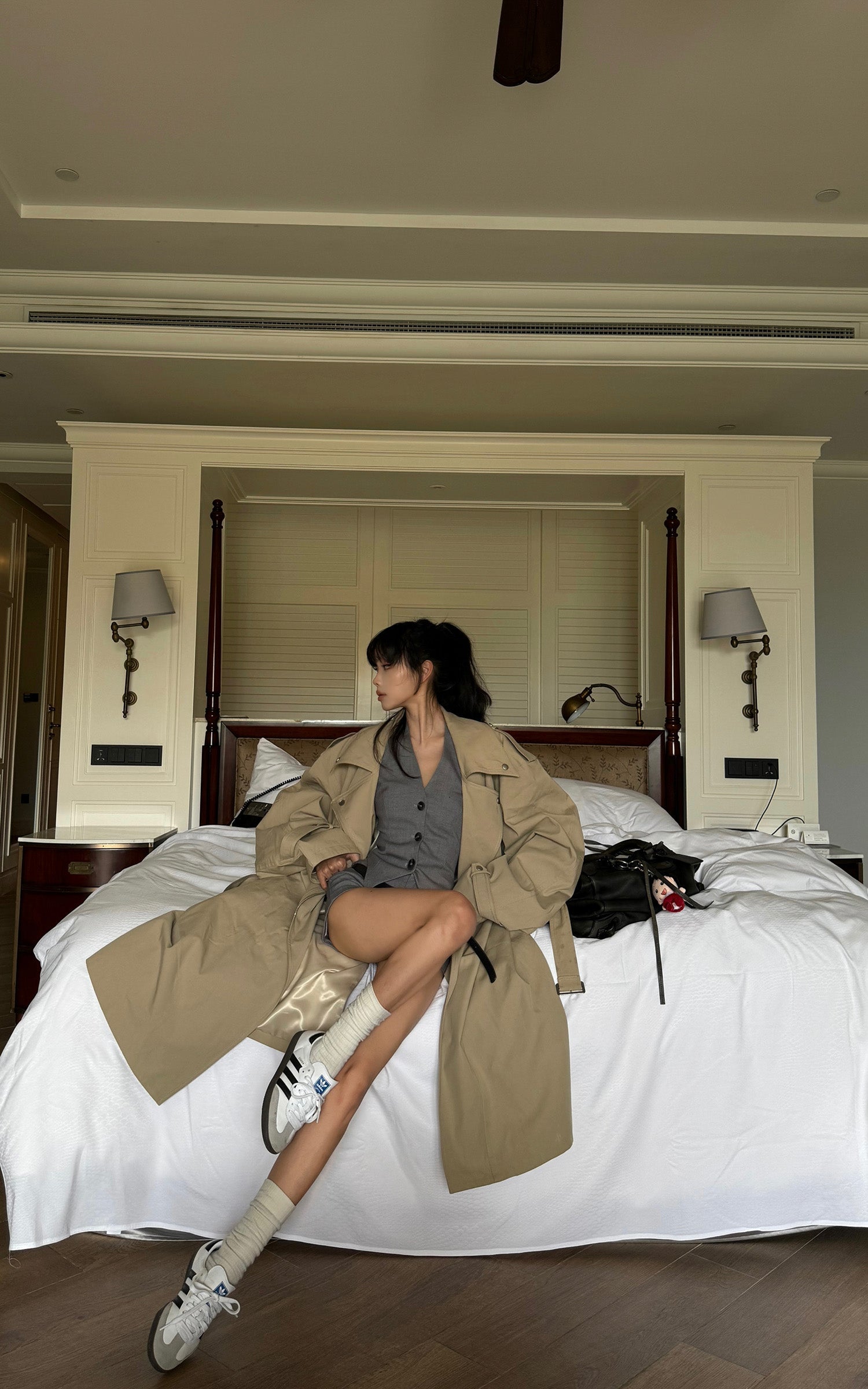 A bold reimagining of a classic, this trench coat features an exaggerated oversized silhouette that commands attention. With drop shoulders, wide sleeves, and signature details like shoulder epaulets and a back storm flap, it redefines traditional tailoring with a modern, voluminous edge. Ideal for layering, this coat brings a statement-making silhouette while maintaining the timeless elements of a trench.