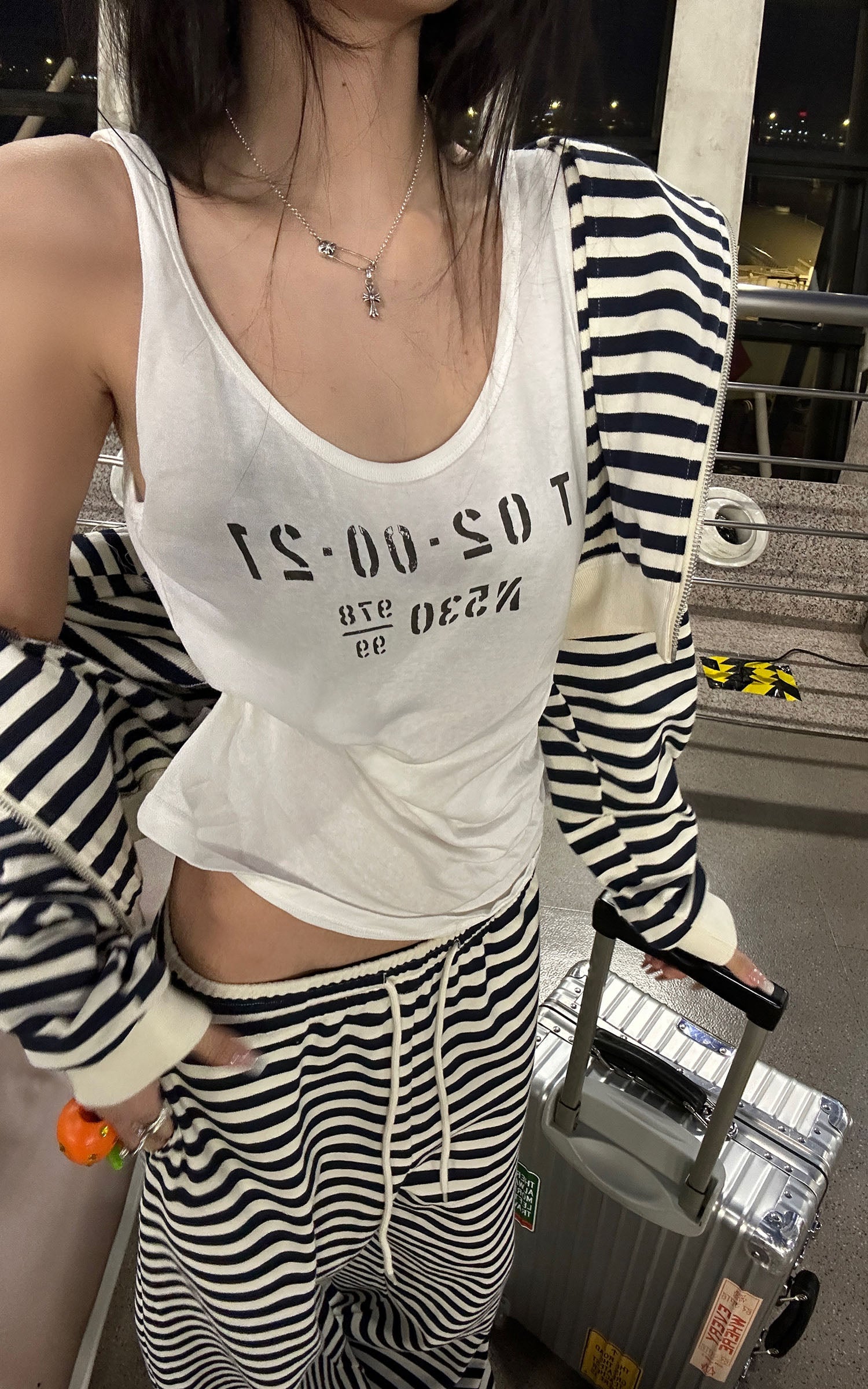 A minimalist tank defined by a sharp slim silhouette and bold numeric graphic. Soft stretch fabric contours the body while keeping the look effortless and relaxed. Designed for everyday layering, travel styling, and modern off-duty dressing.