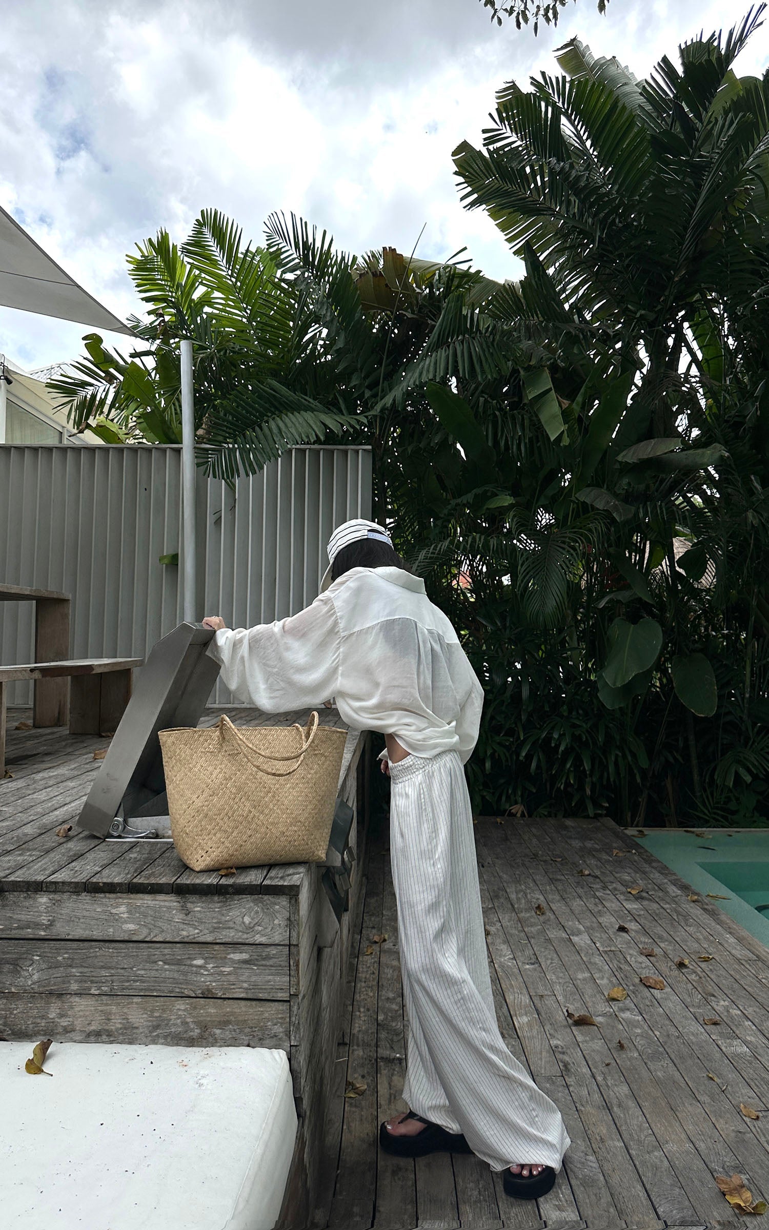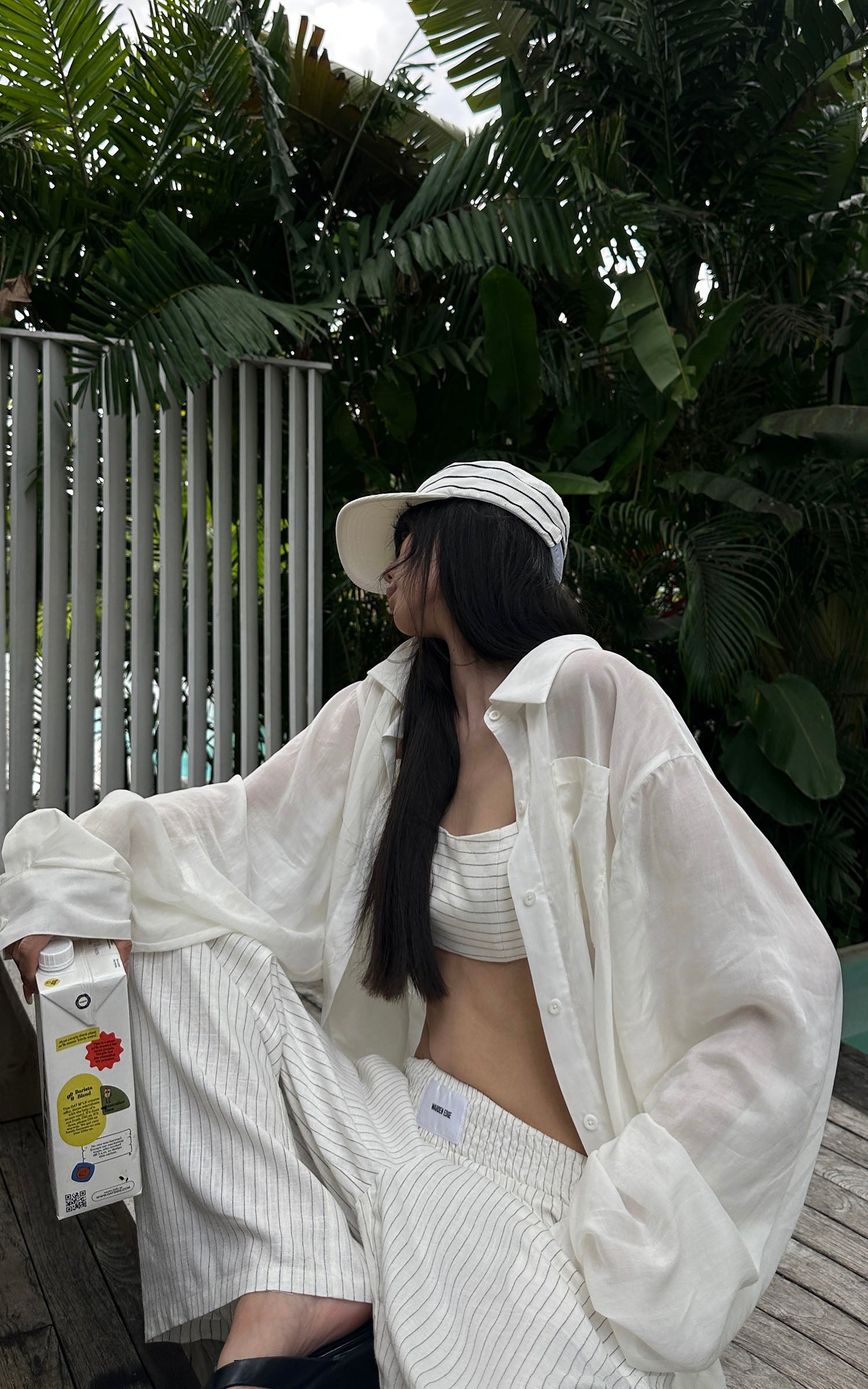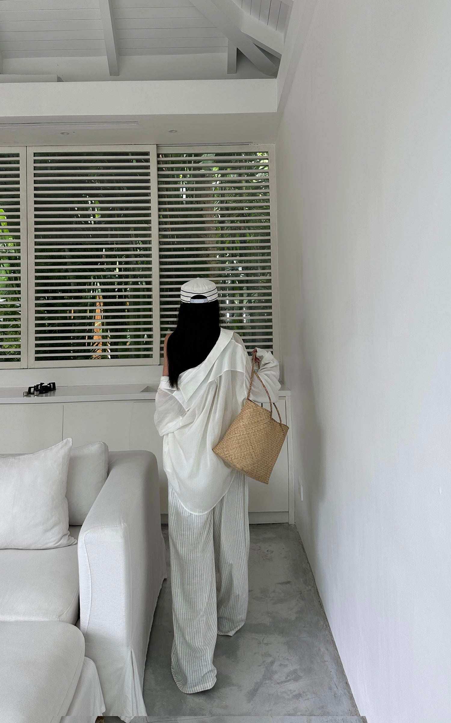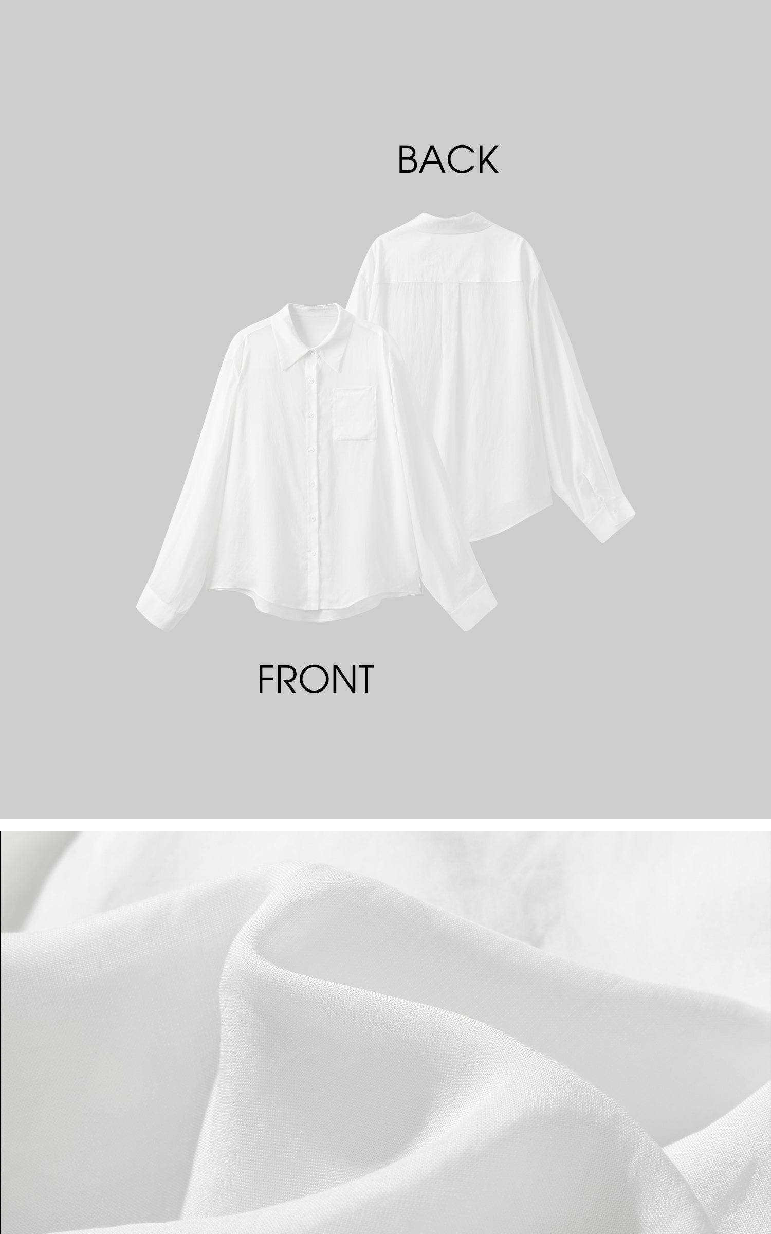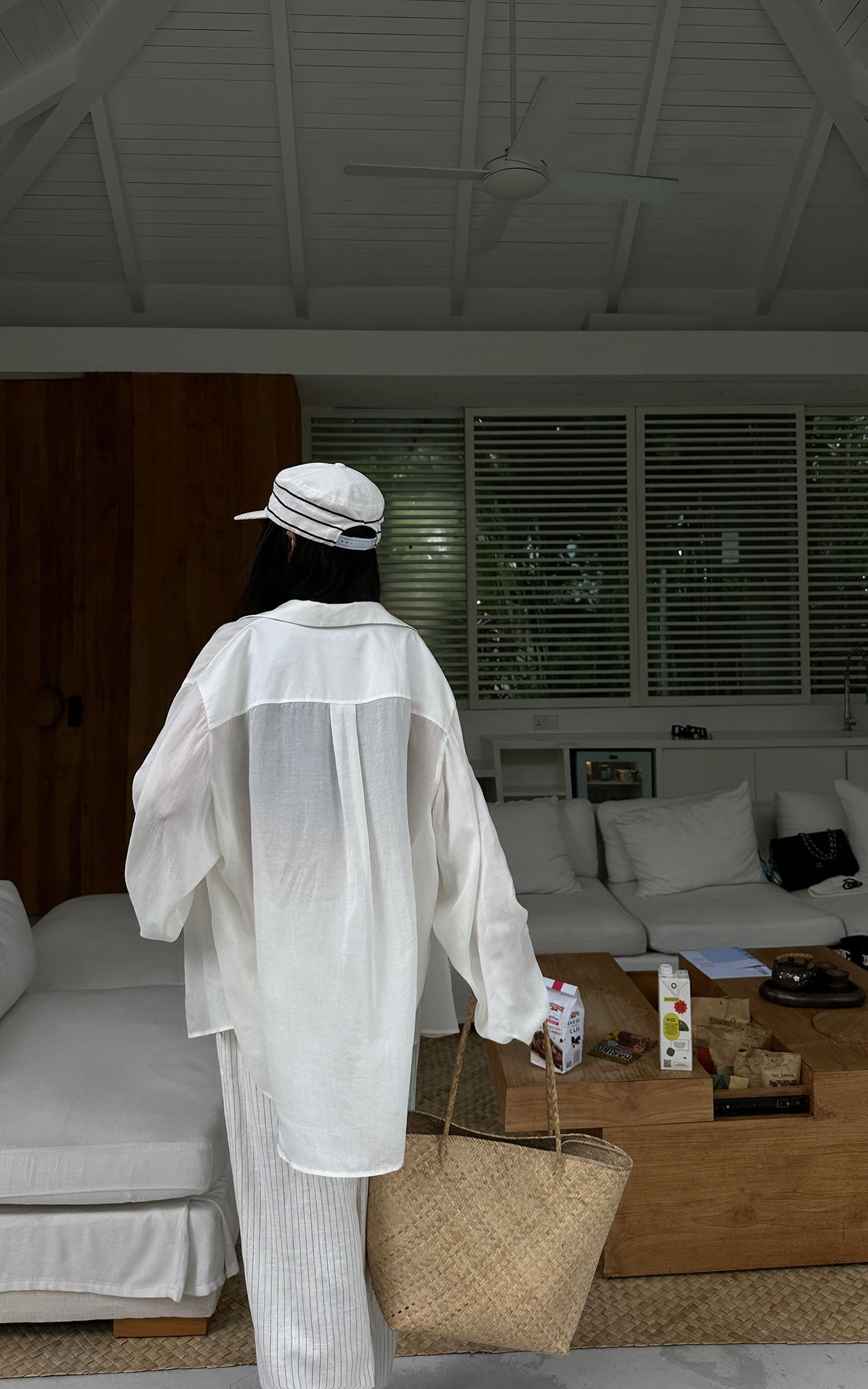 A relaxed take on a wardrobe staple. This sheer white shirt features a loose silhouette, soft drape, and a subtle patch pocket detail. Crafted from a breathable, lightweight fabric that catches movement and light, it’s designed to be worn buttoned up or open over layers. Wear it by the pool or in the city—it's clean, it's quiet, and it commands attention in its own way.