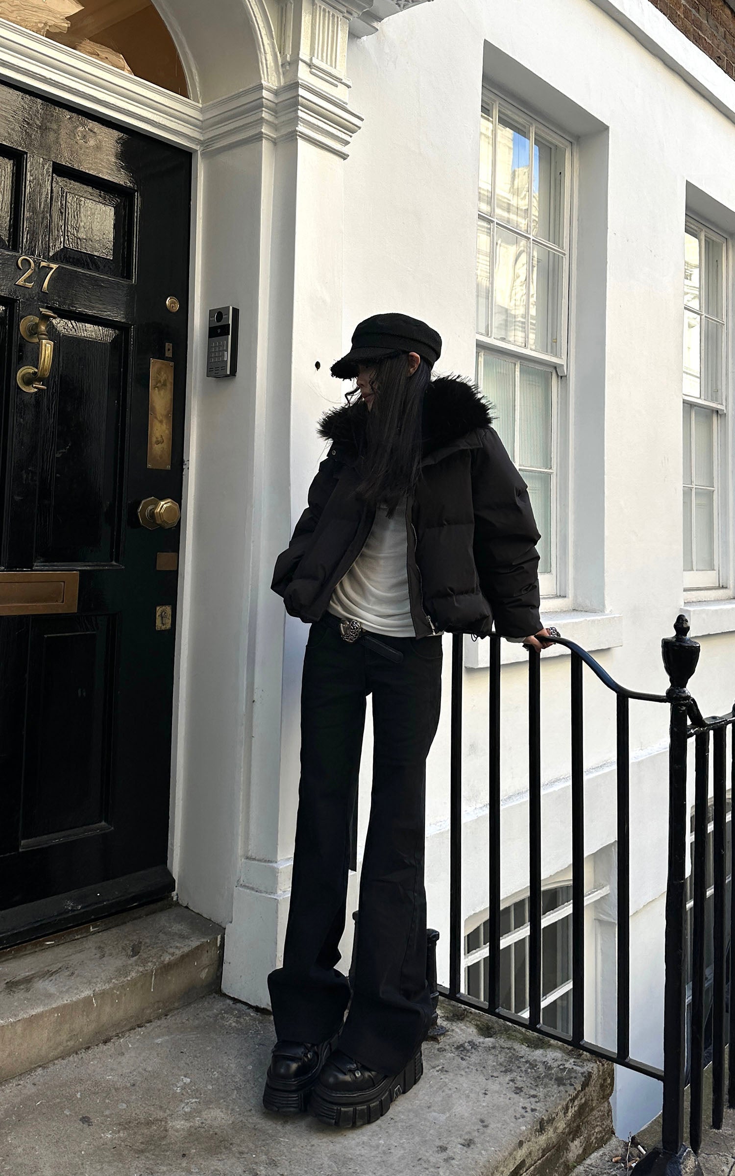 Cut with a clean slim block that breaks into a subtle flare, these denim pants bring a sharp, elongated line to everyday dressing. The fabric holds its structure while allowing natural movement, creating a streamlined fit that works effortlessly with both oversized outerwear and minimal tops. A quiet, confident essential designed for all-season wear.