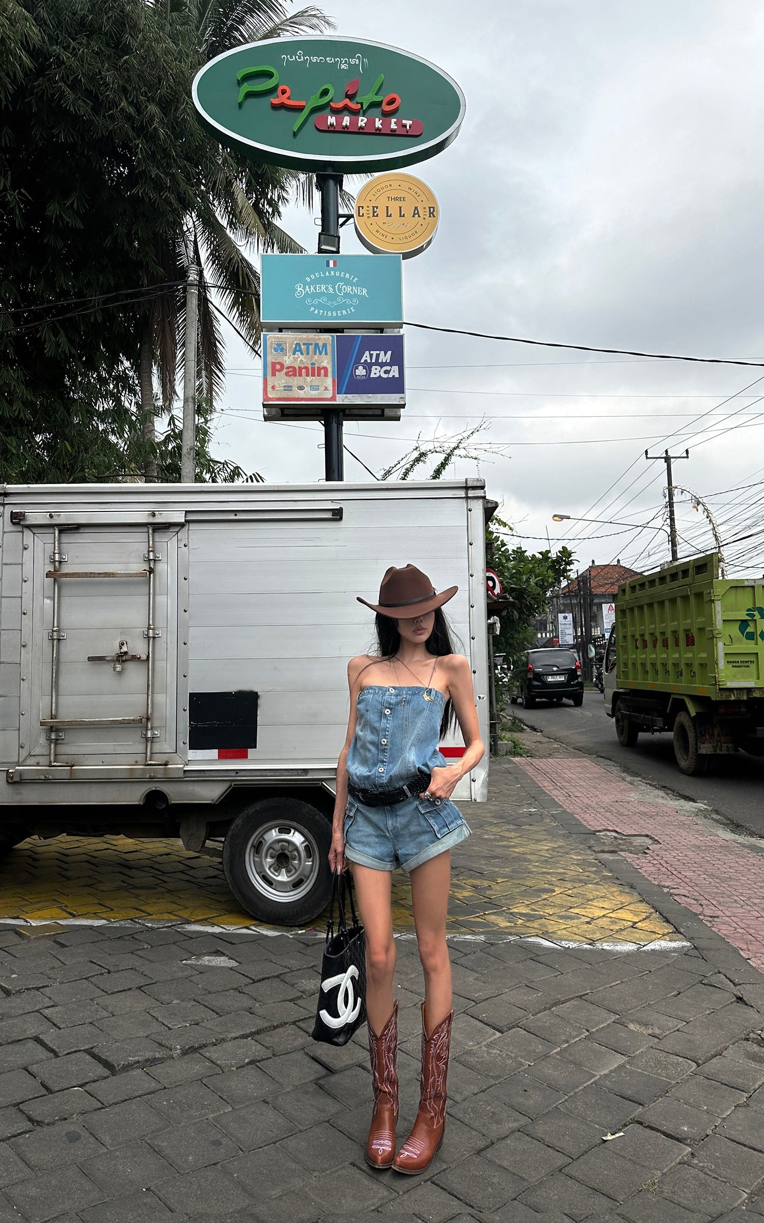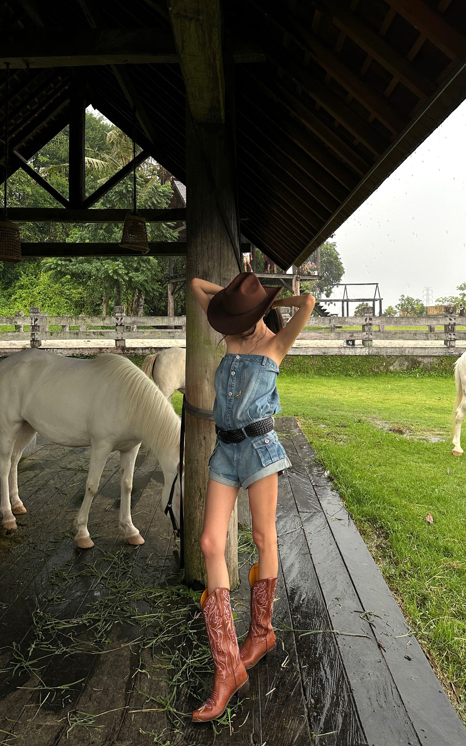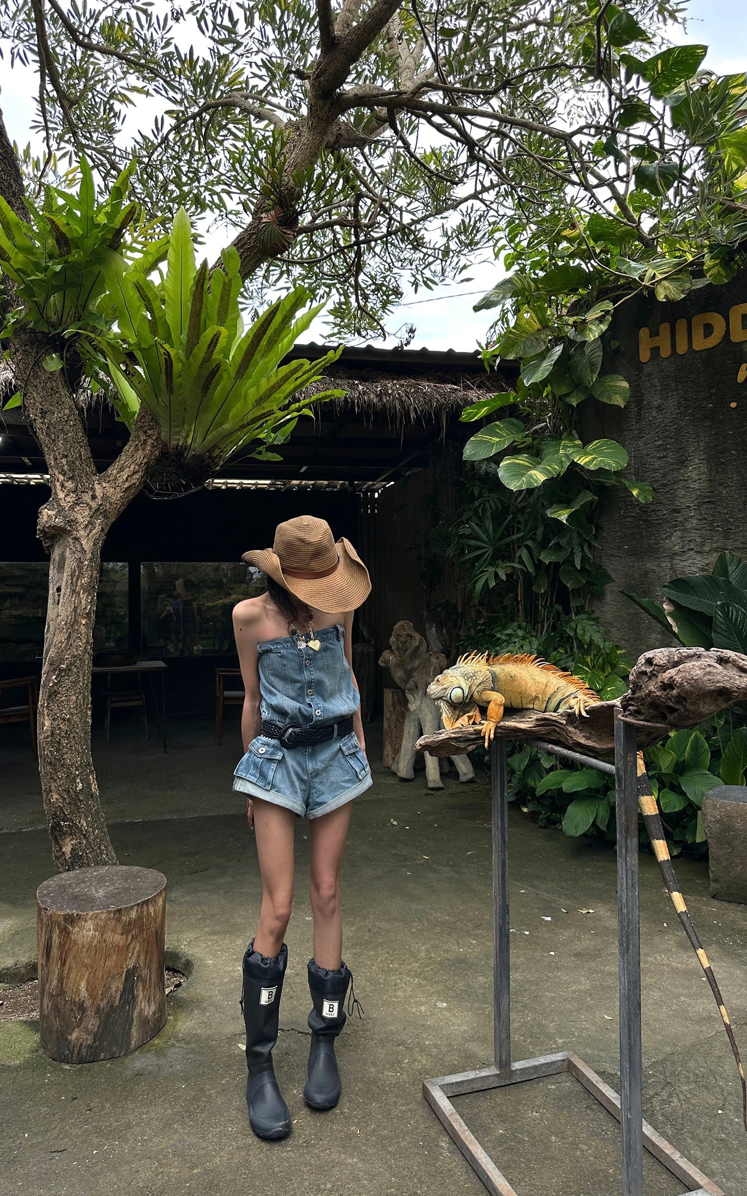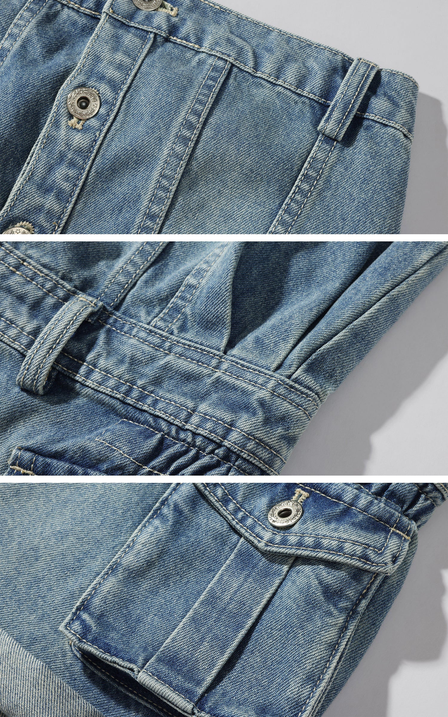 A reimagined silhouette built for contrast—this strapless denim romper merges structure and slouch with utilitarian intent. Featuring a ruched back panel, full button-up front, and oversized flap pockets, it channels a workwear language in a rebellious, shoulder-baring form. Pair it with boots, layer it up, or let it stand alone—it’s engineered for movement and nonconformity.