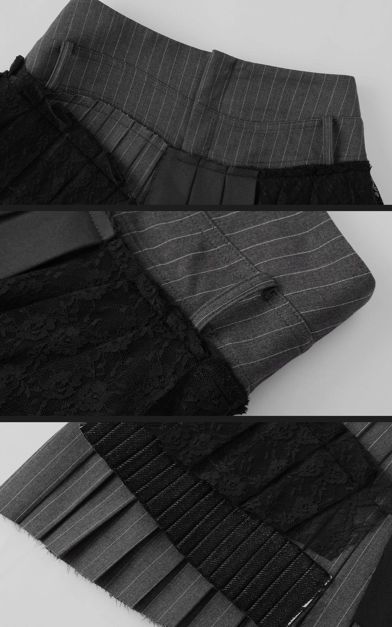 2025-03-25 缺货 WARDEN EDGE Striped Blazer & Layered Pleated Skirt Set