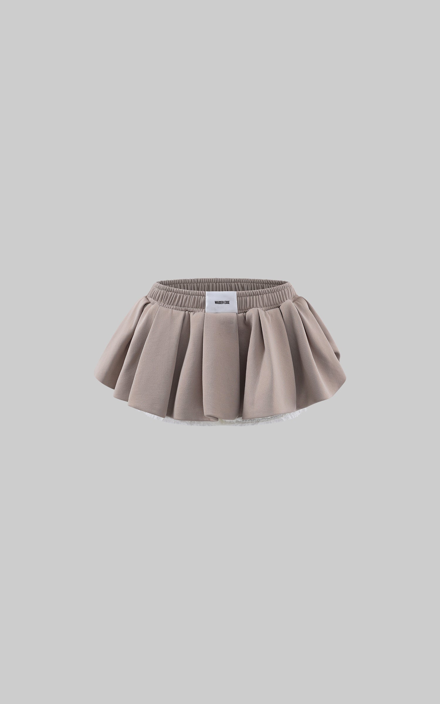 This mini skirt is defined by bold, architectural pleats that reshape volume with precision. The elasticated high-waist construction offers comfort while sharpening proportion through a clean, elevated fit. Sculpted panels create a soft yet controlled flare, layered over a lightweight inner lining that adds depth and ease of movement. Balancing playful volume with restrained structure, the skirt works as a standalone statement or a layered component, bringing contrast and intention to modern silhouettes.