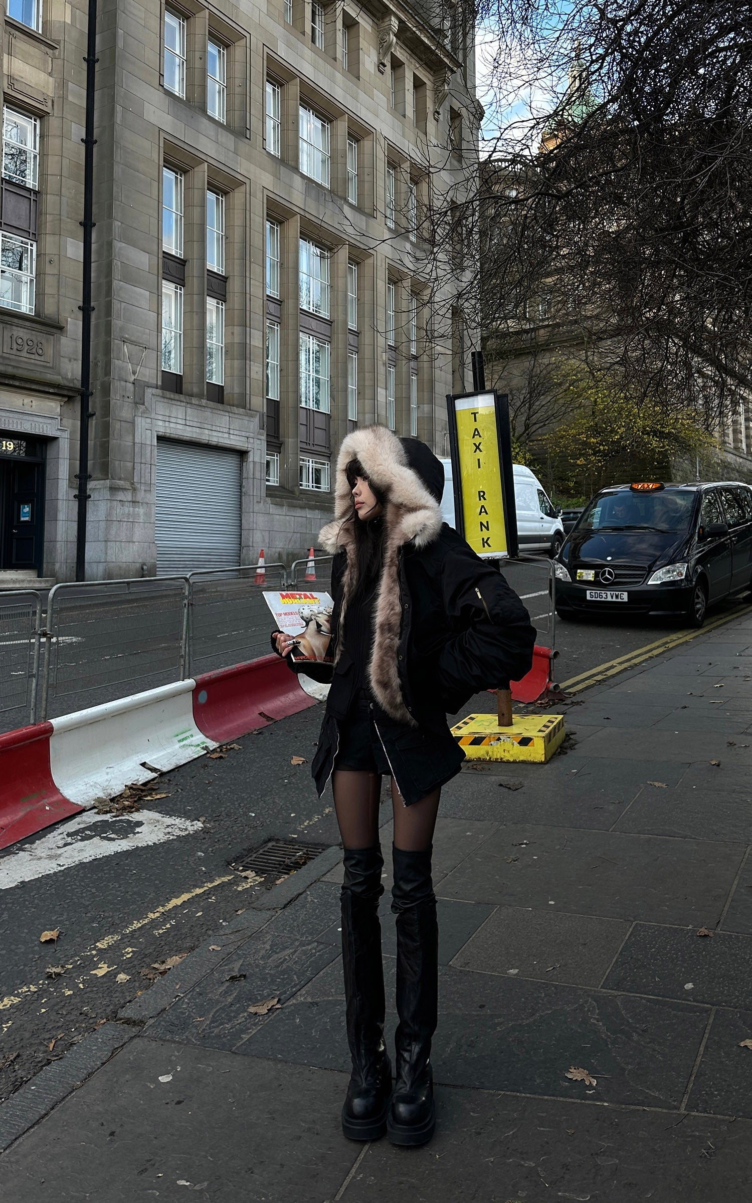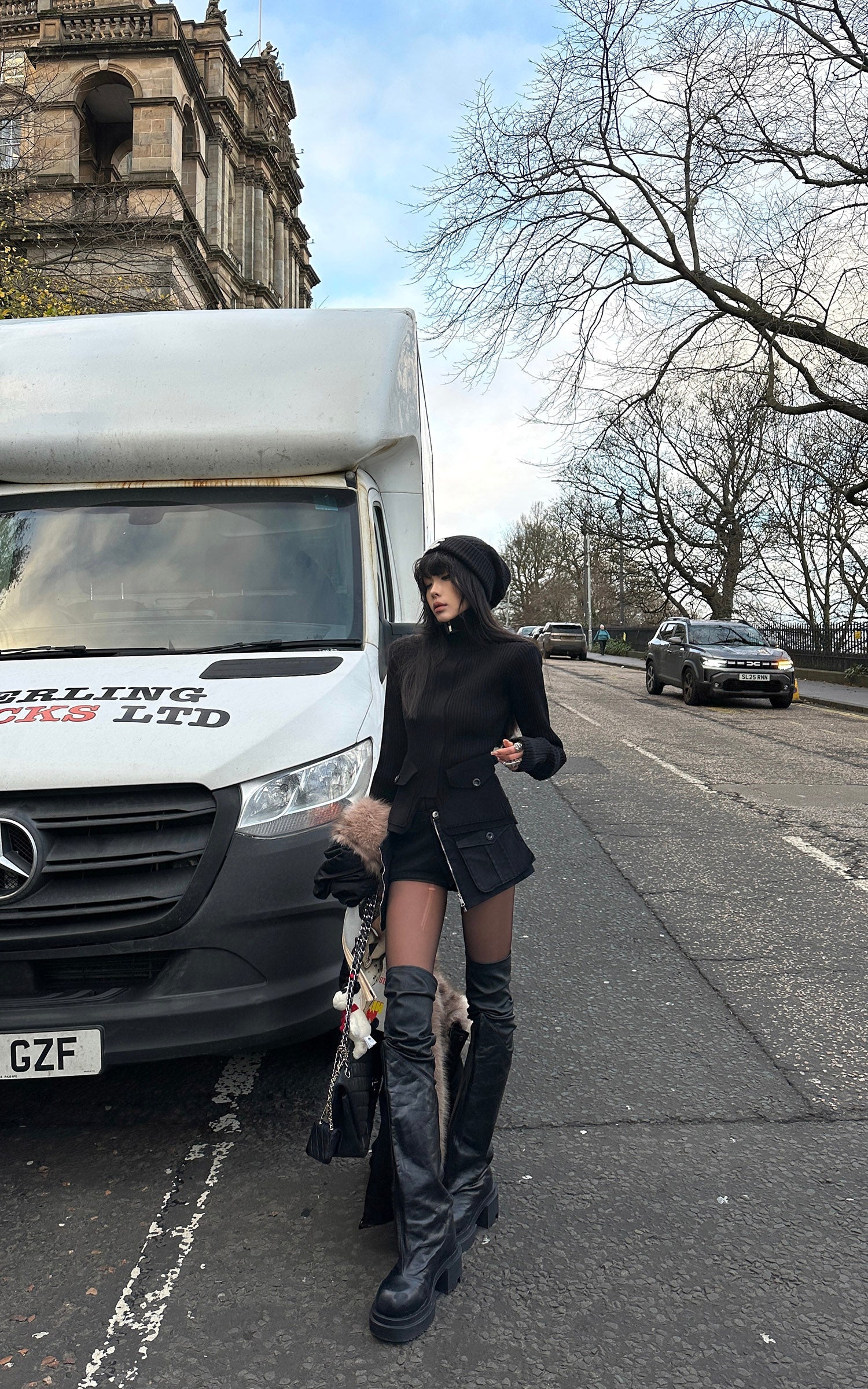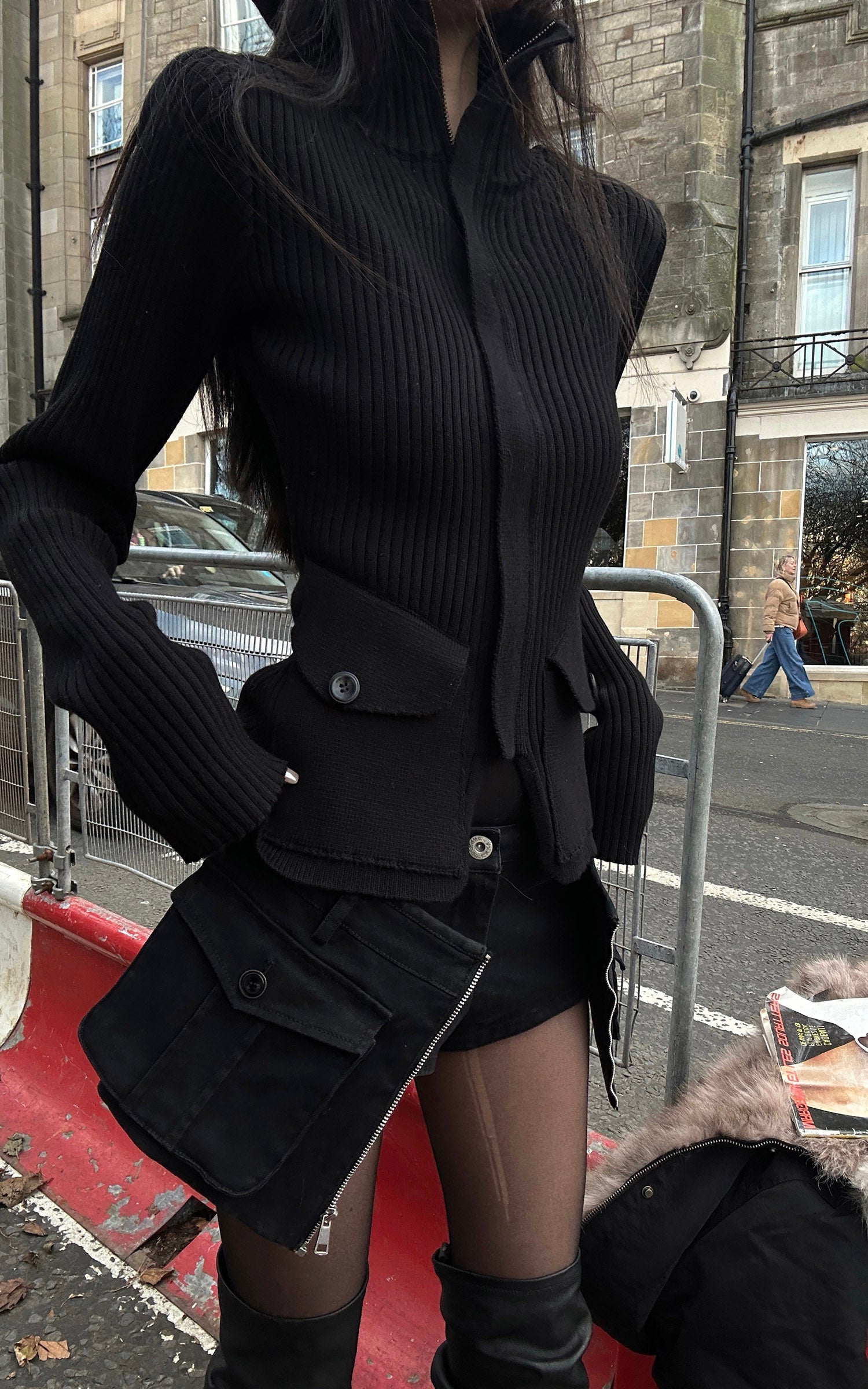 Designed with a sharp, low-rise silhouette, these utility shorts balance structure and attitude. The exposed front zip elongates the line of the body, while layered flap pockets add depth and functional tension. Clean tailoring meets industrial hardware, creating a piece that feels deliberate and controlled. The fabric holds its form without stiffness, making it ideal for pairing with fitted knits or sculptural tops for a precise, modern look.